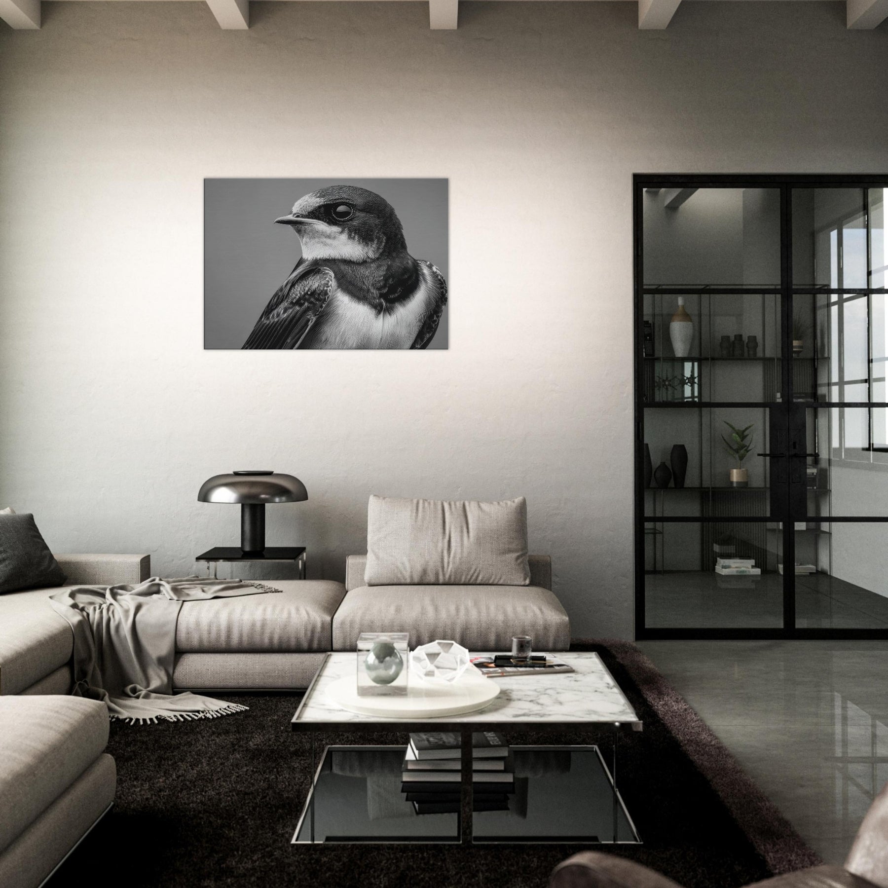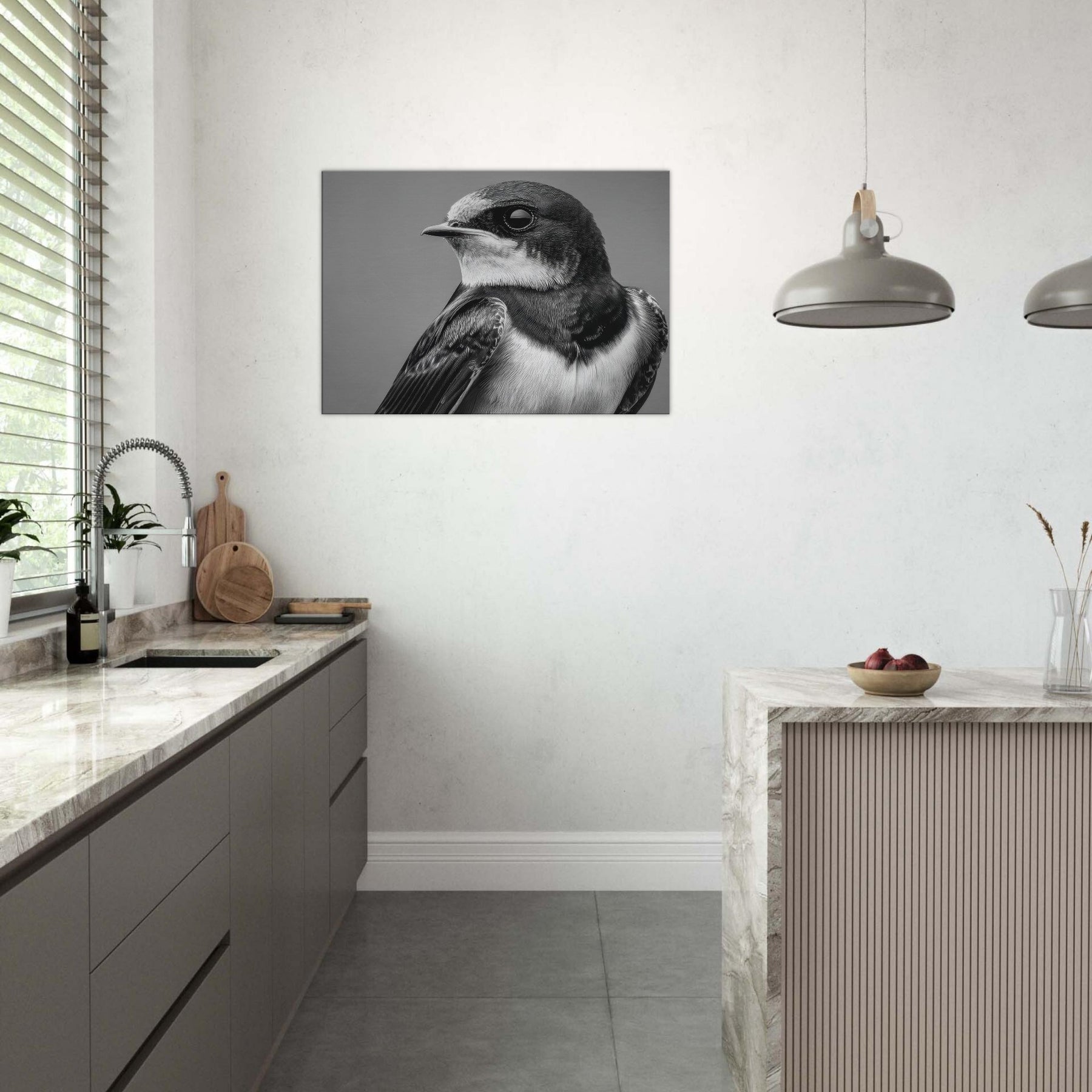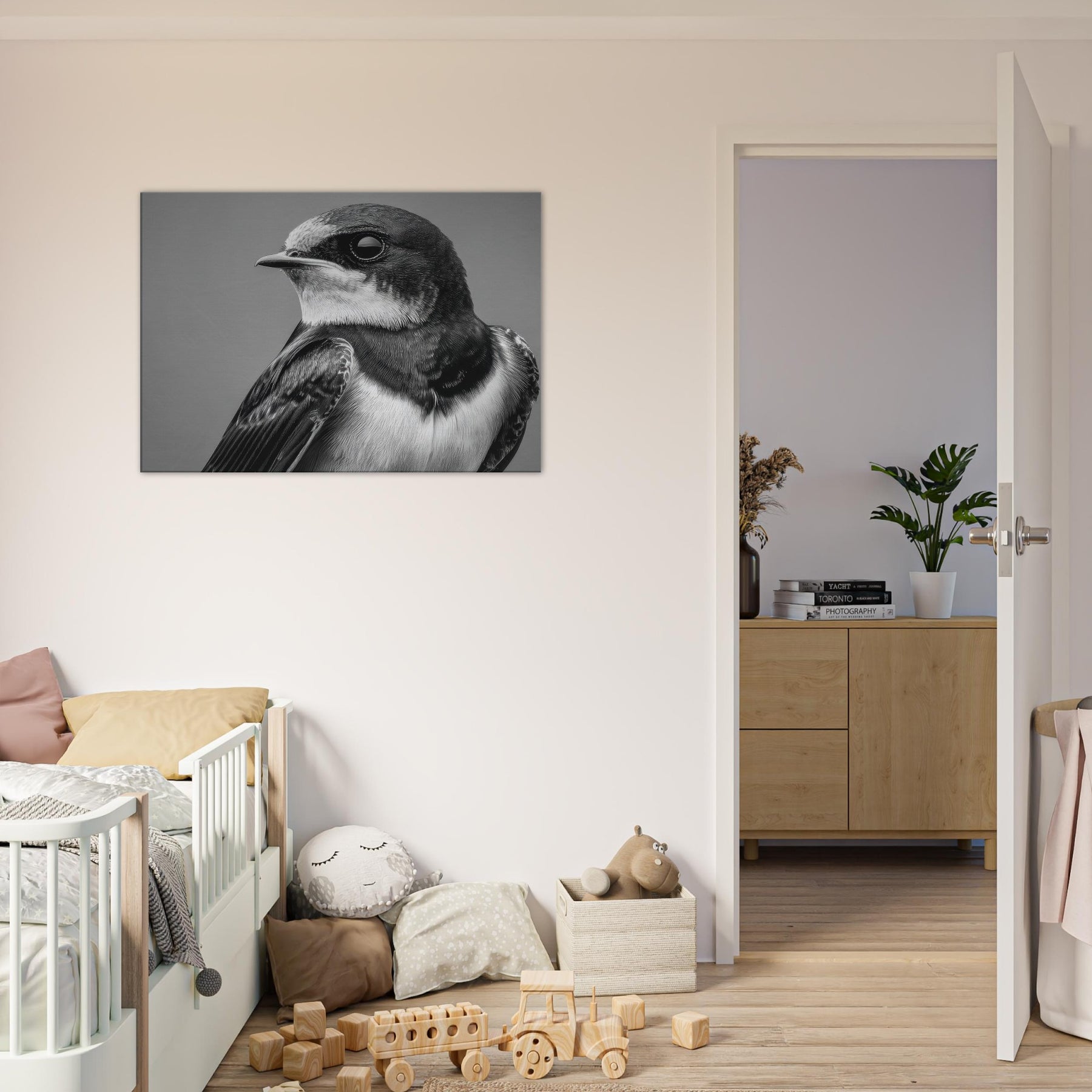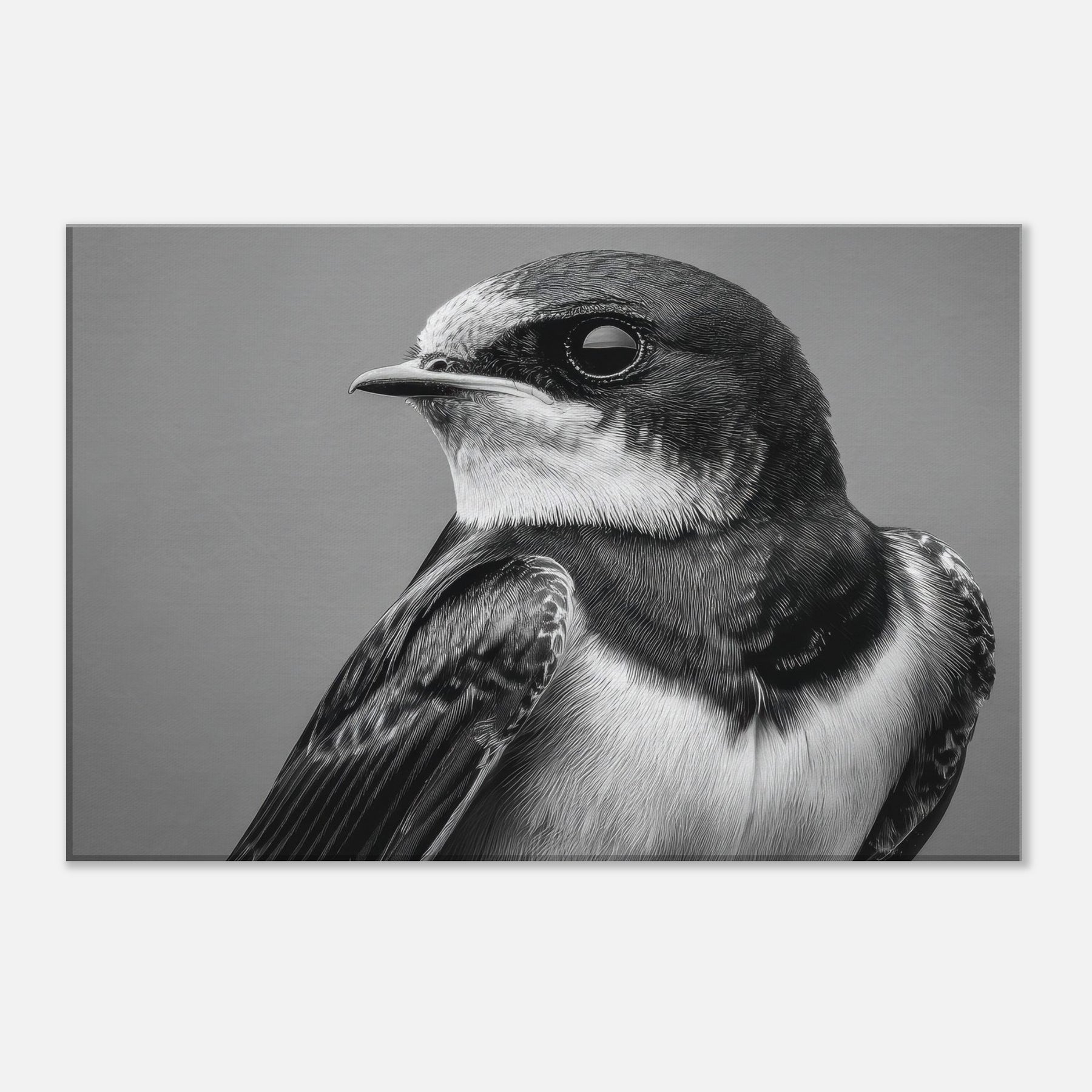 Mindfully perched in monochrome, this study of a swallow captures a moment between breath and breeze. The bold black ink traces its contour, while gentle whites carve light across a feathered chest, inviting quiet contemplation. Hang this piece where a sunlit room meets evening calm a hallway, a study, or a living room corner where the swallow’s poised elegance can slow the tempo of daily life. It pairs effortlessly with clean lines, soft textures, and the quiet drama of black and white interiors.