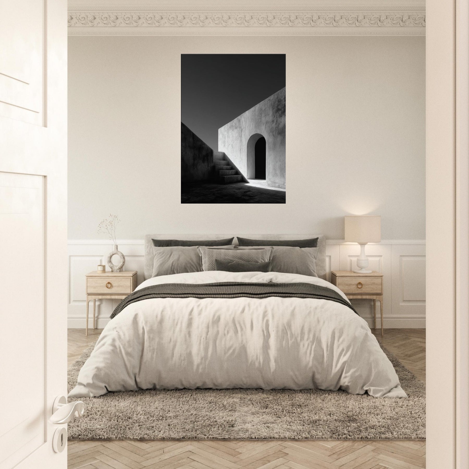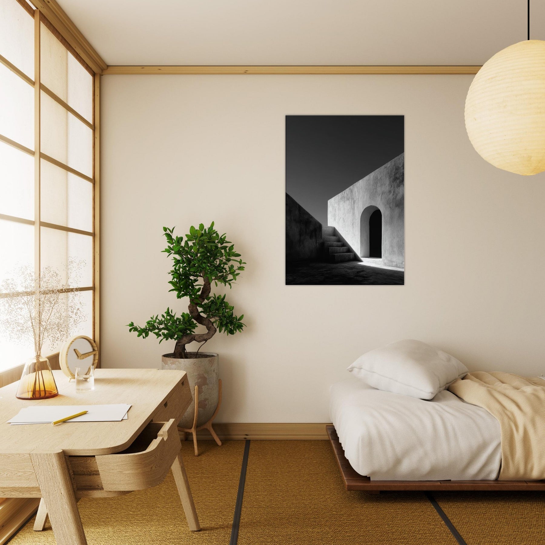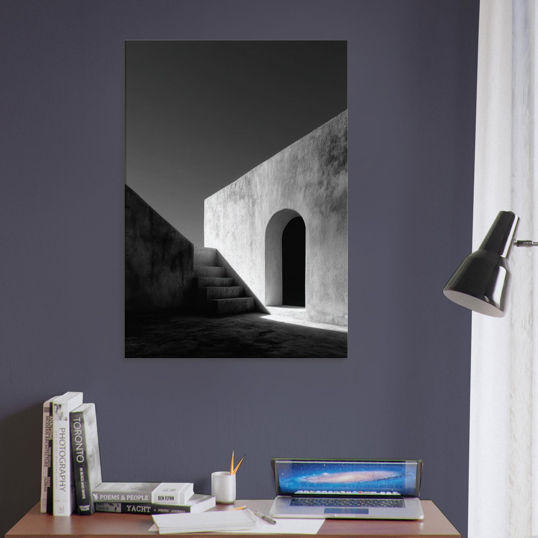 Moon Gate unfolds in monochrome, a quiet architectural poem that invites contemplation and calm. The stark light and deep shadows sculpt an air of mystery, turning a simple passage into a doorway to imagination. Perfect for a modern living room or study, this black and white composition adds sophistication without shouting, pairing clean lines with soft ambiance. Let the Moon Gate anchor your space, guiding attention to architecture, city lights, and the hush between day and night.