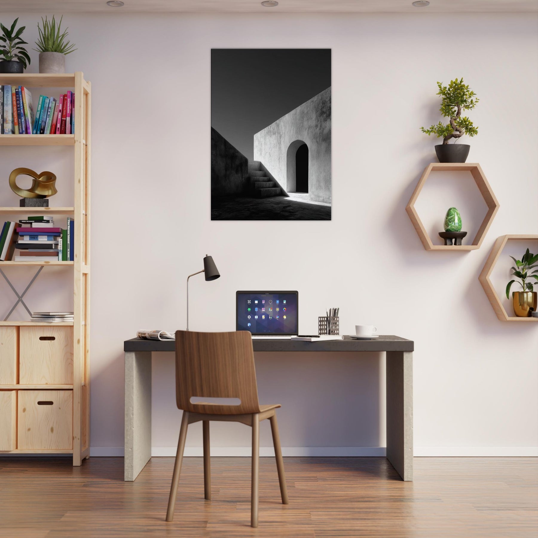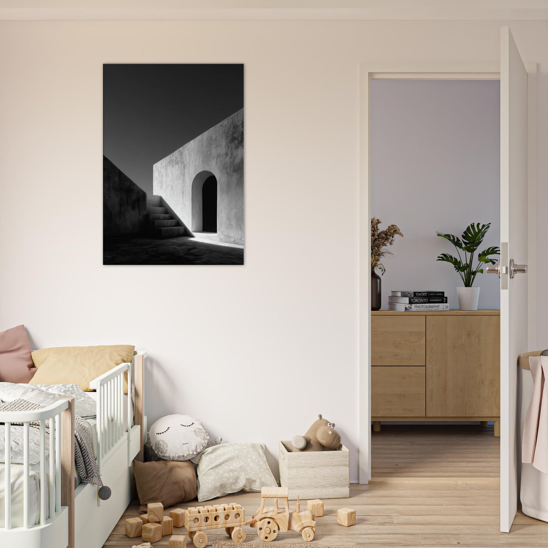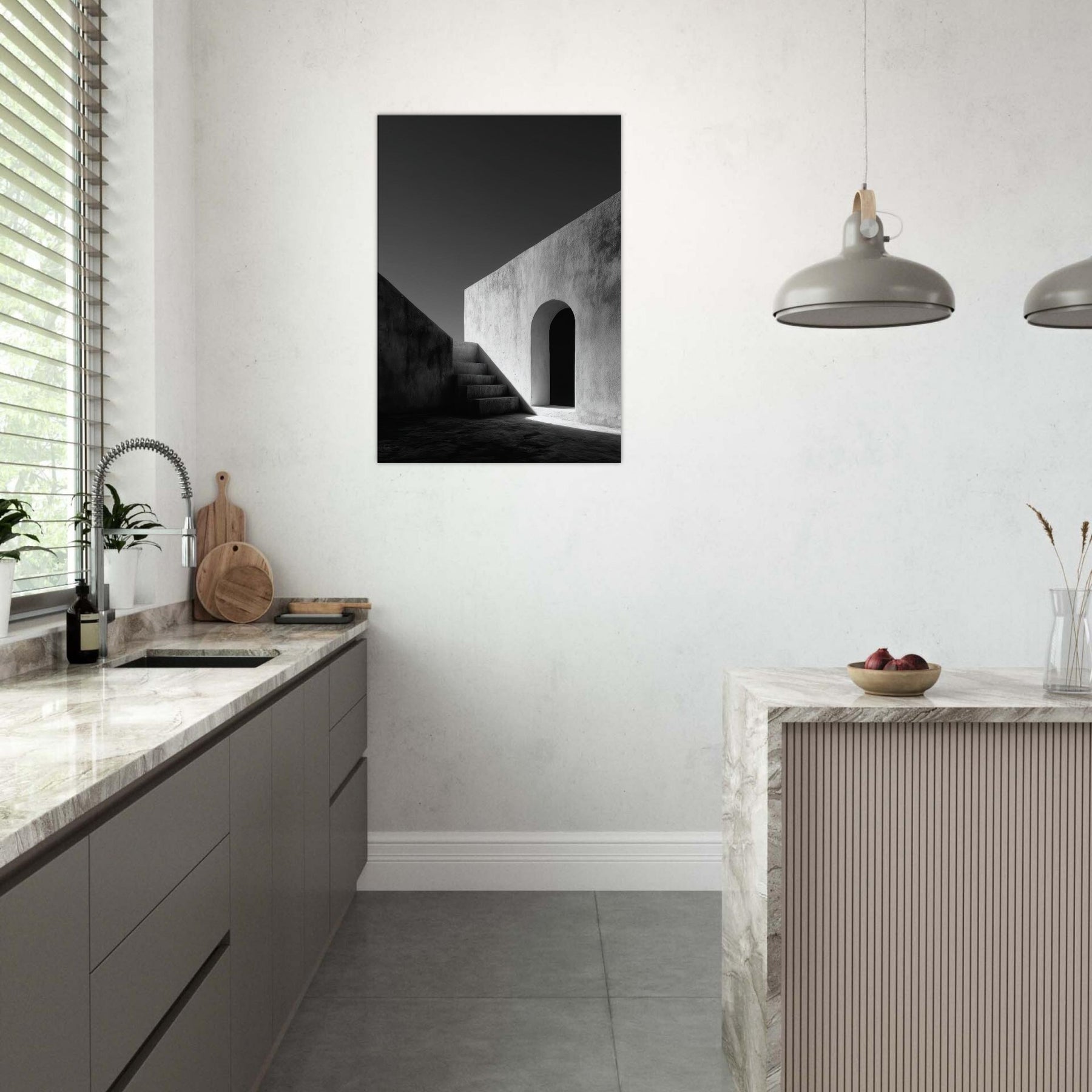 Moon Gate unfolds in monochrome, a quiet architectural poem that invites contemplation and calm. The stark light and deep shadows sculpt an air of mystery, turning a simple passage into a doorway to imagination. Perfect for a modern living room or study, this black and white composition adds sophistication without shouting, pairing clean lines with soft ambiance. Let the Moon Gate anchor your space, guiding attention to architecture, city lights, and the hush between day and night.