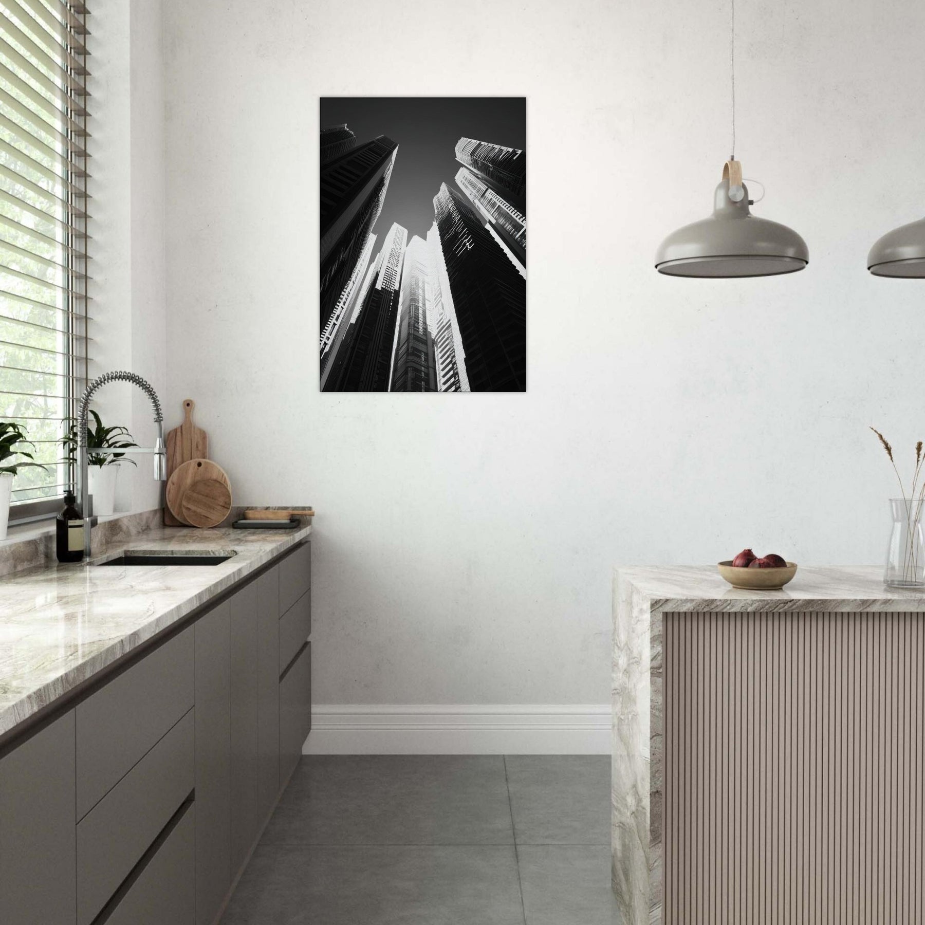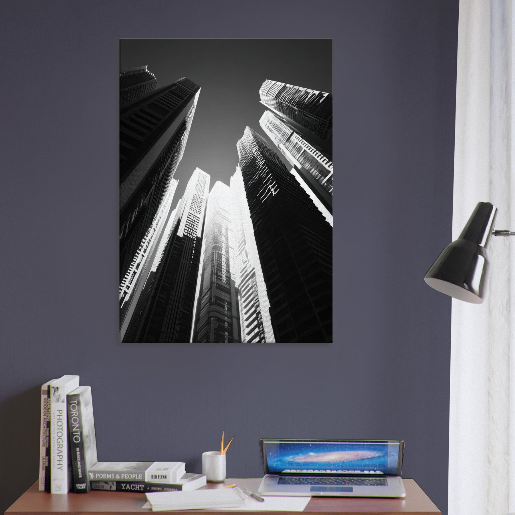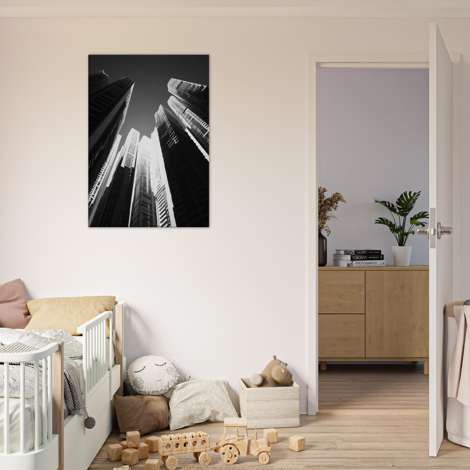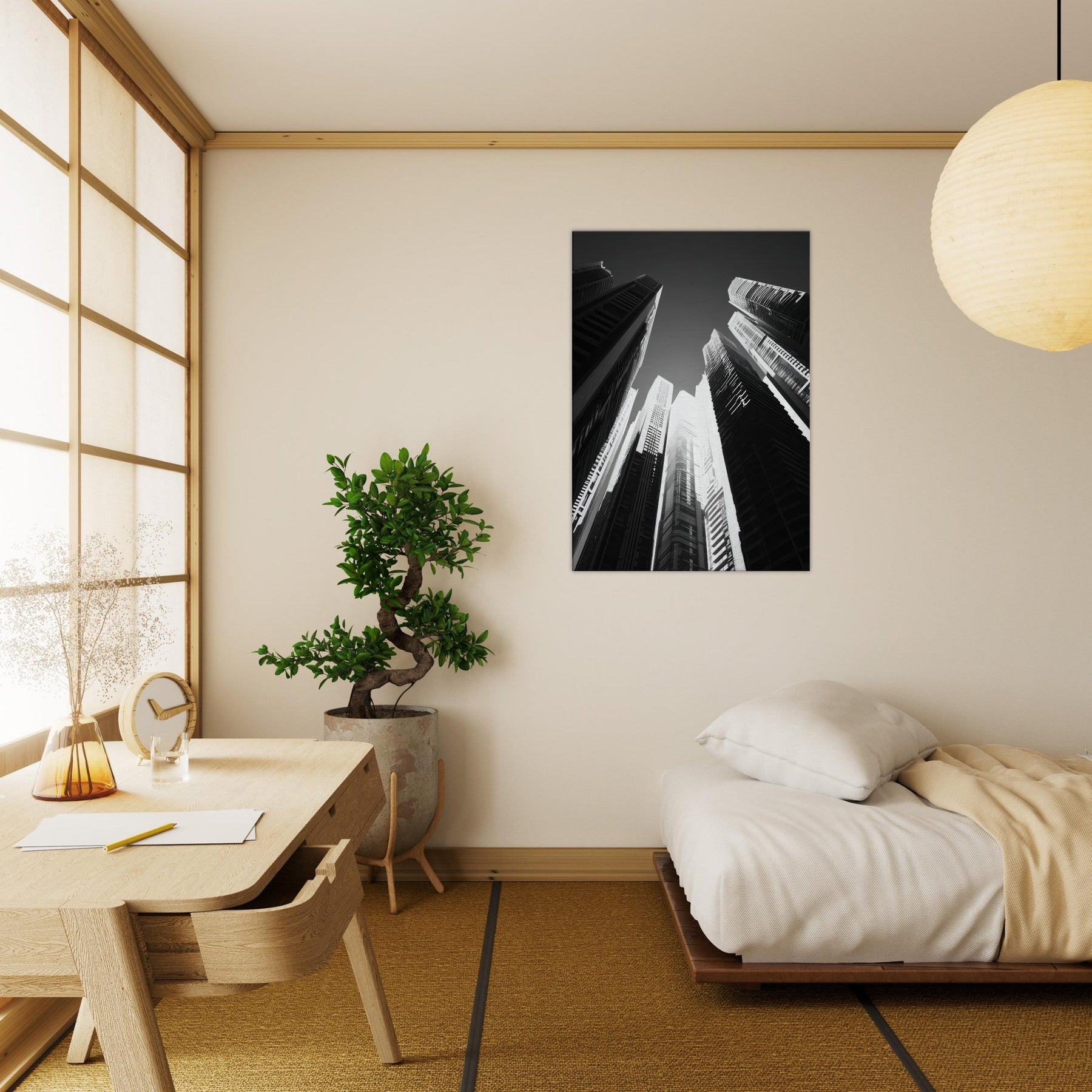 Immerse yourself in a Guardian of glass and steel as the Cyberpunk City unfolds in stark black and white. This kinetic vista pulls light into shadow, turning alleyways into silhouettes and towers into upright lullabies. The air hums with distant traffic, the future pressing close yet serene, inviting contemplation in a living room or study. Hang this piece where you want a pulse of nocturnal sophistication every glance reveals new lines, new rhythms, and a mood that makes modern spaces feel timeless.