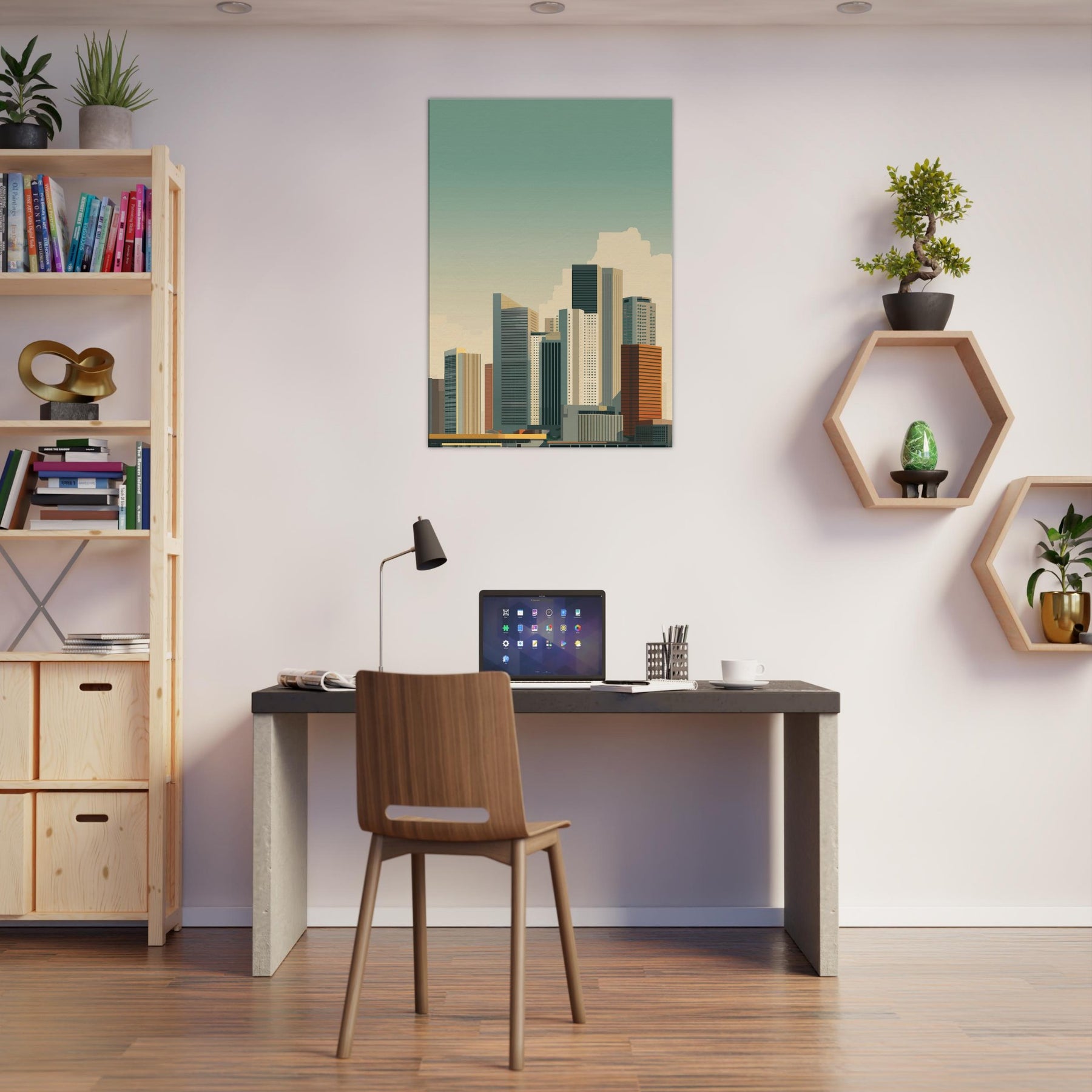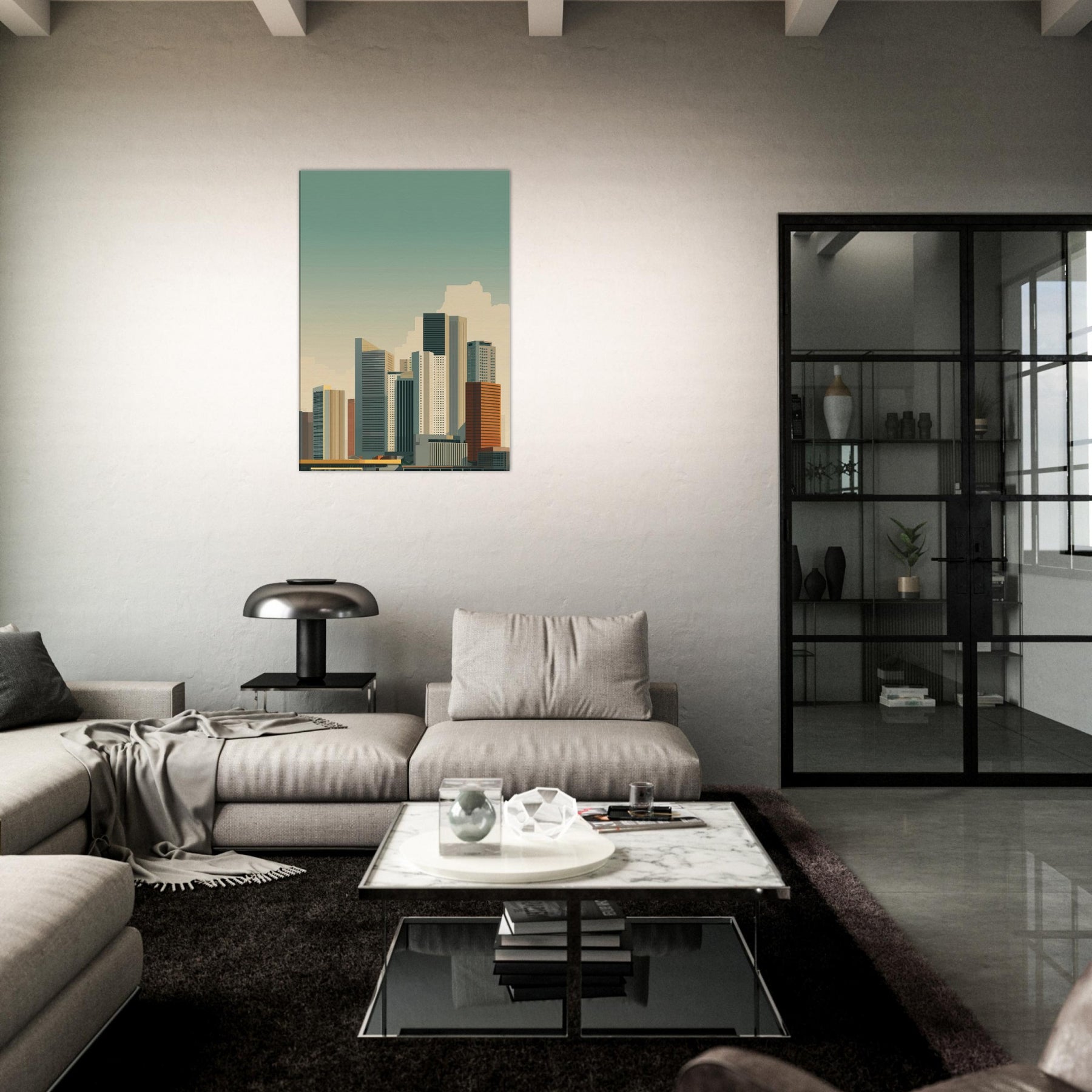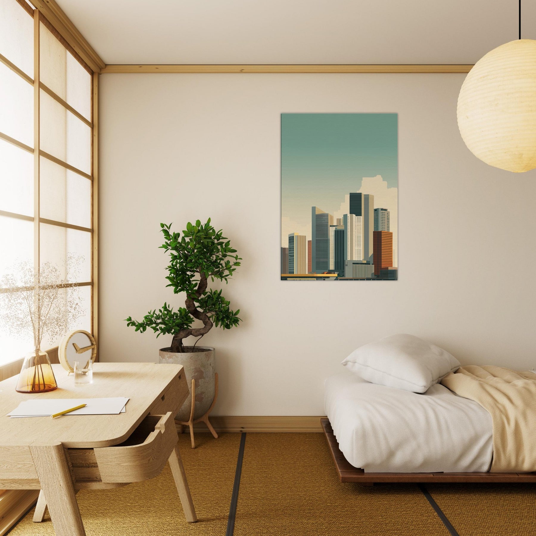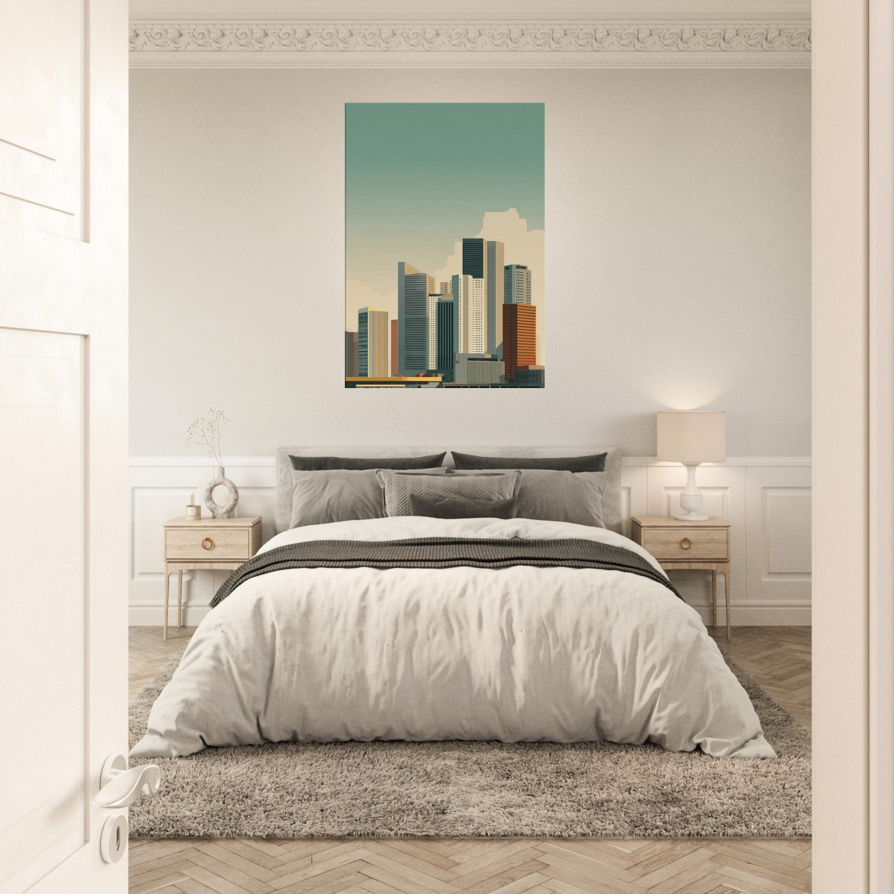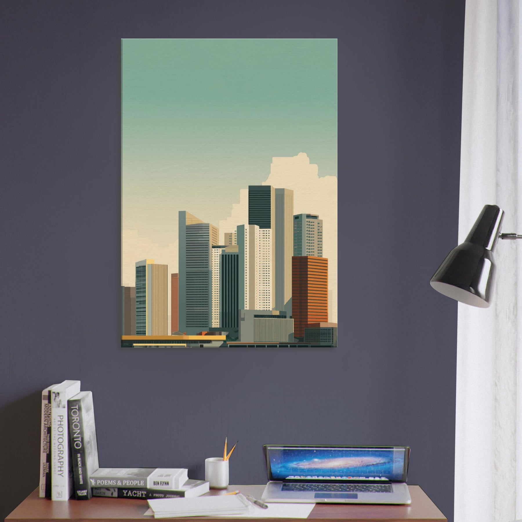 Immerse your room in the soft geometry of Singapore's cityscape. This minimalist composition distills towers to calm lines and gentle blocks of color, inviting quiet reflection as daylight traverses the skyline. The piece brims with atmosphere warm afternoons, sea breezes, the glow of dusk against glass. Perfect above a sofa or in a study, it anchors a modern space with serenity, letting texture and negative space breathe around everyday objects. A city's pulse reduced to balance and grace.