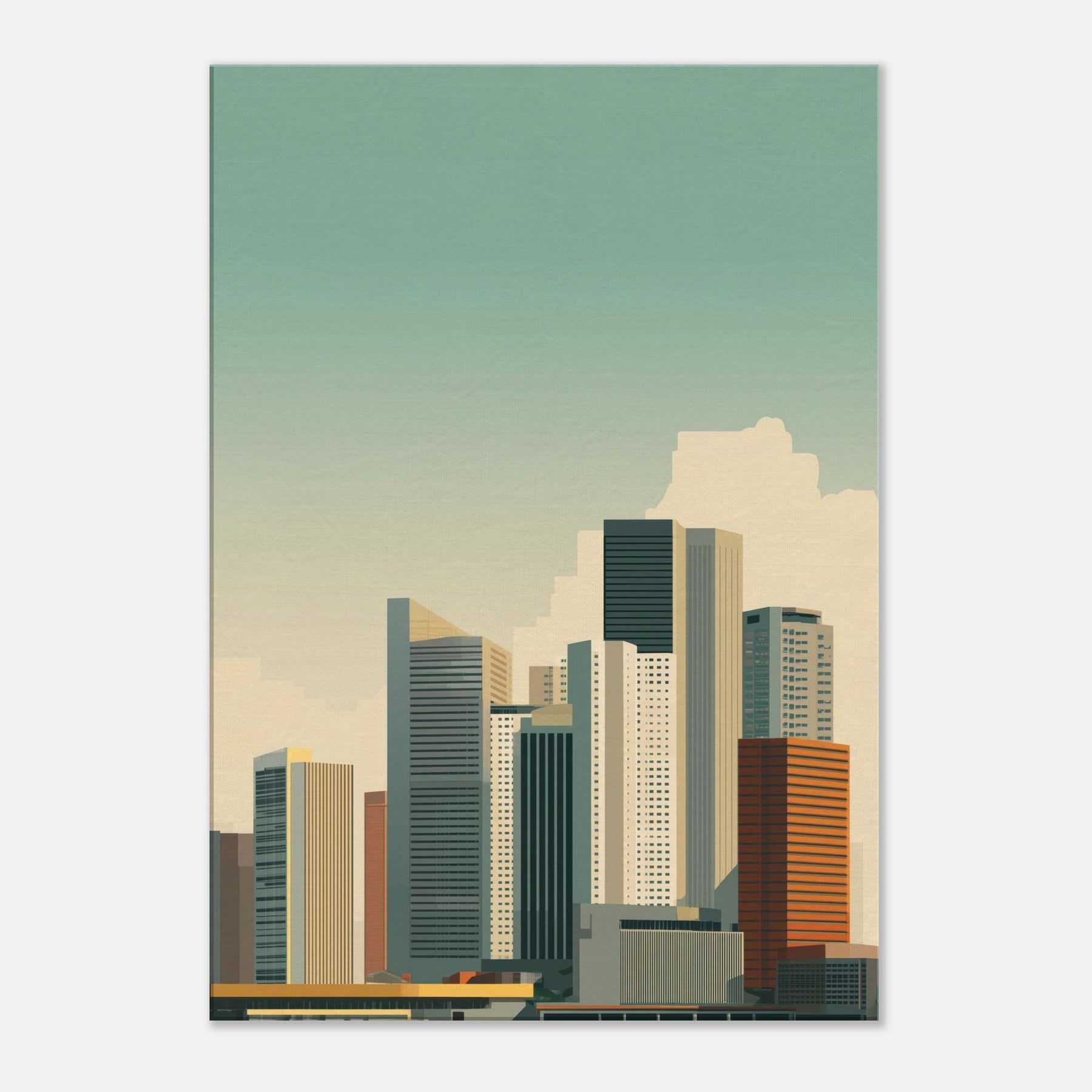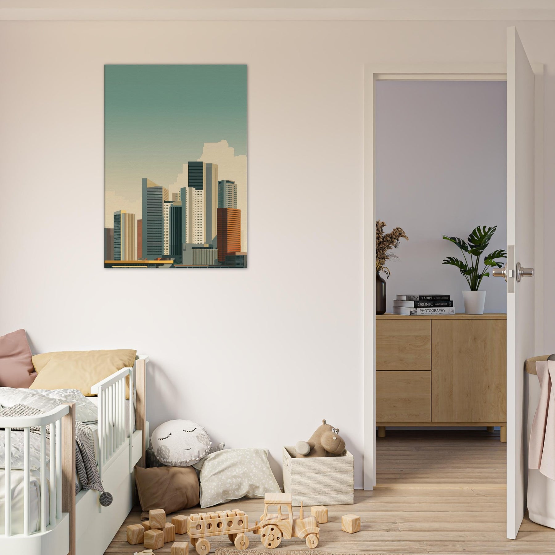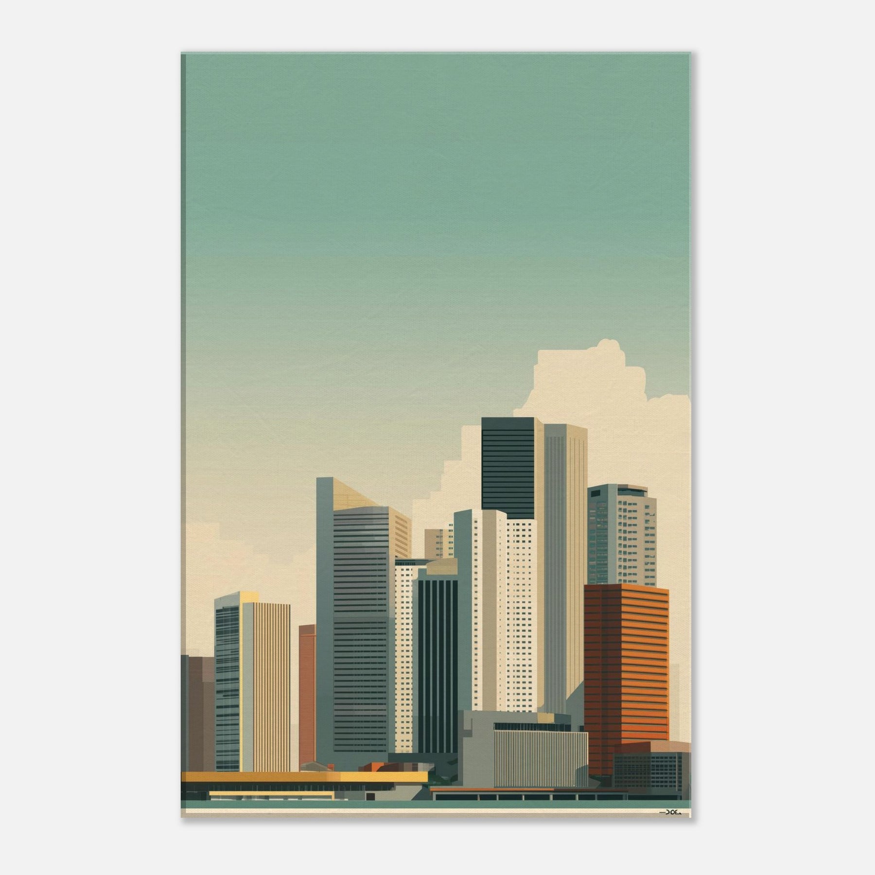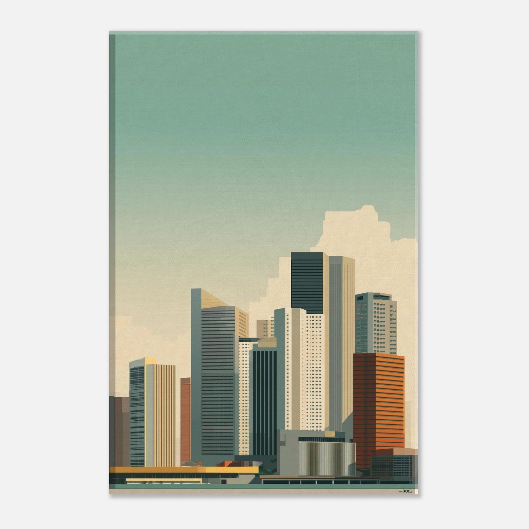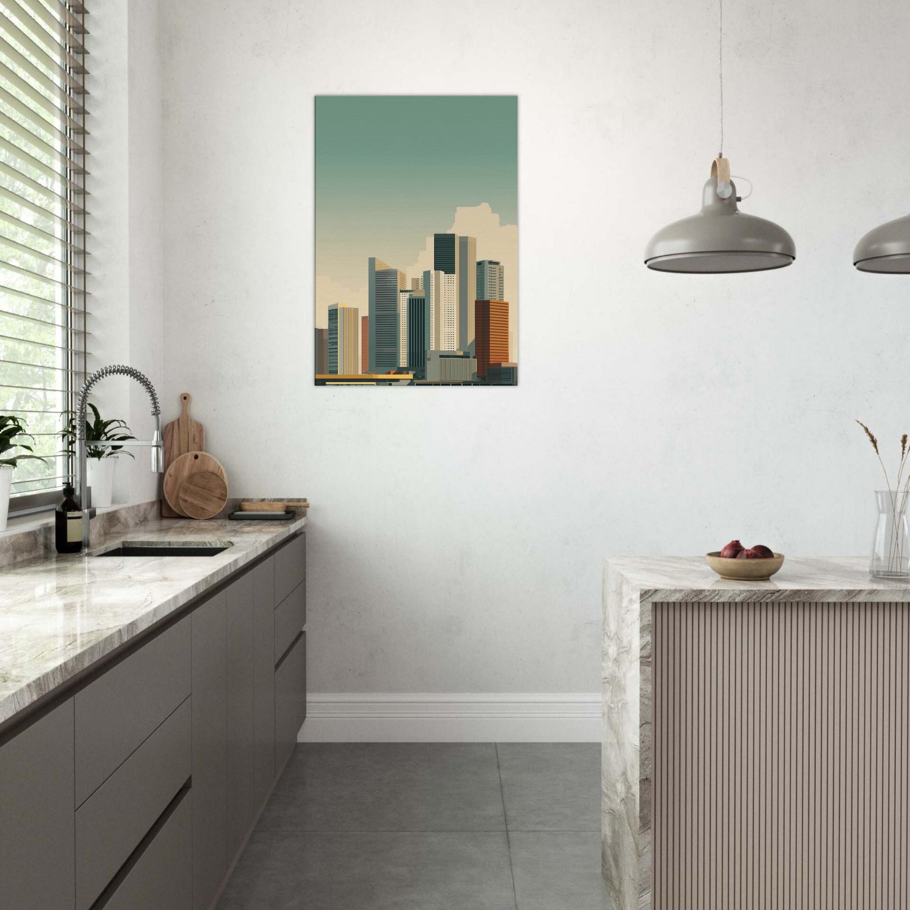 Immerse your room in the soft geometry of Singapore's cityscape. This minimalist composition distills towers to calm lines and gentle blocks of color, inviting quiet reflection as daylight traverses the skyline. The piece brims with atmosphere warm afternoons, sea breezes, the glow of dusk against glass. Perfect above a sofa or in a study, it anchors a modern space with serenity, letting texture and negative space breathe around everyday objects. A city's pulse reduced to balance and grace.
