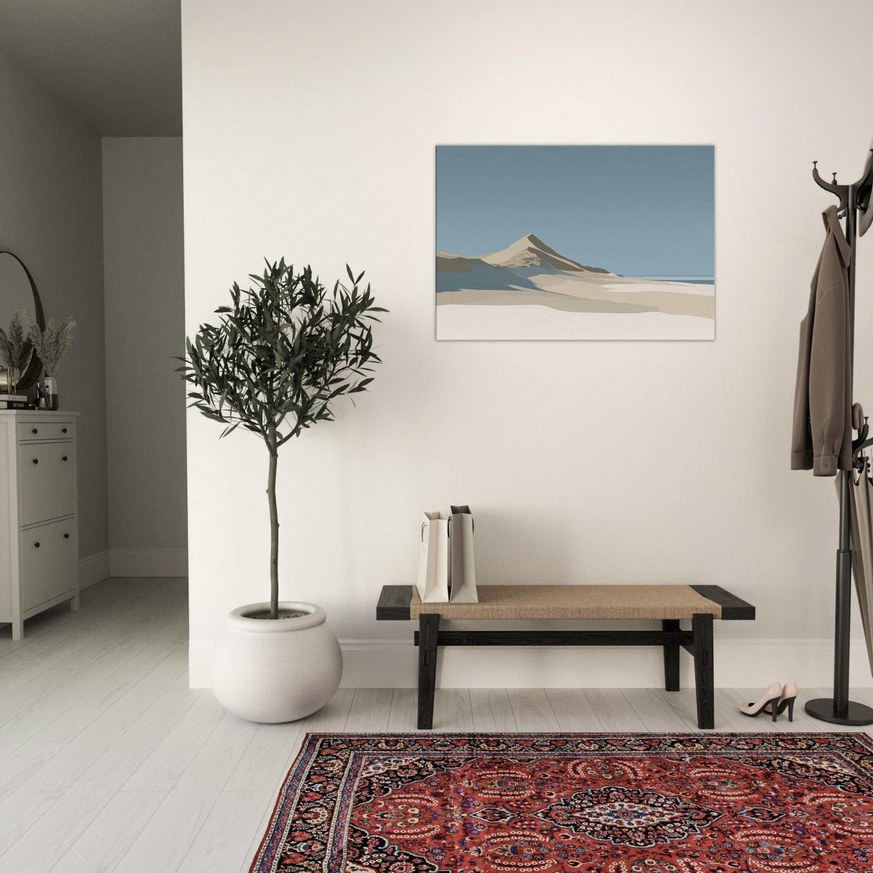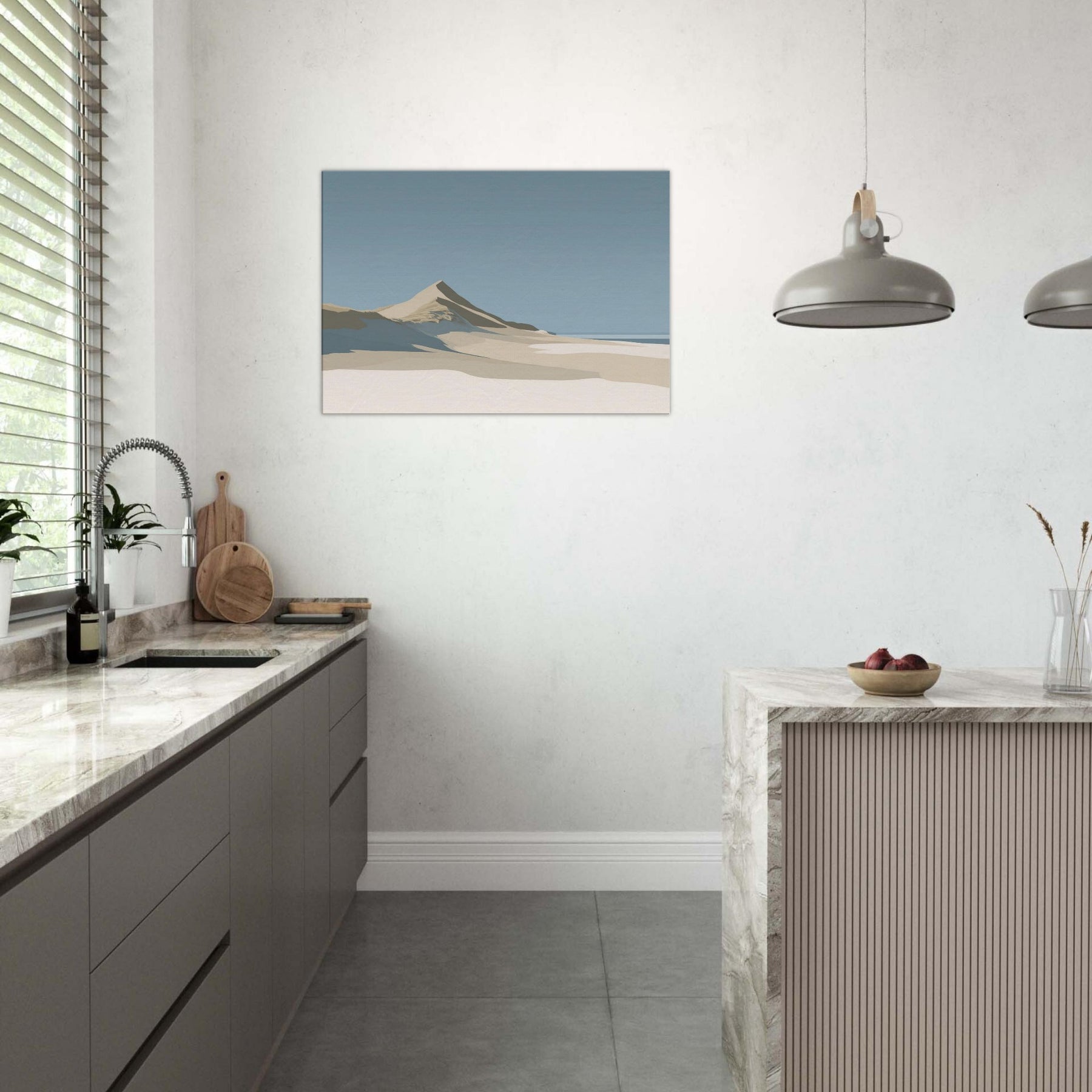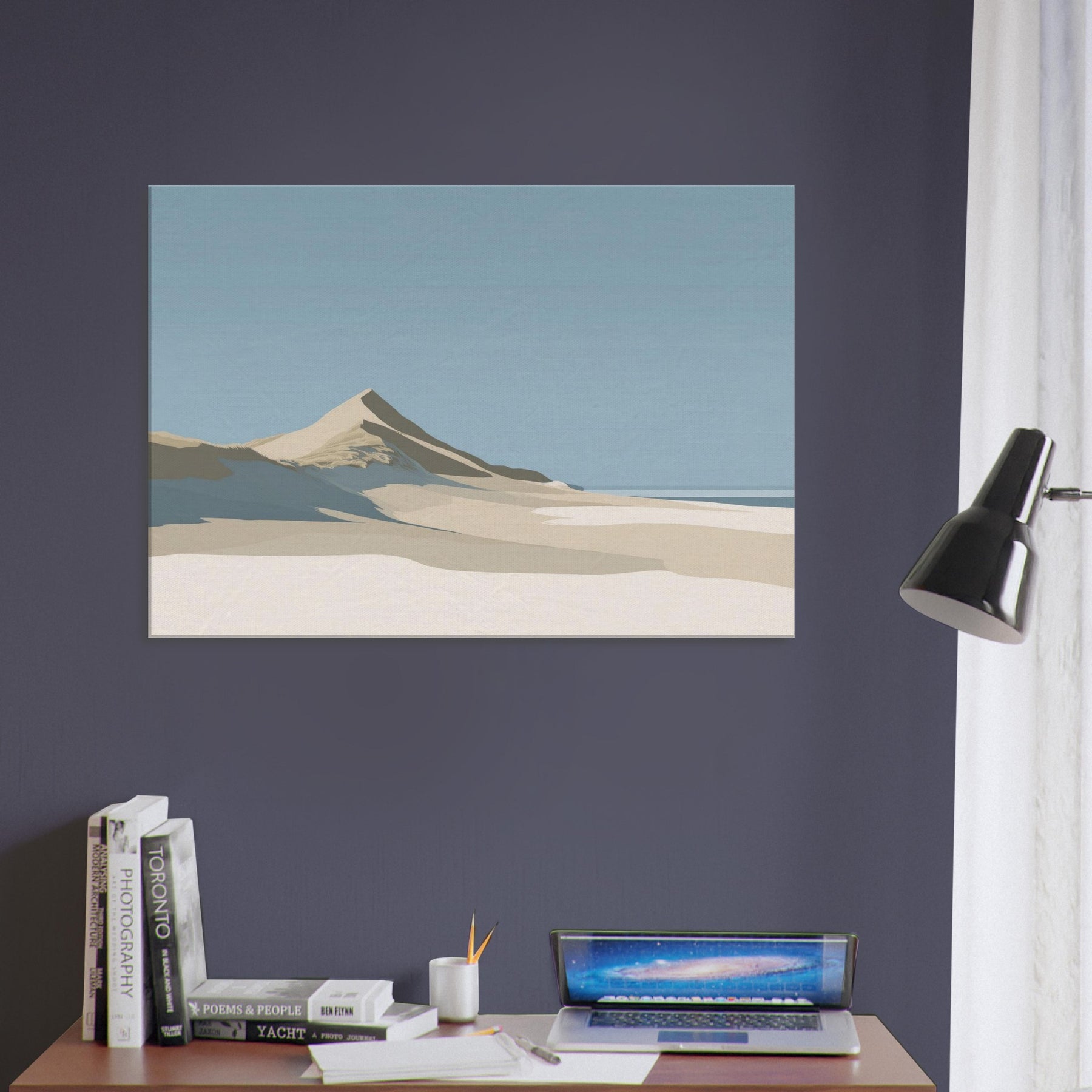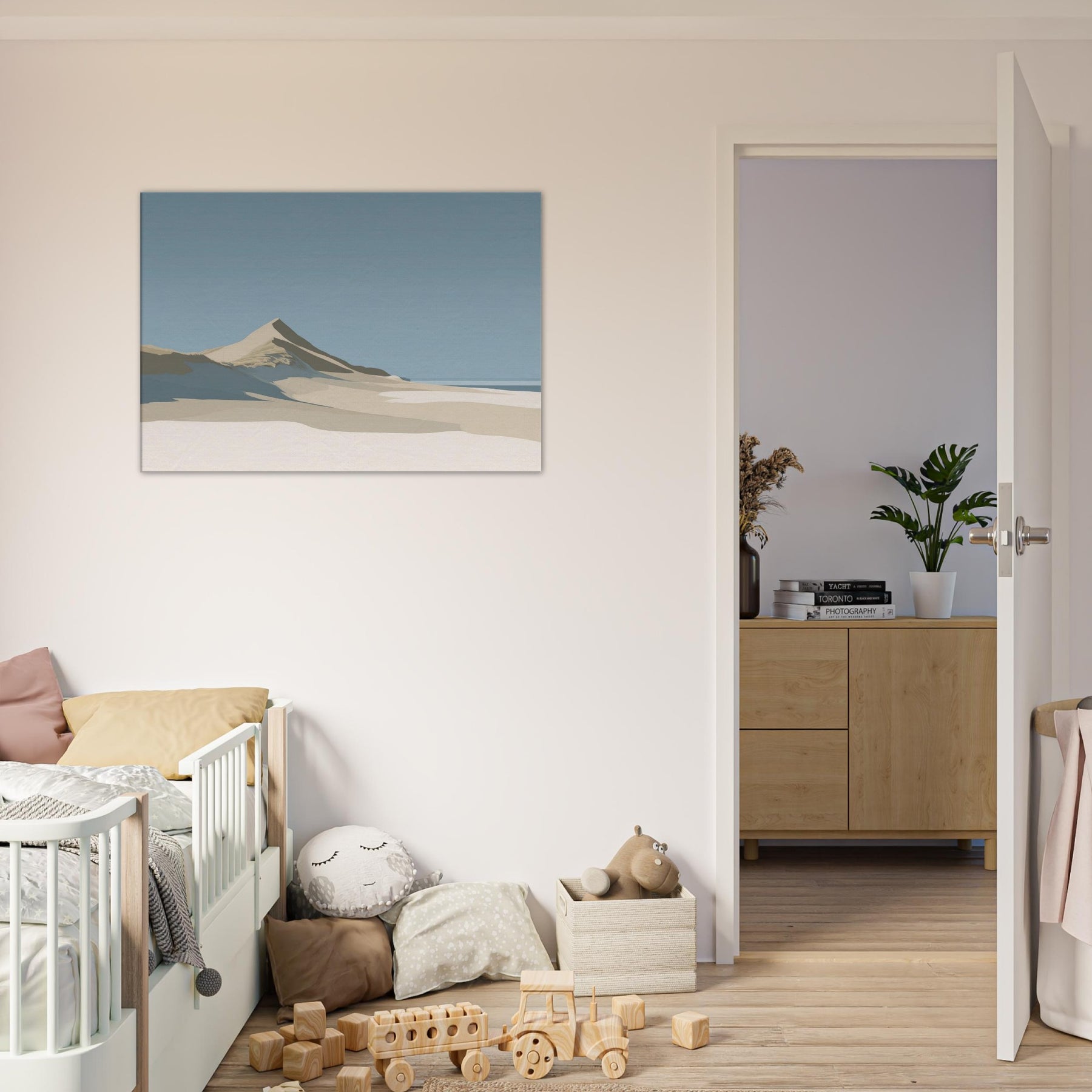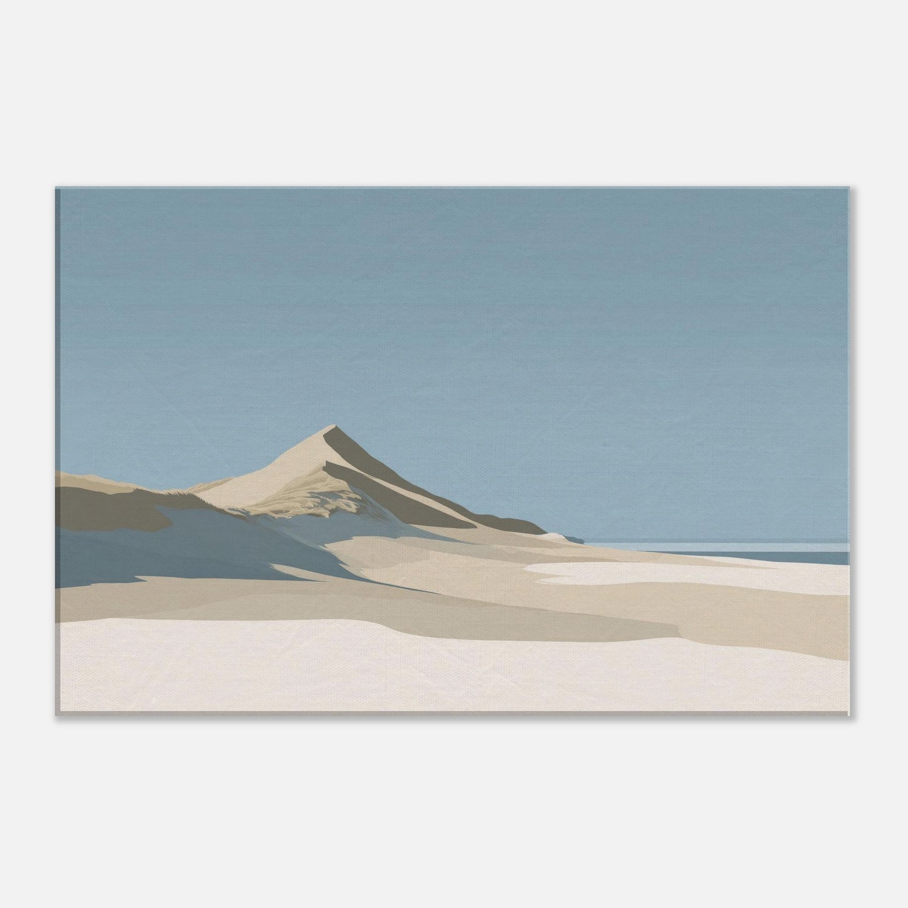 Coastal Dunes gathers the quiet light of a salt wind morning into a single, serene horizon. The soft slopes and pale sands invite stillness, turning any room into a sanctuary where breath slows and the mind settles. Rendered in muted tones of beige, ivory, and sky, this scene speaks in calm, architectural lines that harmonize with natural textures. Hang it in a living space to summon coastal calm, a memory of dunes after dawn and a breath of ocean air, without leaving home.