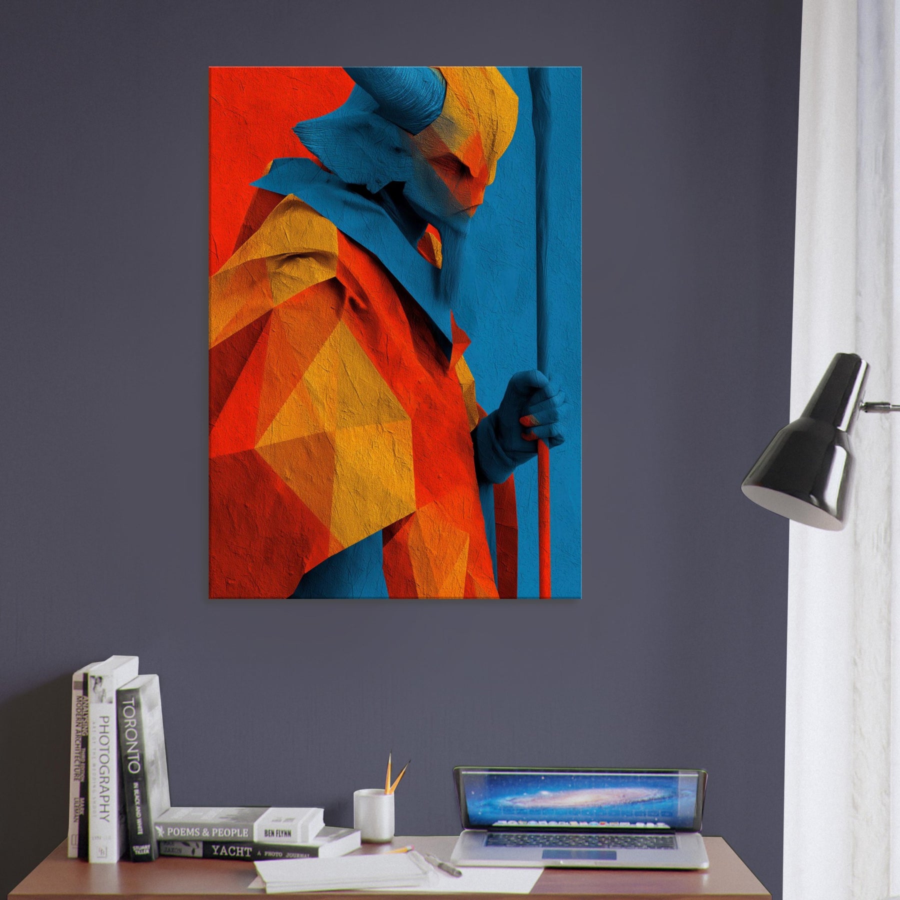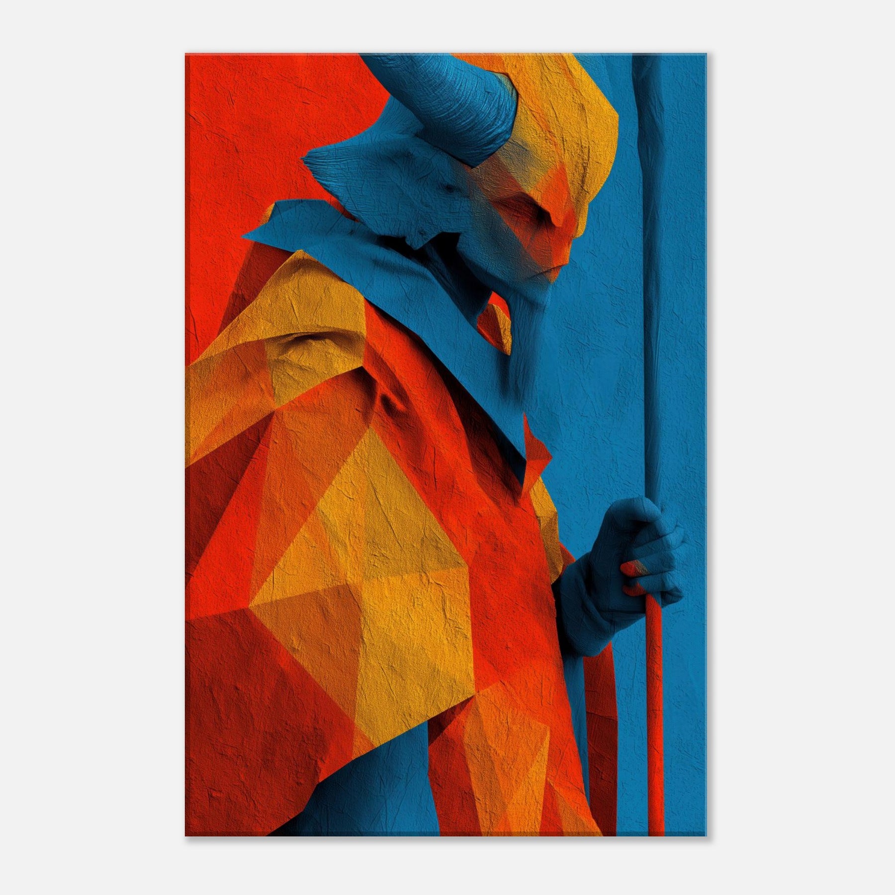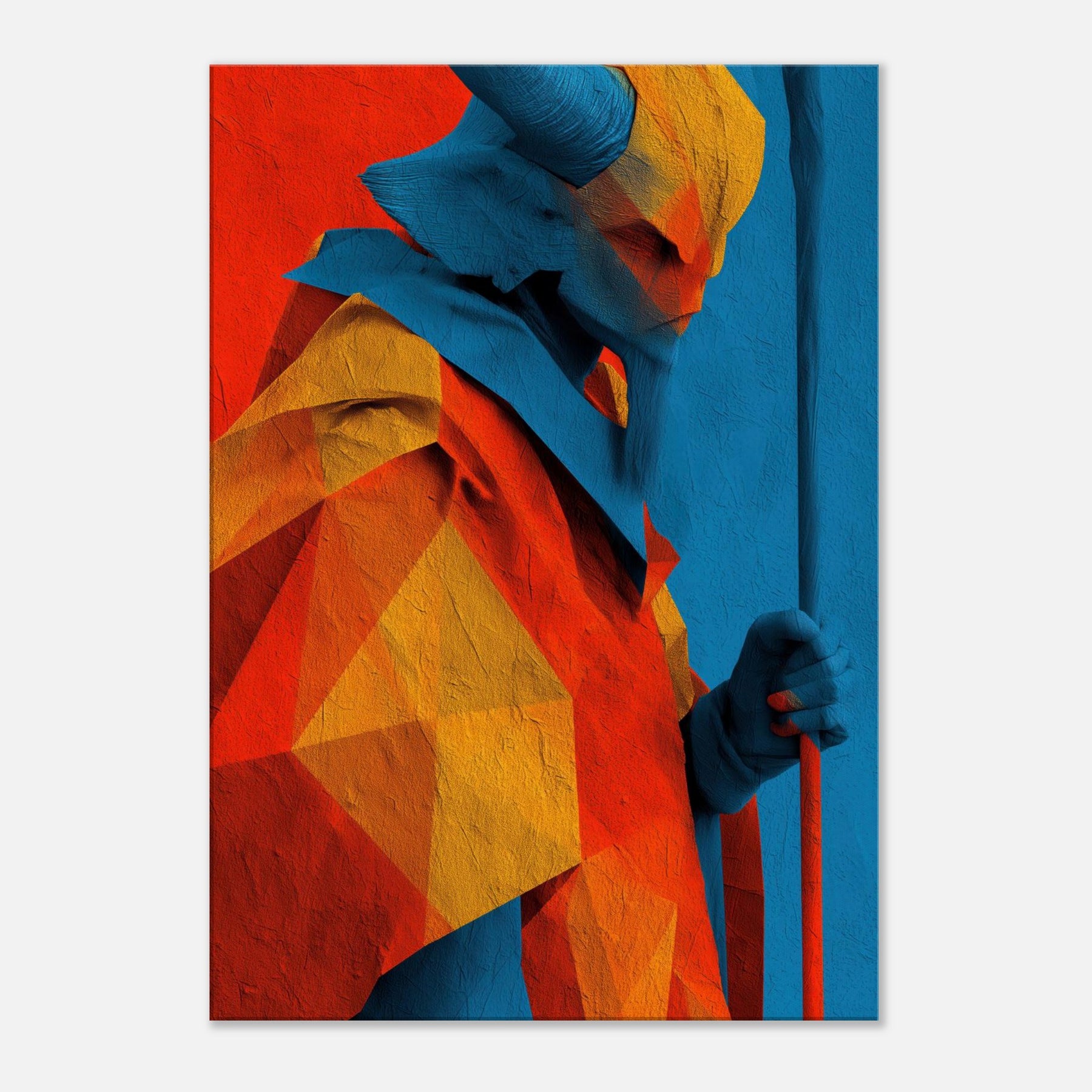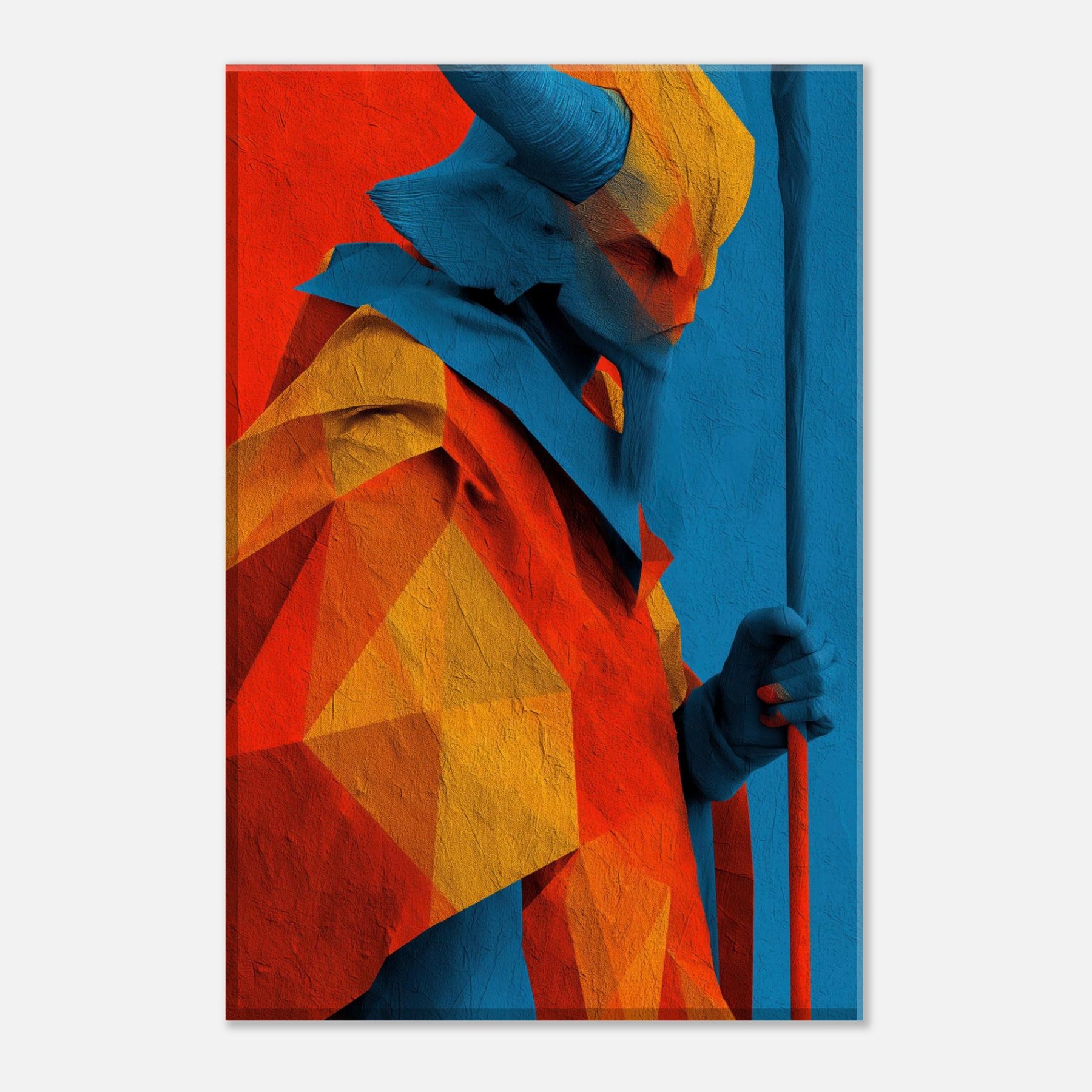 An abstract odyssey in color, Ra emerges as a radiant oracle against a field of heat and sky. The layered geometry and electric azure channel sunlight into your room, turning walls into a quiet temple. The sculpture like folds invite touch (though 2D), the warmth of orange and gold balances cool blues, creating a paradox of crossing horizons. Hang it in a living room or study to evoke mythic energy, daily ritual, and timeless wonder.