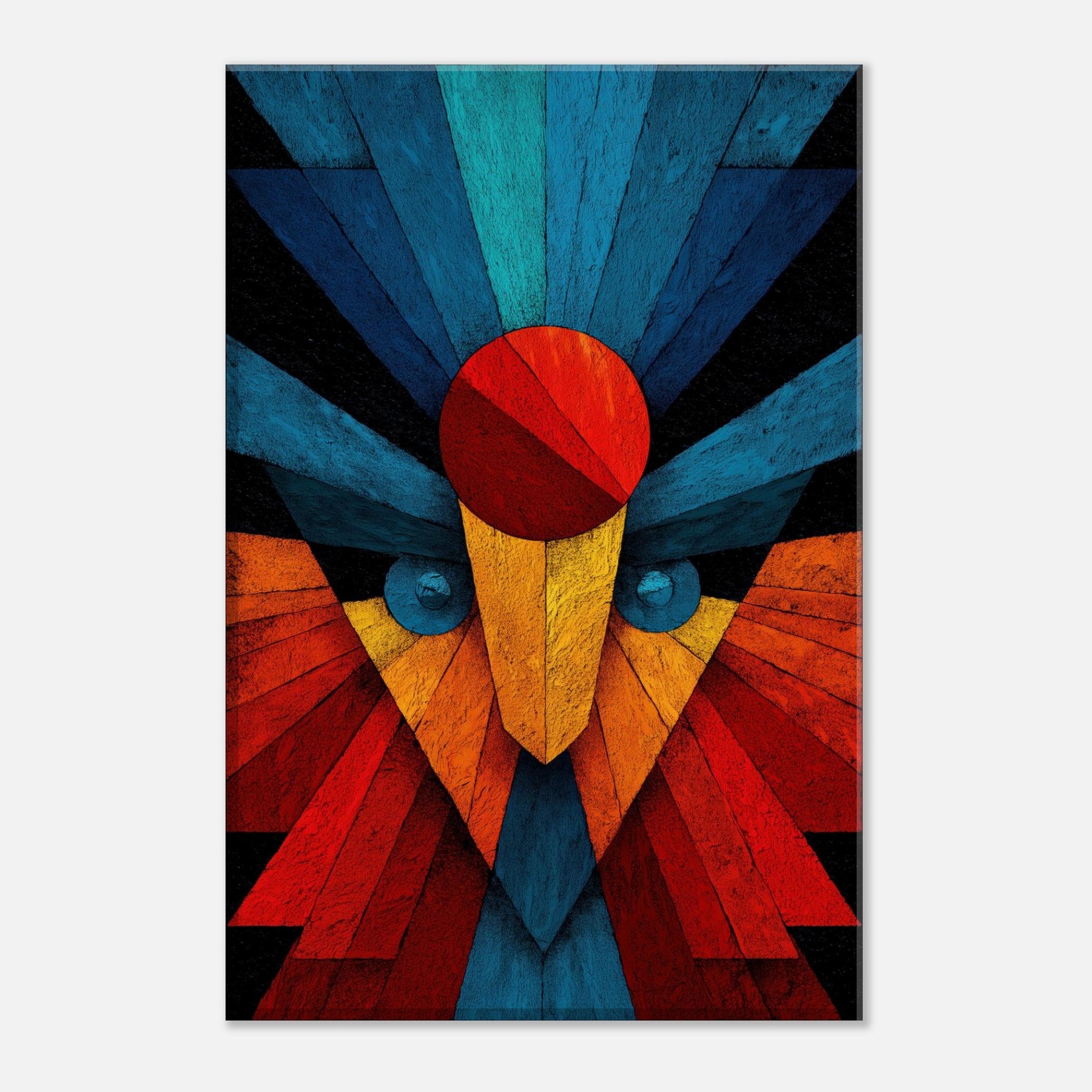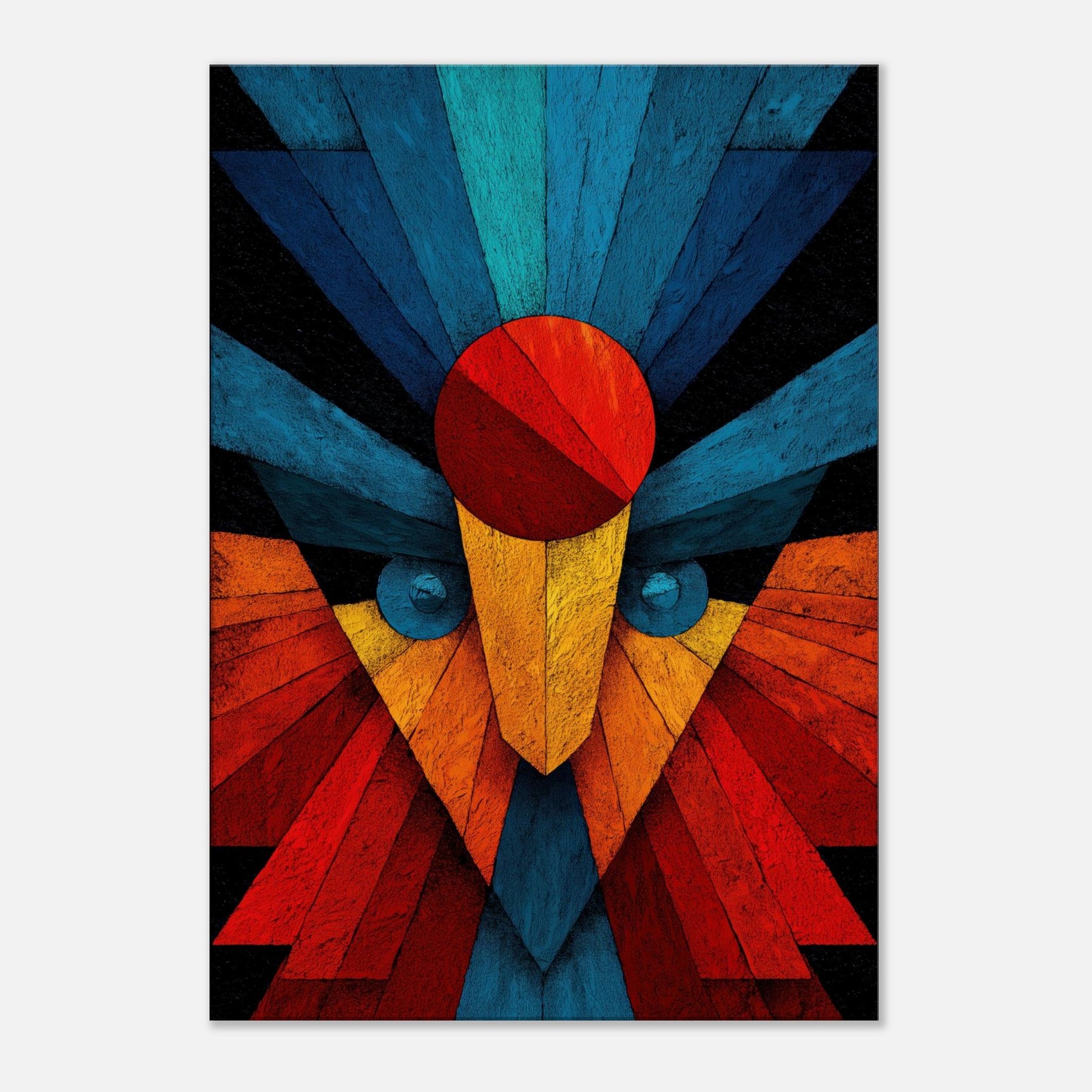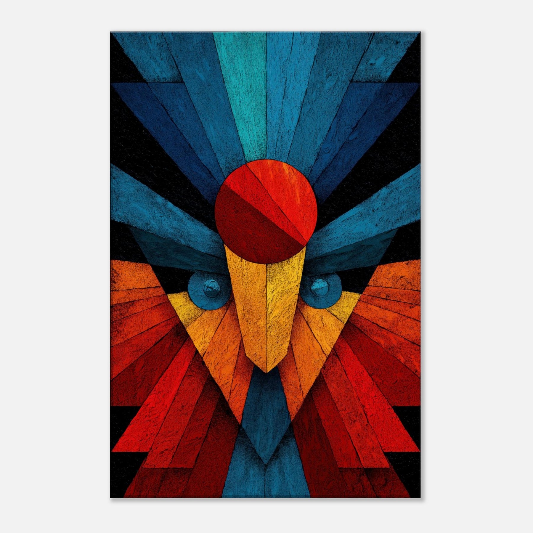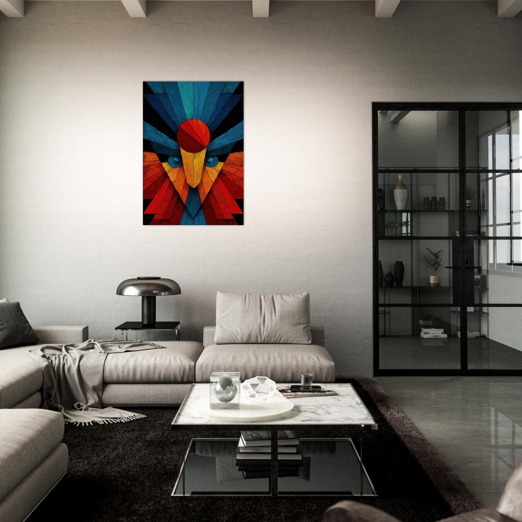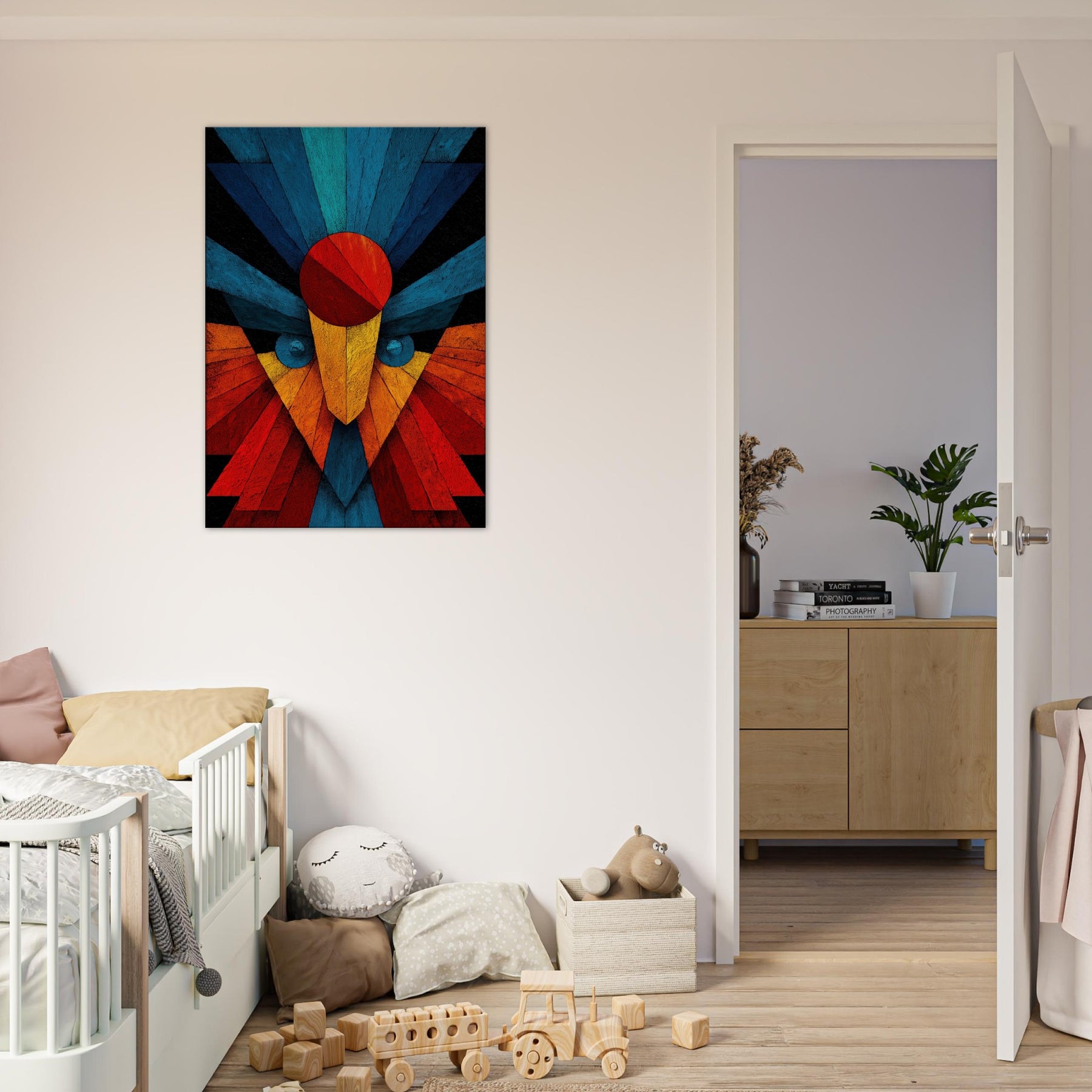 Totem emerges as a radiant totemic silhouette, a ceremonial beacon cast in a blaze of stacked color. This piece folds sunrise into geometry, where warm crimsons, oranges, and golds meet cool teals and midnight blues in a hypnotic ascent. The surface texture suggests carved cedar and weathered stone, inviting touch and contemplation. In a living room or study, the presence of Totem anchors the space with mystic rhythm, turning mundane moments into quiet rituals and opening a doorway to imagination.