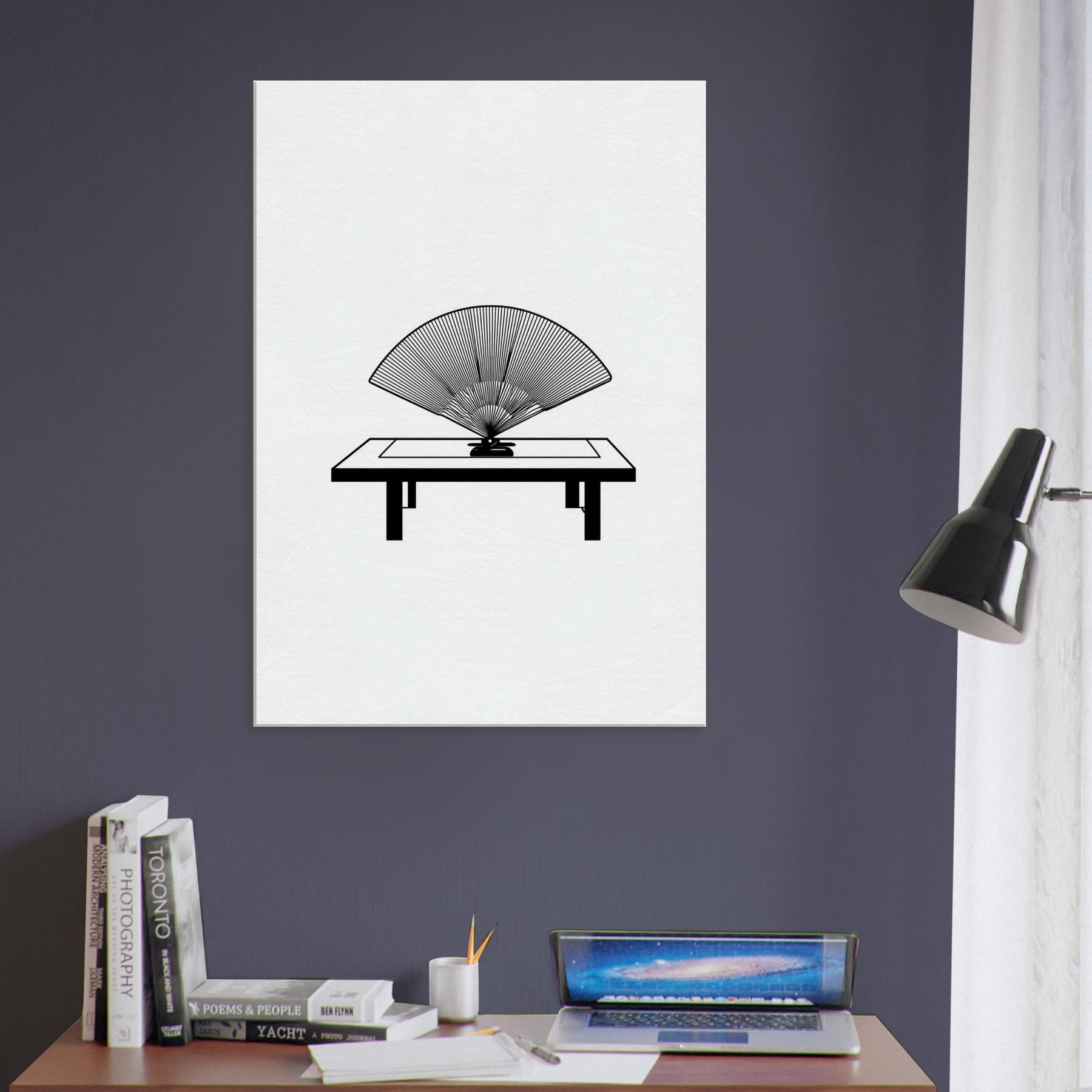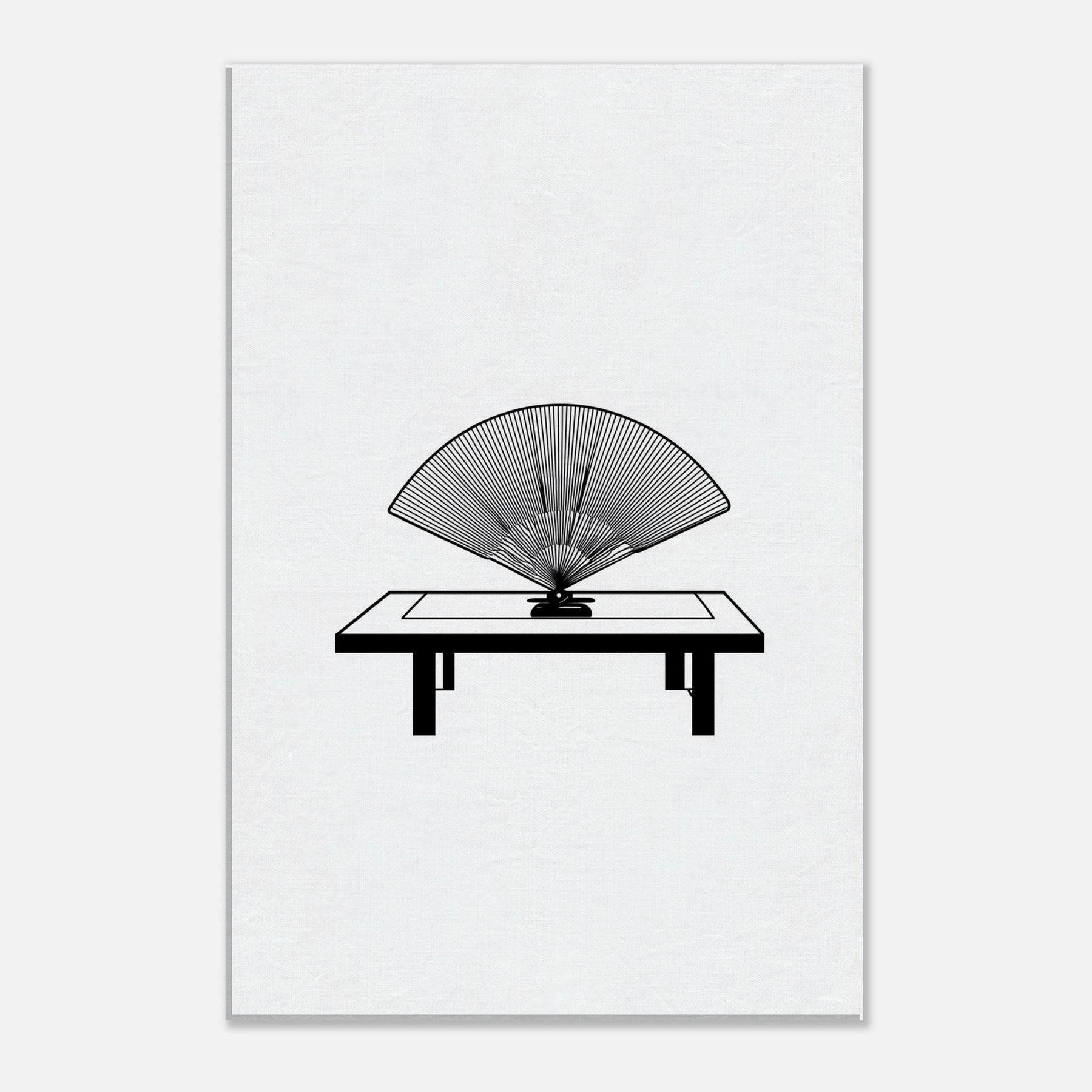An elegant line drawing captures the Folding Fan on Table in a moment of crisp restraint. The fan's radiating spokes and careful geometry rest atop a stark, grounded table, inviting the eye to travel along its slender arcs. This monochrome study emits a quiet, refined energy perfect for a living room that values clarity, balance, and restraint. Hang it in a white walled alcove or above a charcoal sofa to create a focal whisper, where space, shadow, and form breathe in unison.
