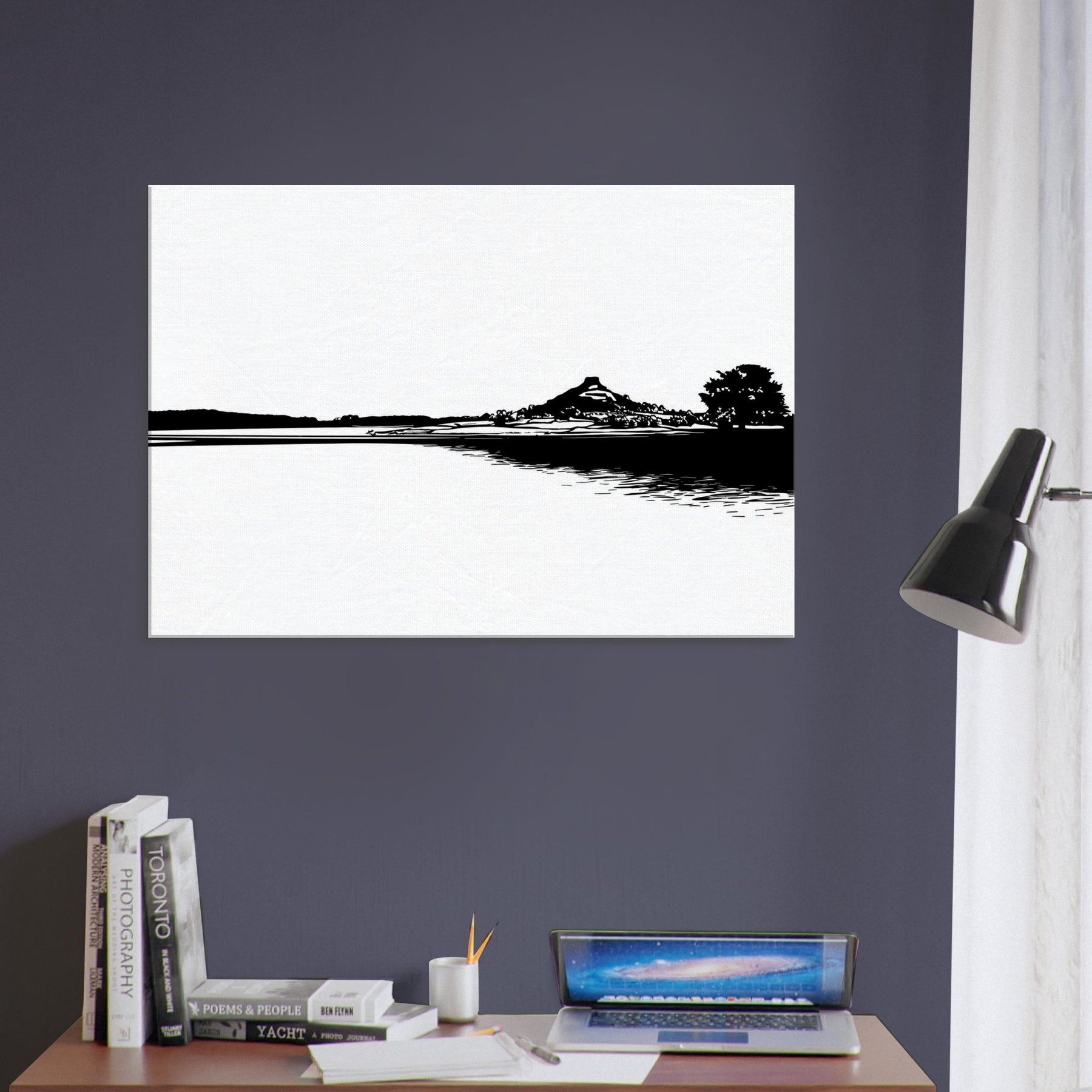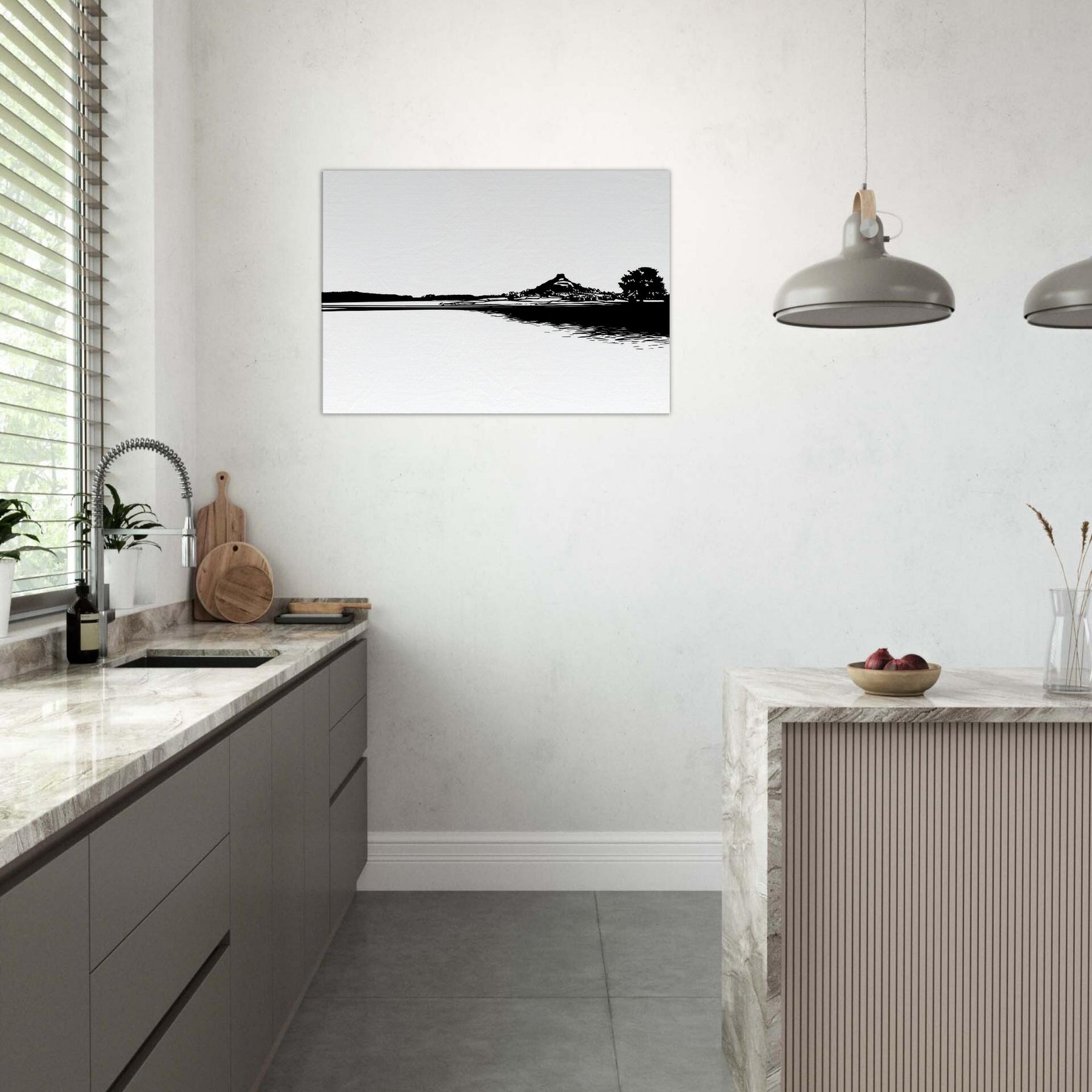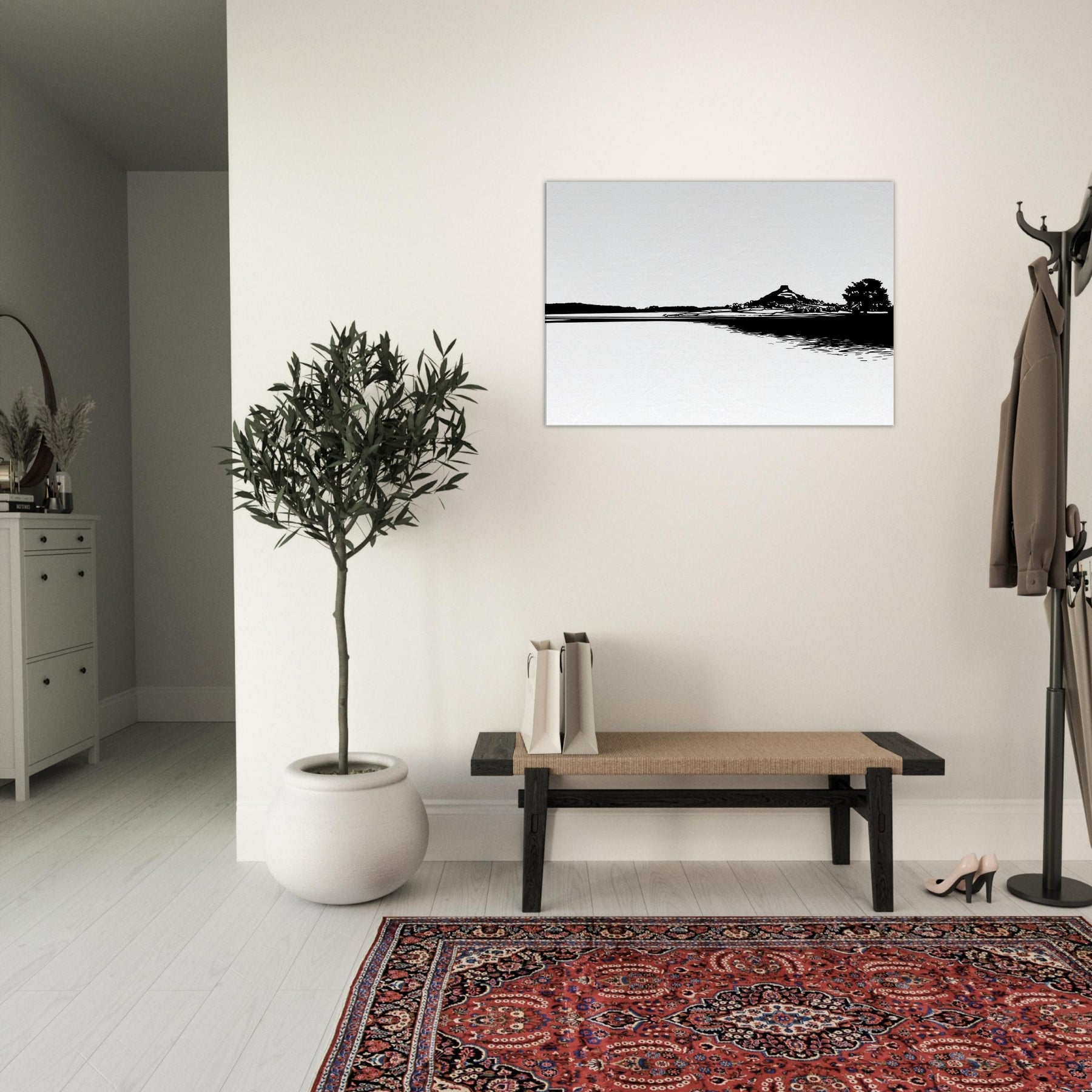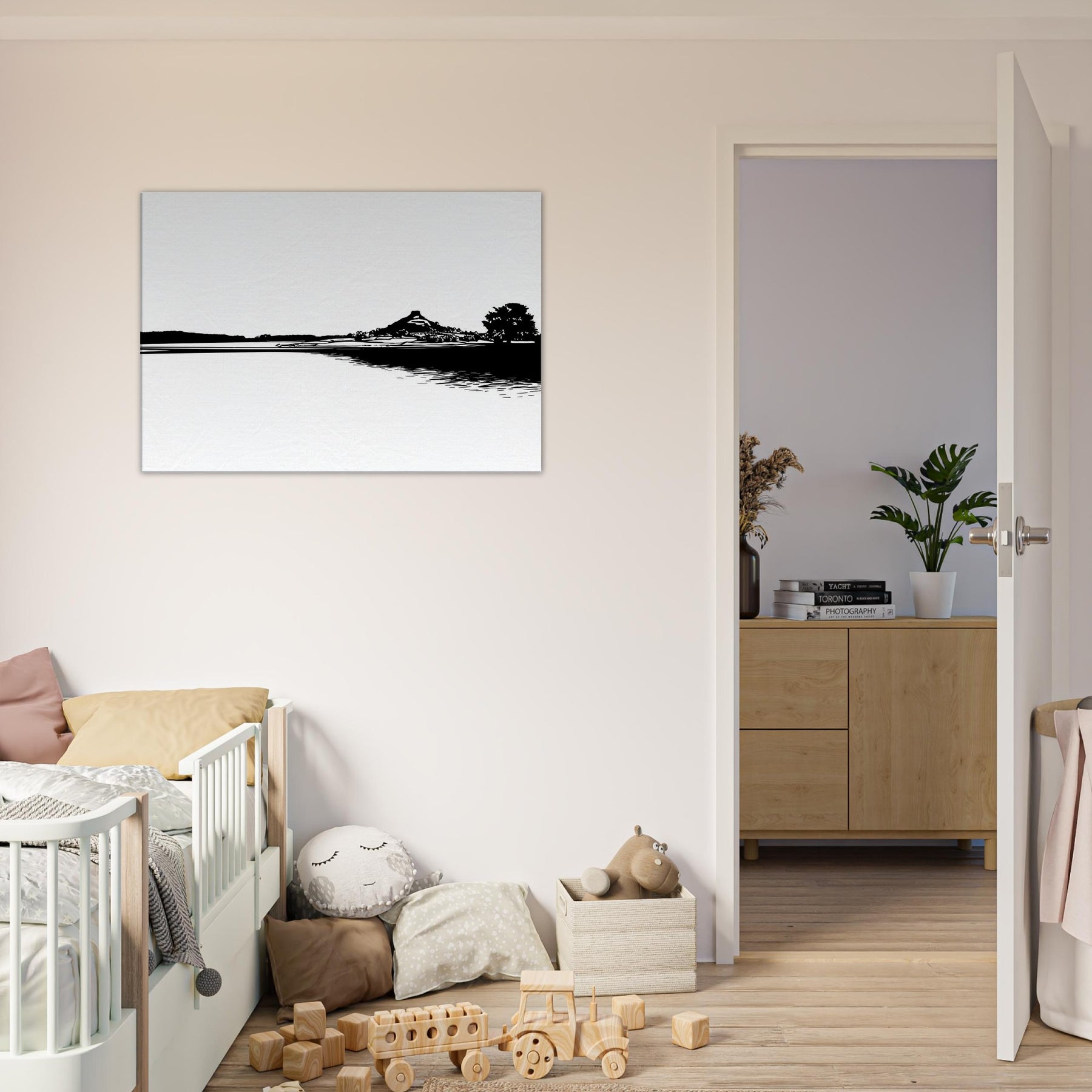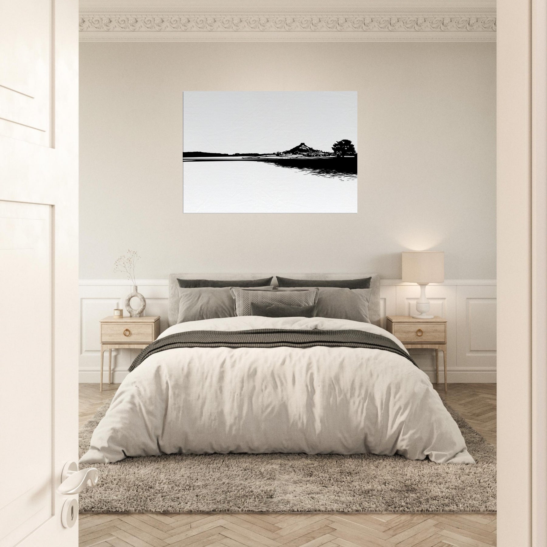 Immerse your space in the quiet geometry of a lakeside scene drawn in stark, elegant lines. This Lake line art captures the stillness of dawn, where the shore folds into water and horizon, inviting calm reflection. Perfect for modern living rooms and bedrooms, its black and white simplicity pairs with warm wood tones and soft textiles, turning everyday moments into a gentle ritual. Let the lake breathe at the center of your space, a graceful focal point that quiets the room and awakens imagination.