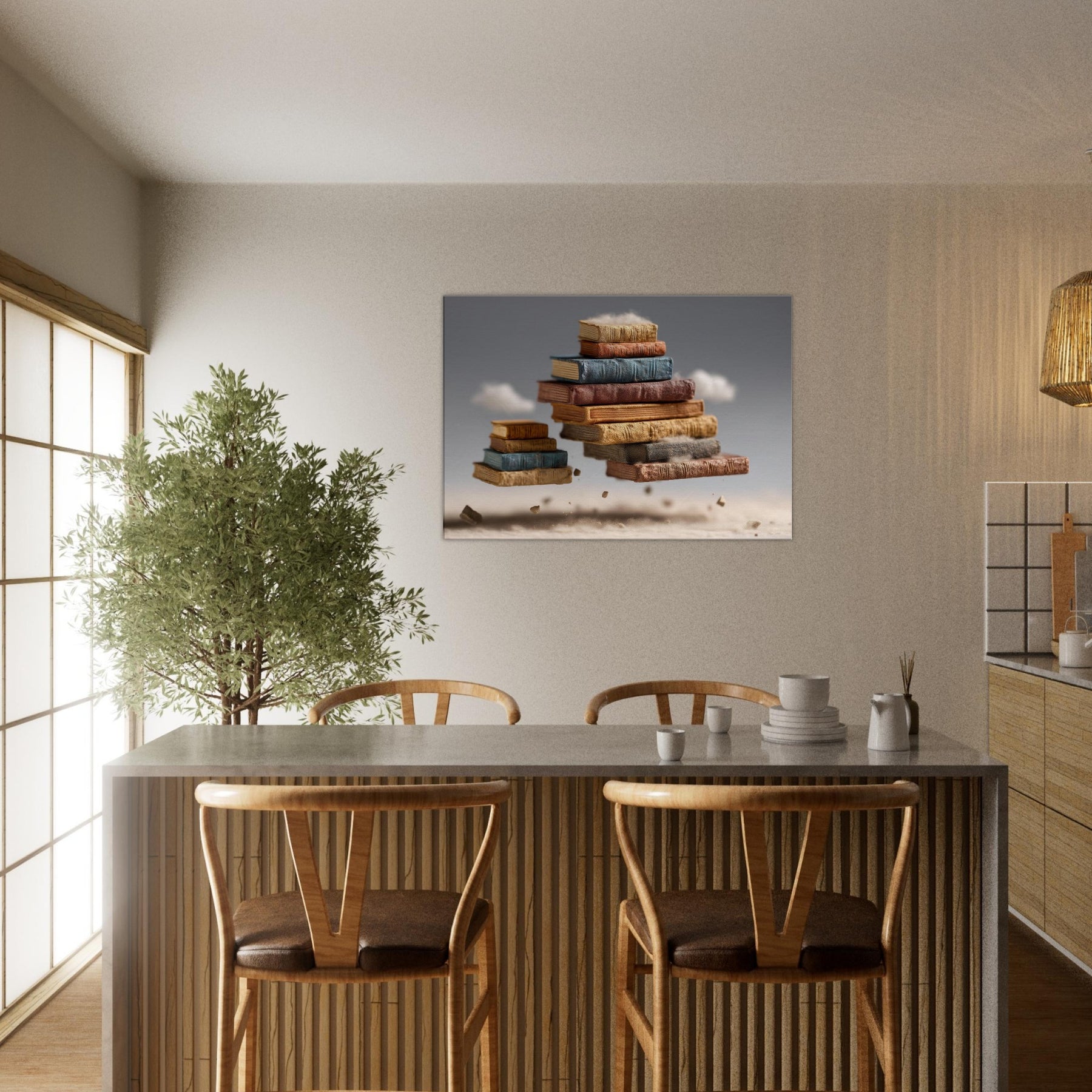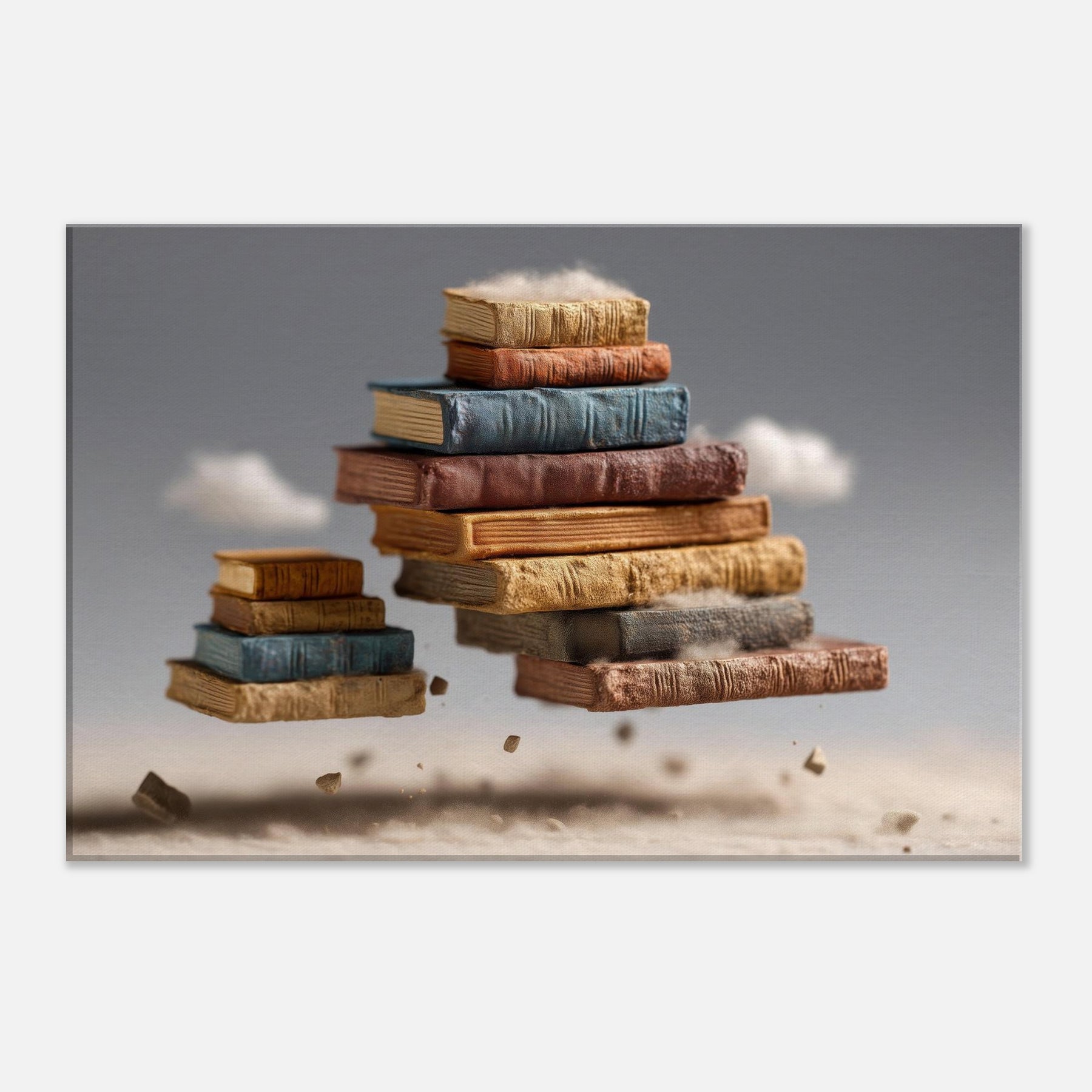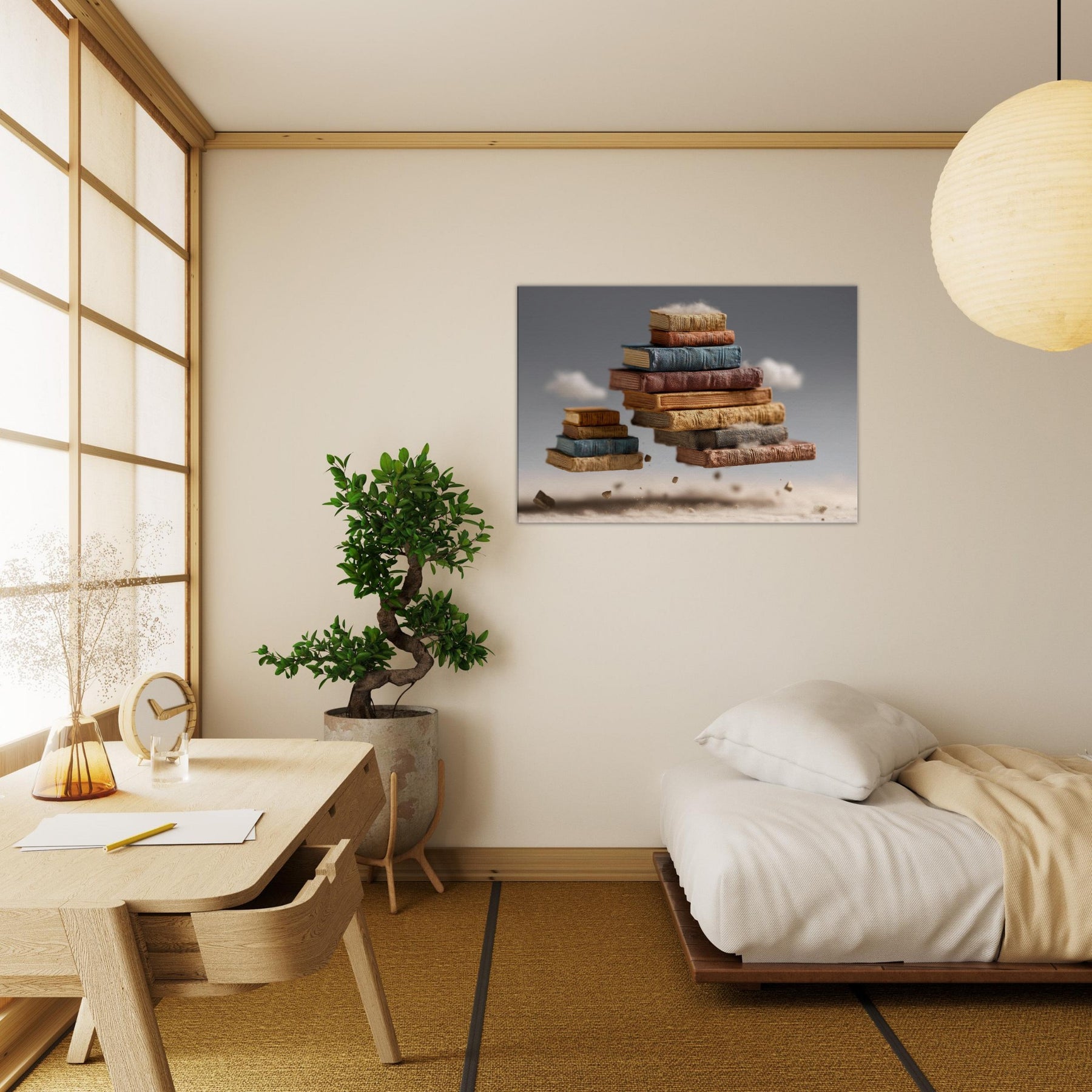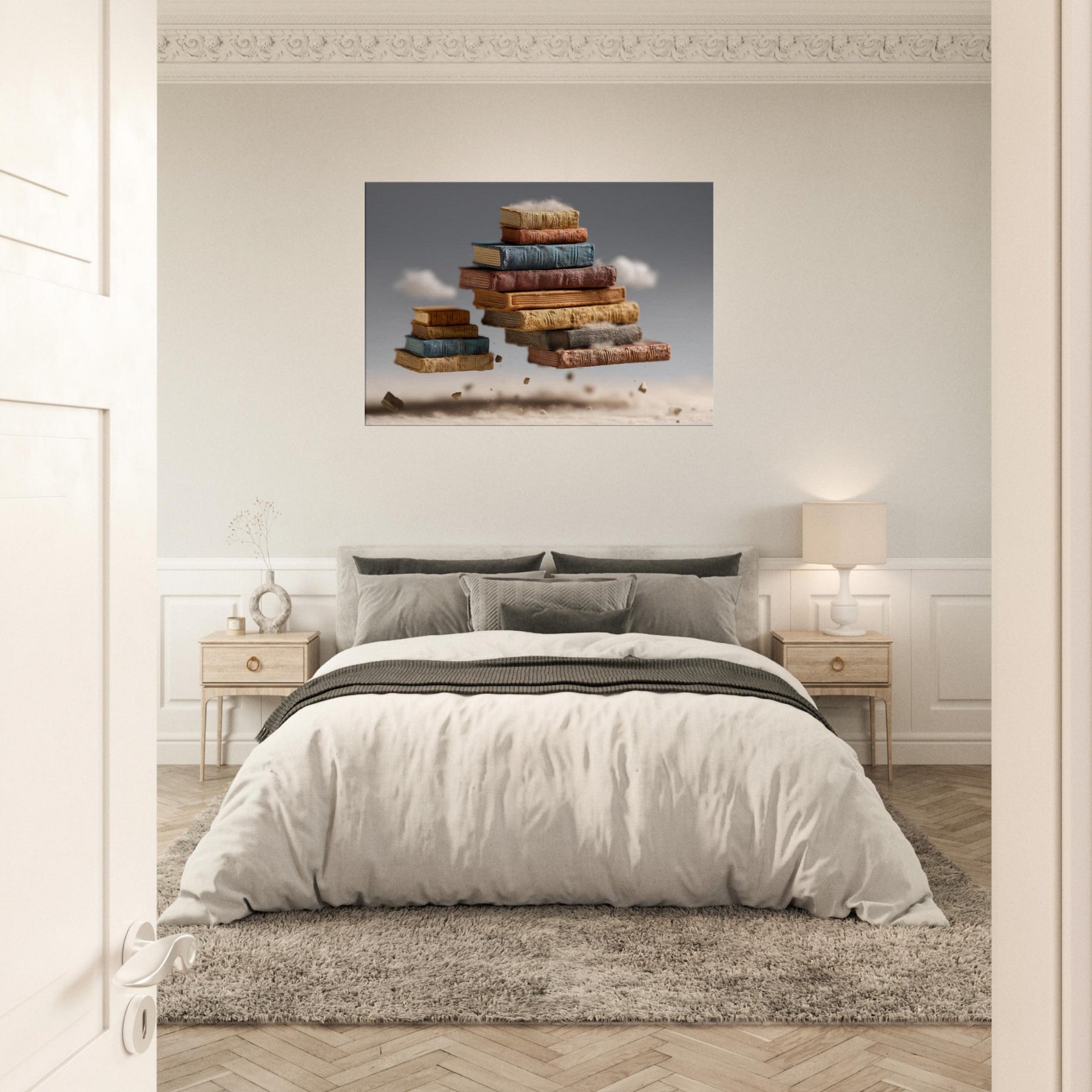 Book Stack defies gravity in a soft, dreamlike tableau, where each spine catches a sigh of color and the topmost volume wears a cloud like a crown. The scene bends ordinary space into a tender horizon, inviting quiet reflection as you step closer. This Book Stack radiates warmth, curiosity, and a hint of whimsy enriching living spaces with narrative and wonder. It pairs beautifully with a neutral lounge or a cozy study, becoming a contemplative focal point that sparks conversation without shouting.