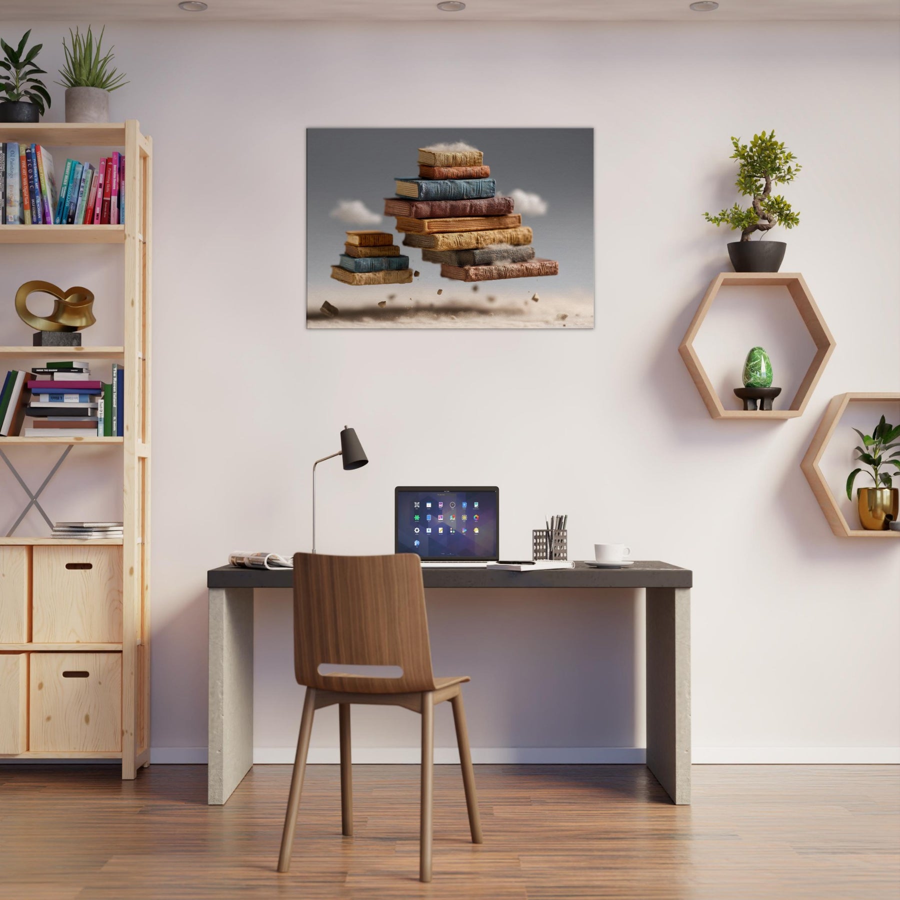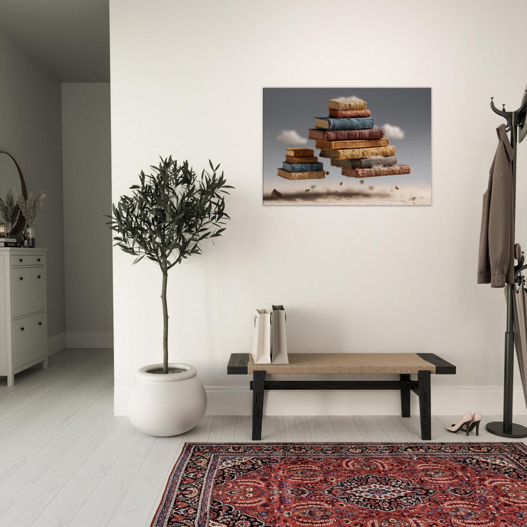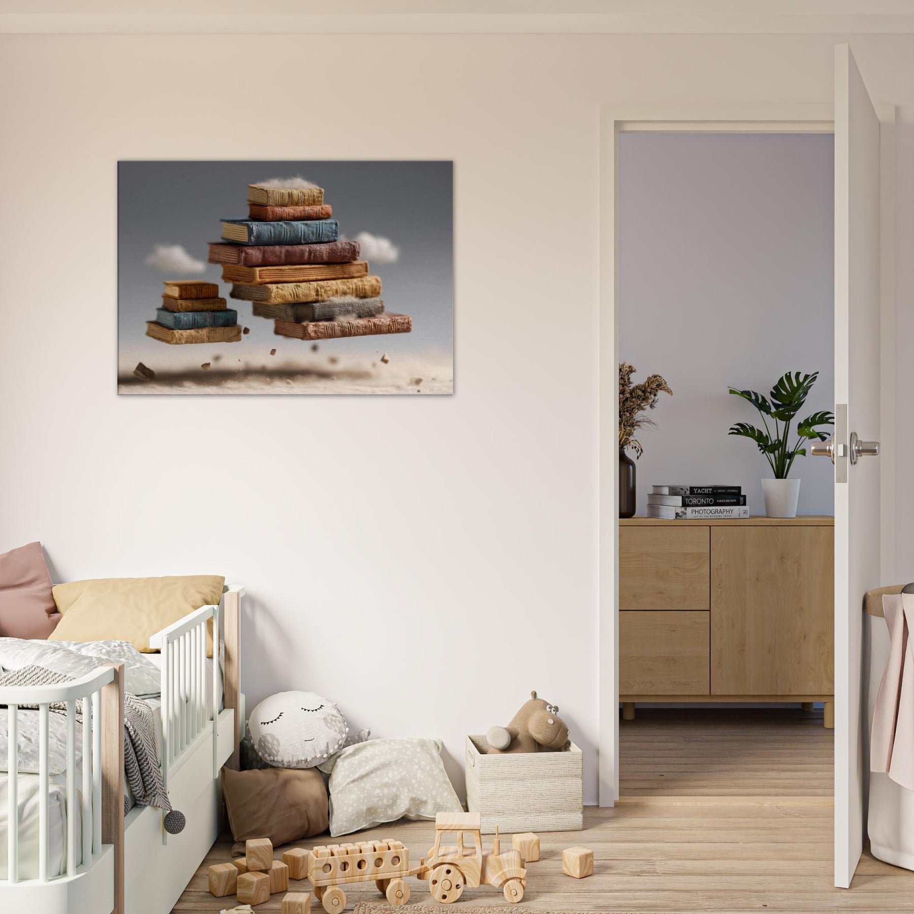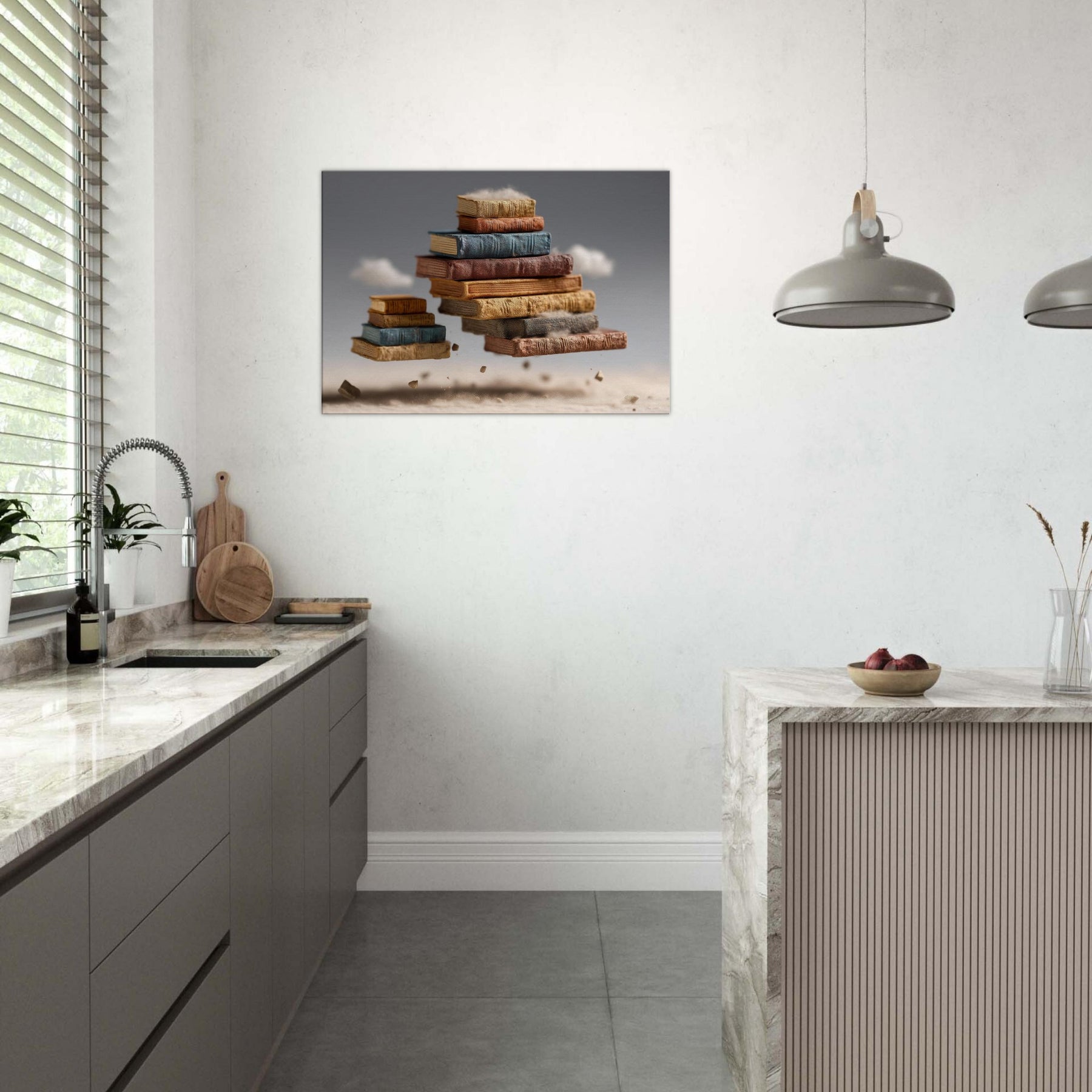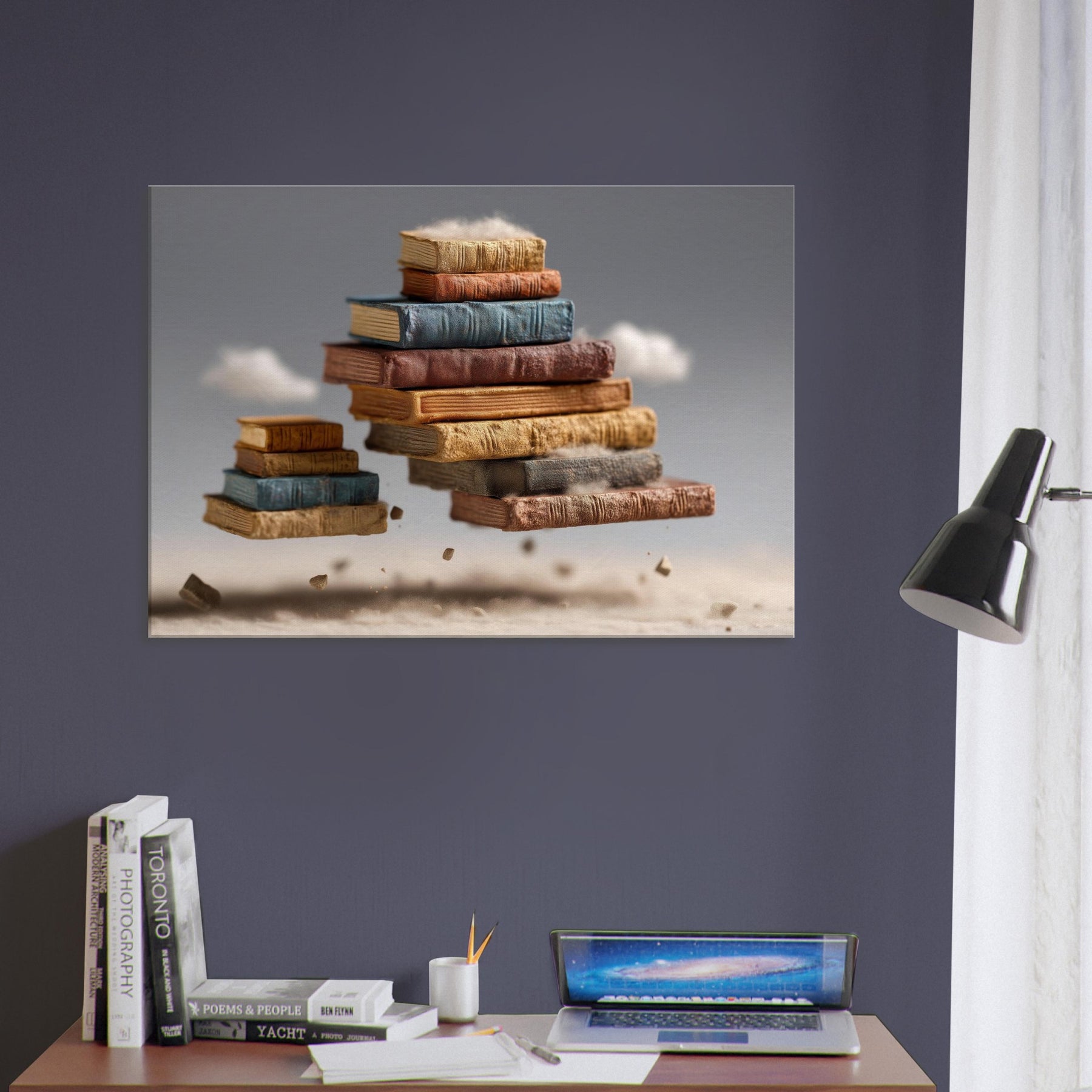 Book Stack defies gravity in a soft, dreamlike tableau, where each spine catches a sigh of color and the topmost volume wears a cloud like a crown. The scene bends ordinary space into a tender horizon, inviting quiet reflection as you step closer. This Book Stack radiates warmth, curiosity, and a hint of whimsy enriching living spaces with narrative and wonder. It pairs beautifully with a neutral lounge or a cozy study, becoming a contemplative focal point that sparks conversation without shouting.