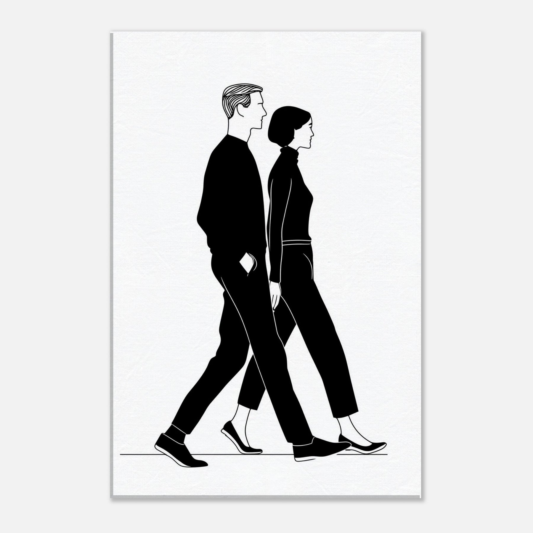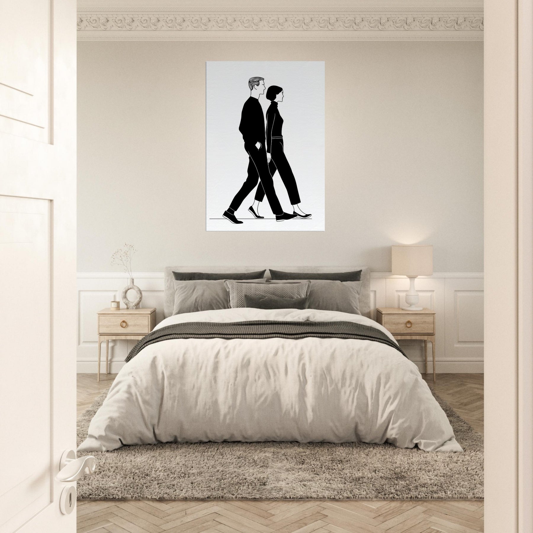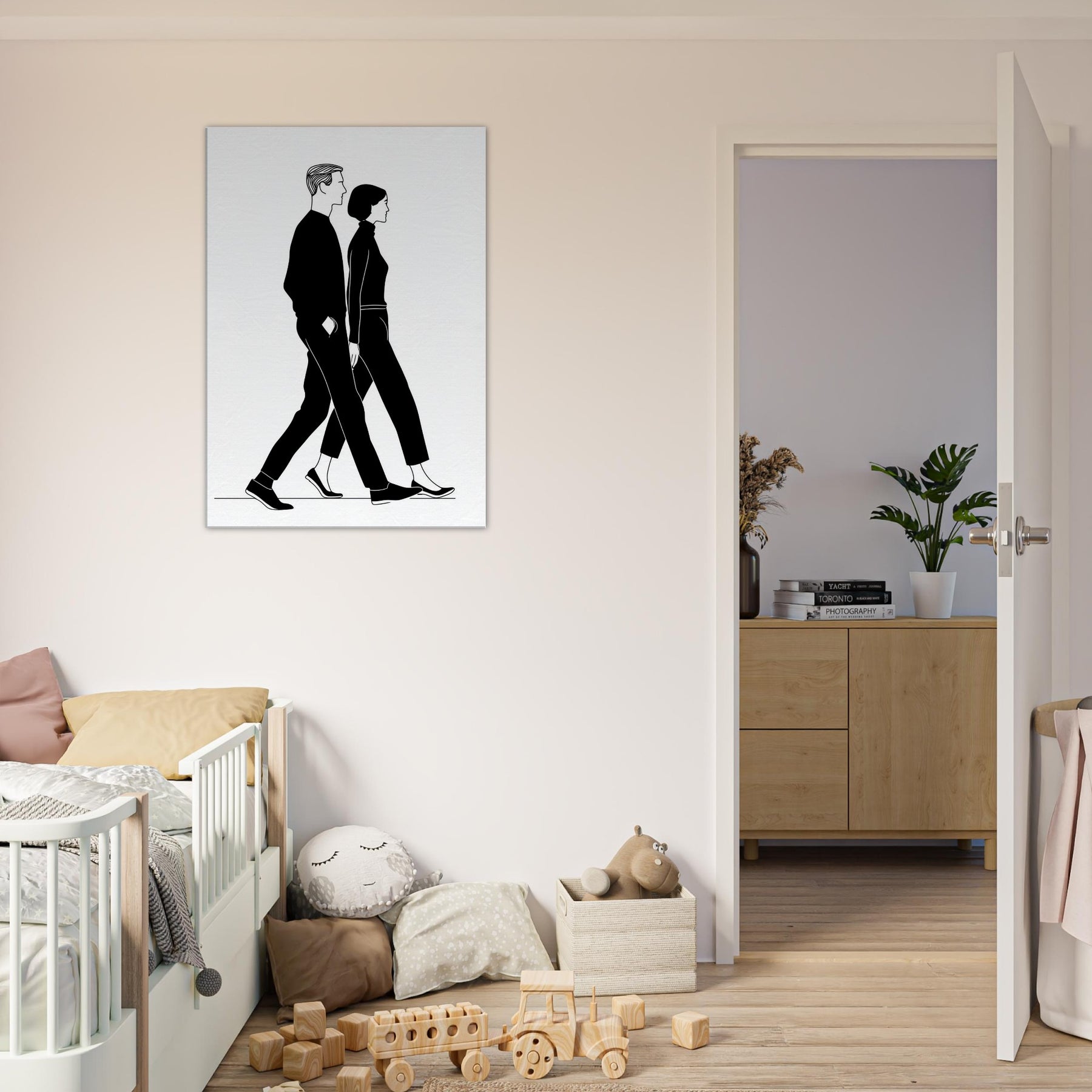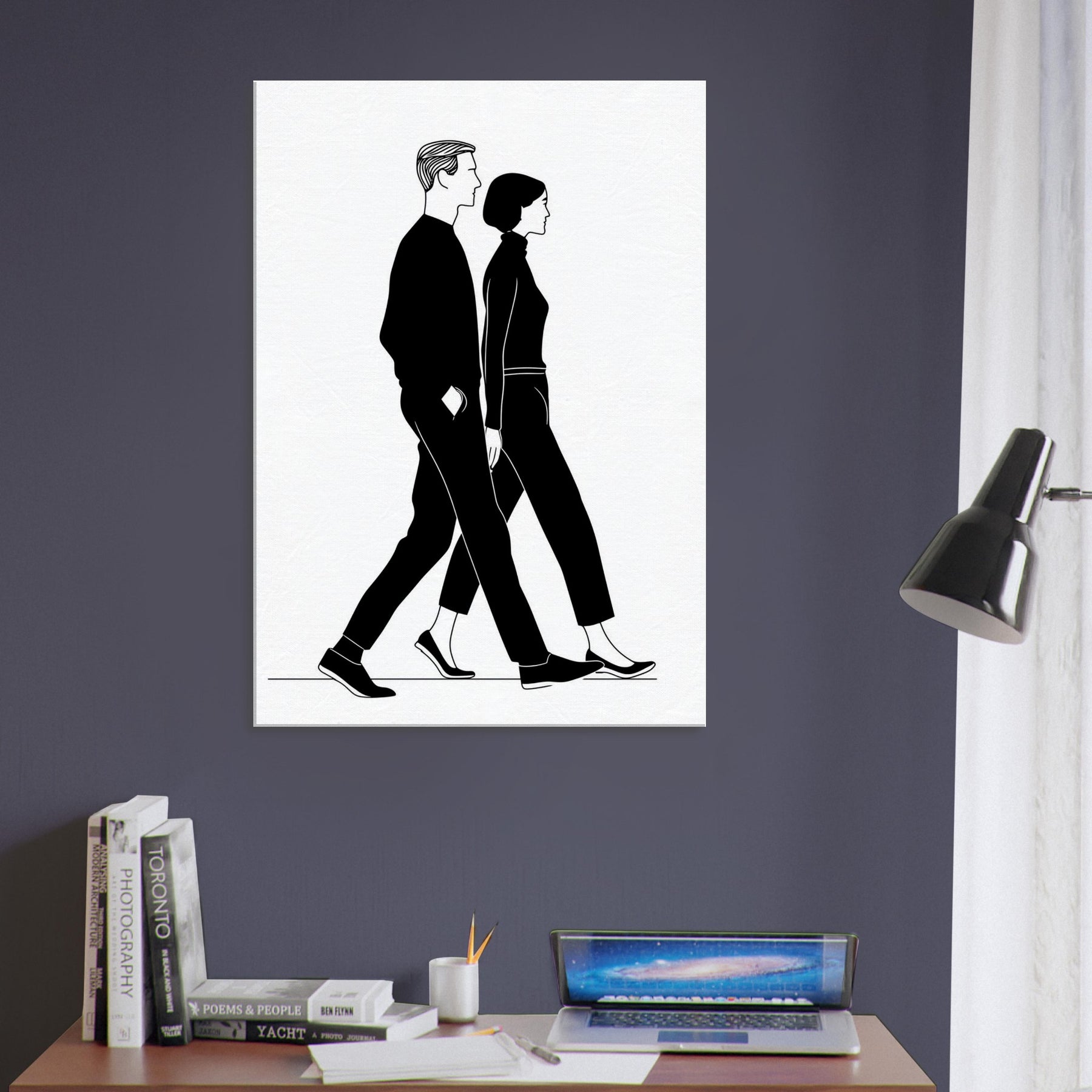 Move through space with quiet certainty in this line art tableau. The Primary Subject the couple walking unfolds in clean, confident strokes that celebrate companionship and mindful pace. Against generous negative space, their silhouettes anchor a room with calm clarity, inviting conversation, reflection, and a touch of urban poetry. Perfect for a living room or hallway, it pairs with modern furnishings to create a subtle, cinematic mood where light, texture, and memory collide in a single, elegant glance.