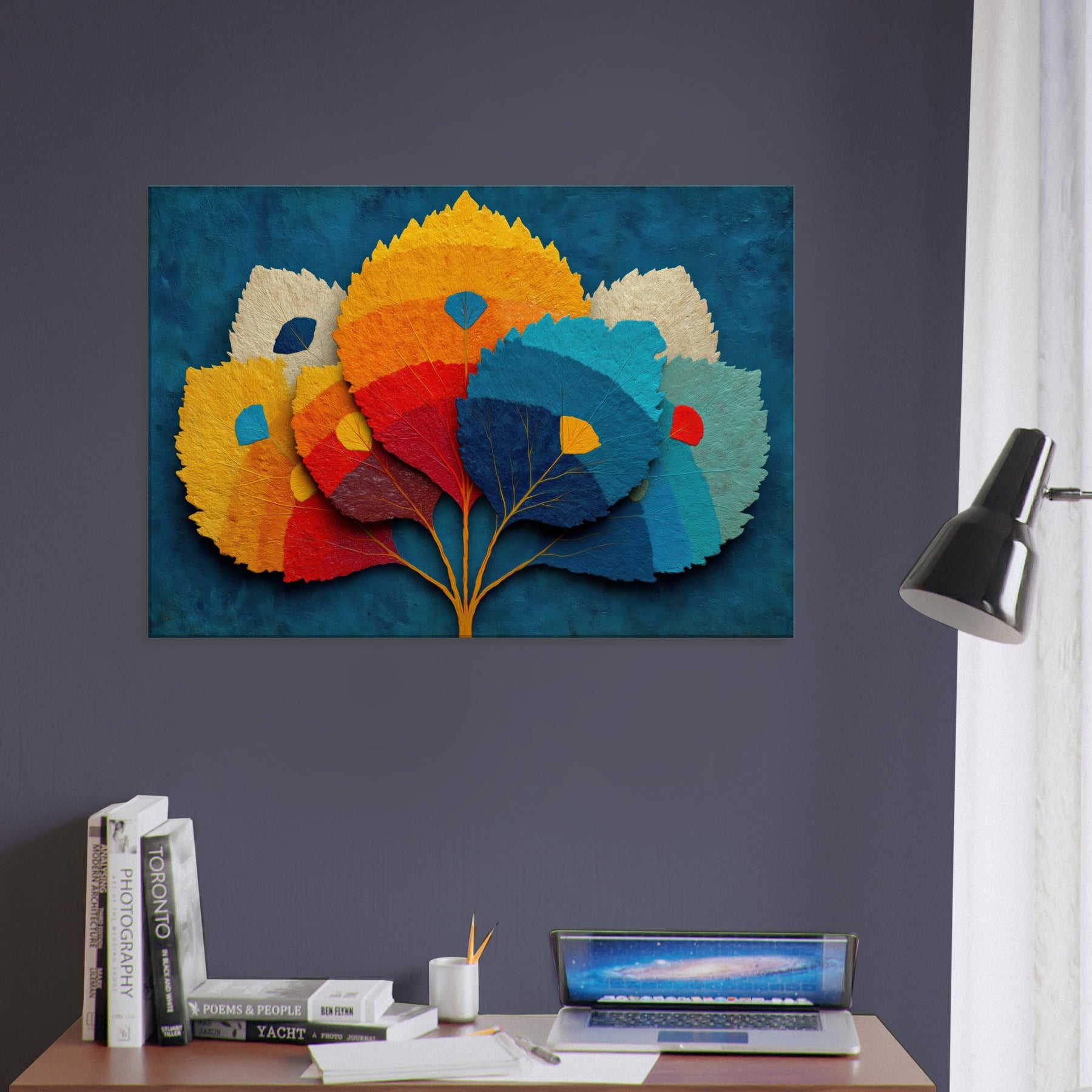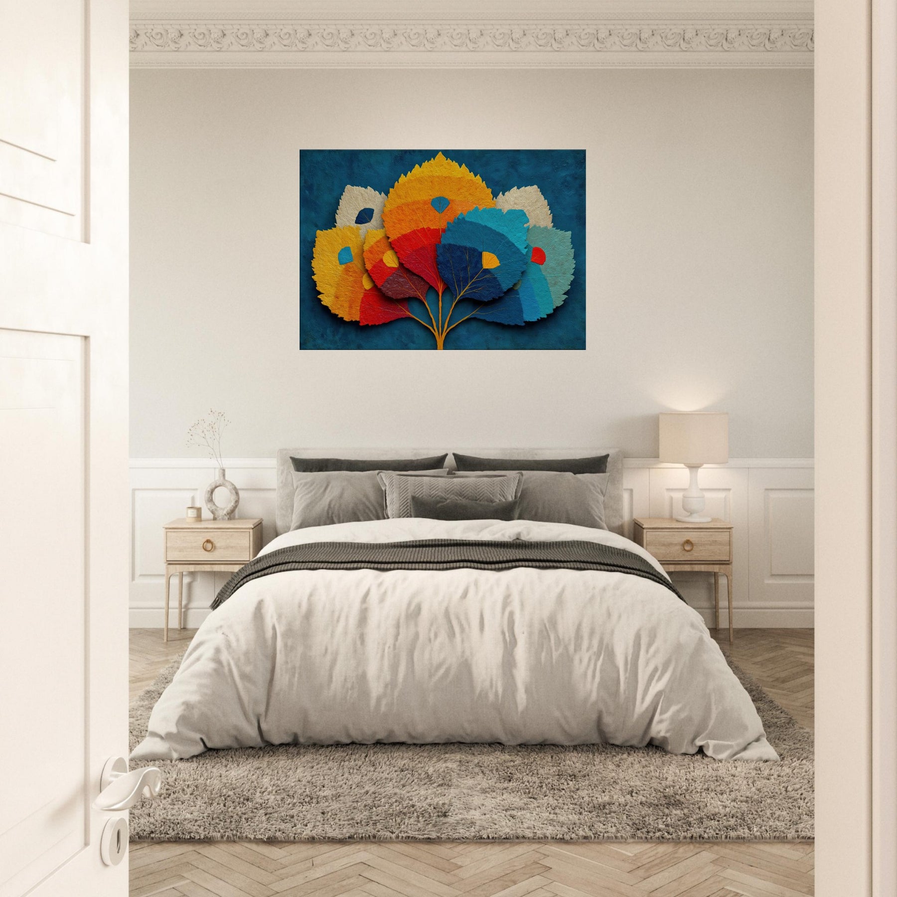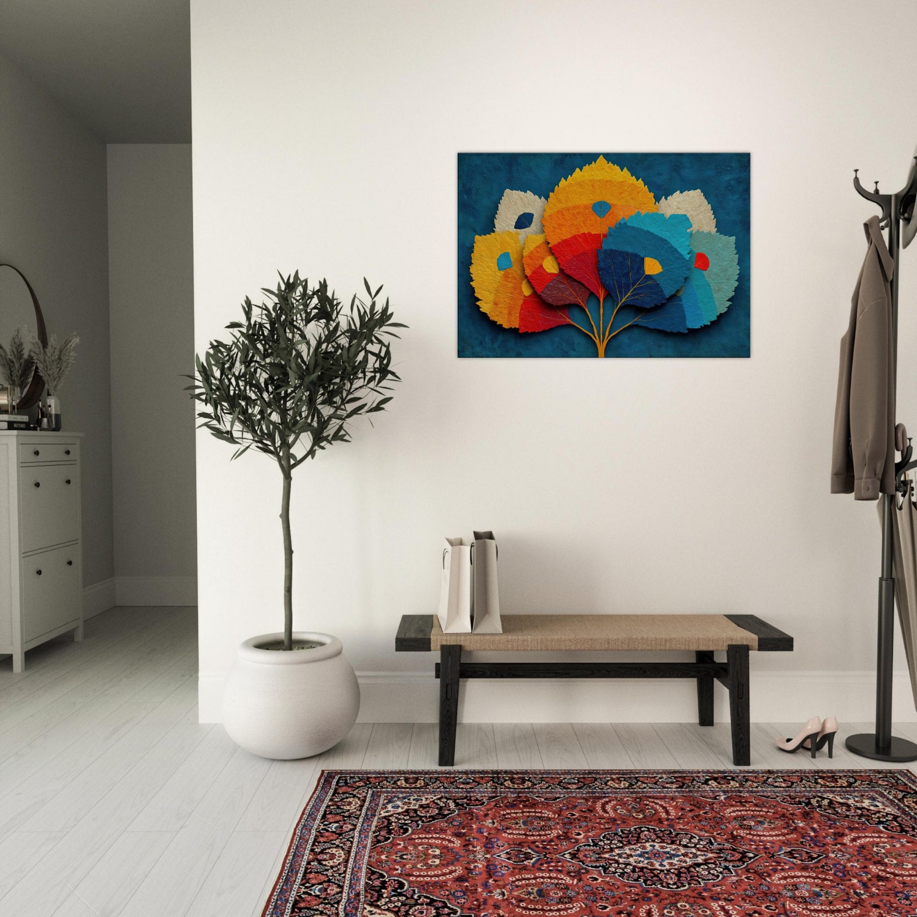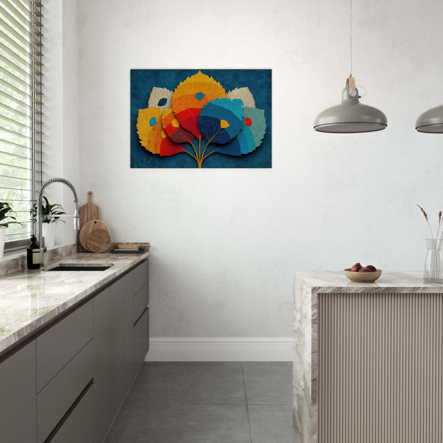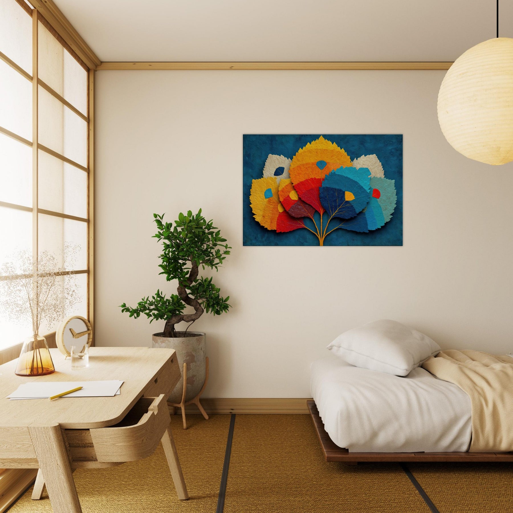 Like a breath of color blooming from a single Bodhi Leaf, this mystical wall sculpture invites calm through layered hues and lantern soft glow. The Bodhi Leaf becomes a chorus of vibrant tones amber, coral, cobalt, and teal rising from a deep blue backdrop, each vein catching light as if carrying a quiet mantra. Hang it to anchor a living room or study, where meditation meets modernity; the atmosphere softens, conversations slow, and every glance reveals a new shimmer of intention.