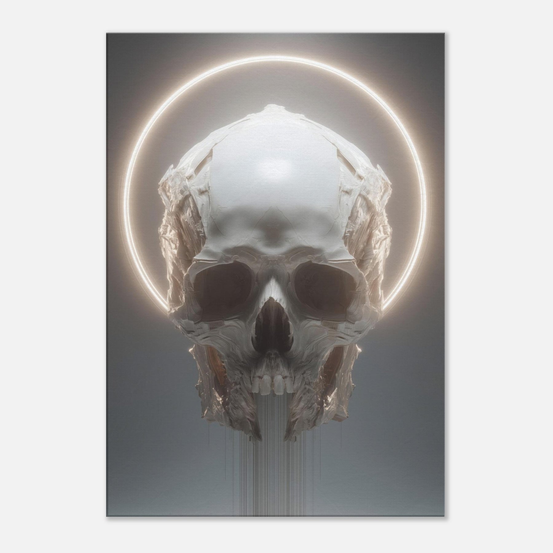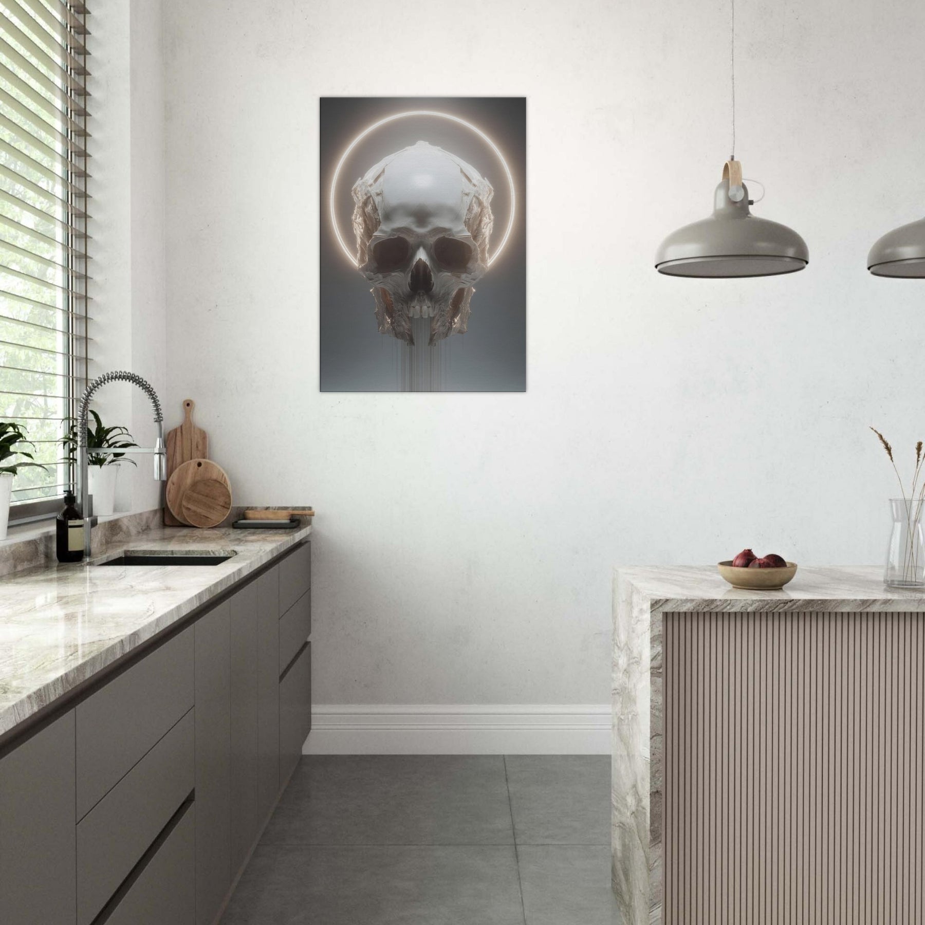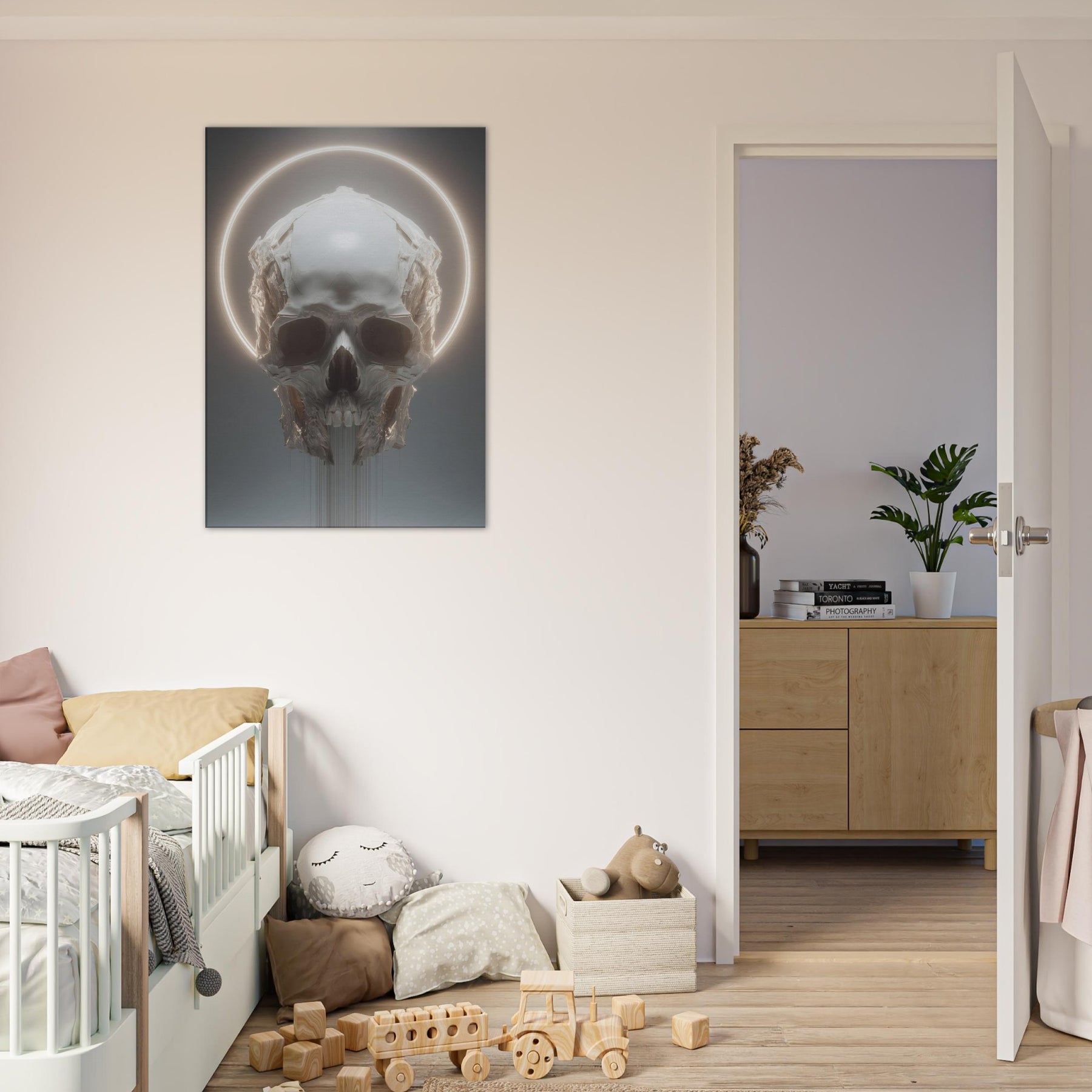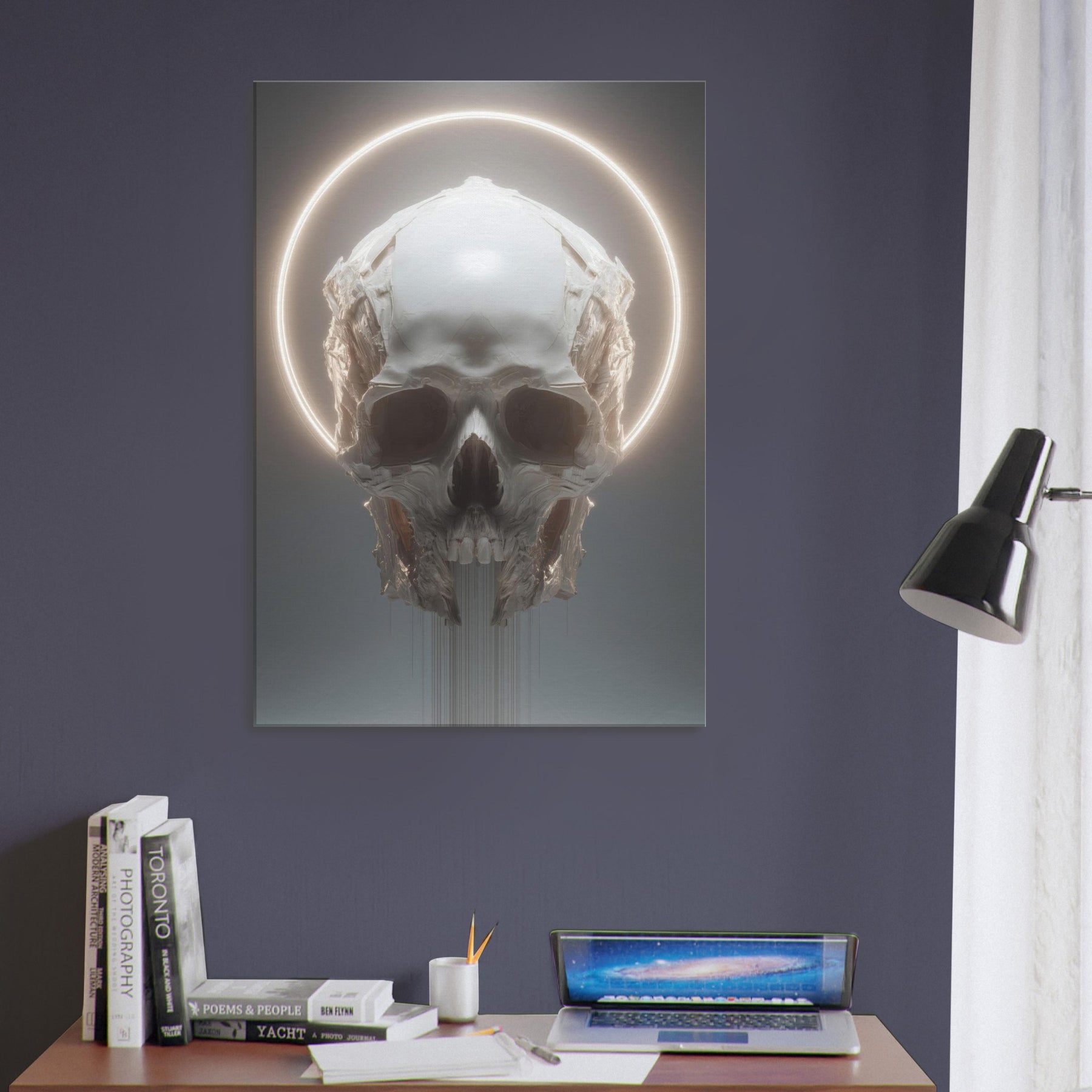 Gifted with a quiet gravity, Mystical Skull rises from a mist of memory and moonlight, bathed in a soft halo that glows like a night blooming comet. This surreal centerpiece invites contemplation rather than confrontation, turning a living room into a hushed sanctuary of wonder. The porcelain whiteness, the drifting lines, and the faint, architectural drift below the jaw create a dreamscape that feels both ancient and immediate. Hang it where you want conversation to drift, and let the atmosphere breathe with you.