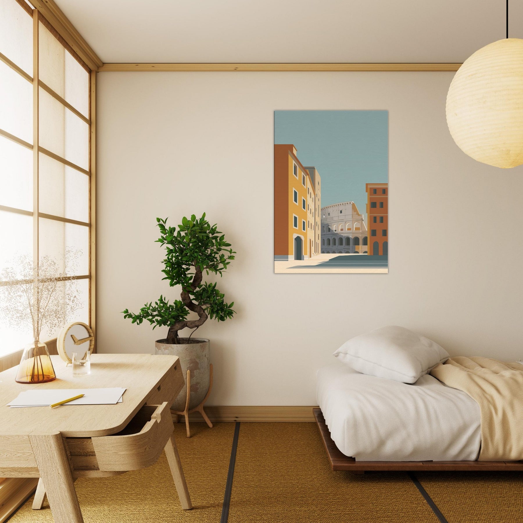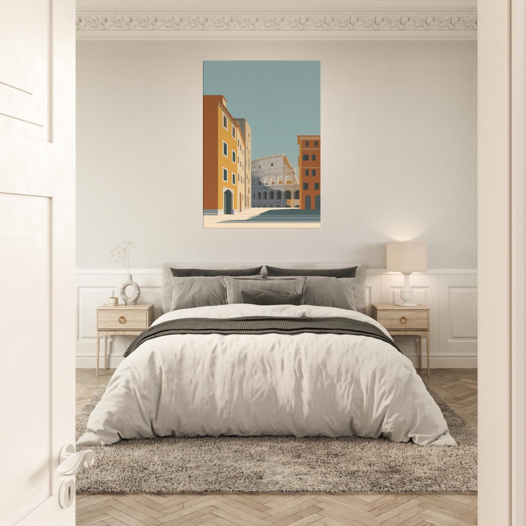 Rome unfolds in quiet, sun washed tones an elegant cityscape distilled to clean lines and soft shadows. This minimalist composition captures the timeless dialogue between ancient arches and modern light, inviting stillness into your room. The gentle balance of warm ochre facades and cool sky creates a serene focal point that expands any living space, making mornings feel brighter and evenings more contemplative. A refined reminder that history can reside softly in everyday design.
