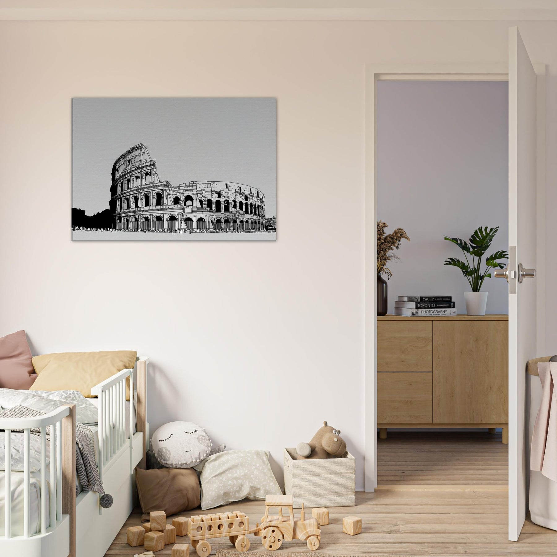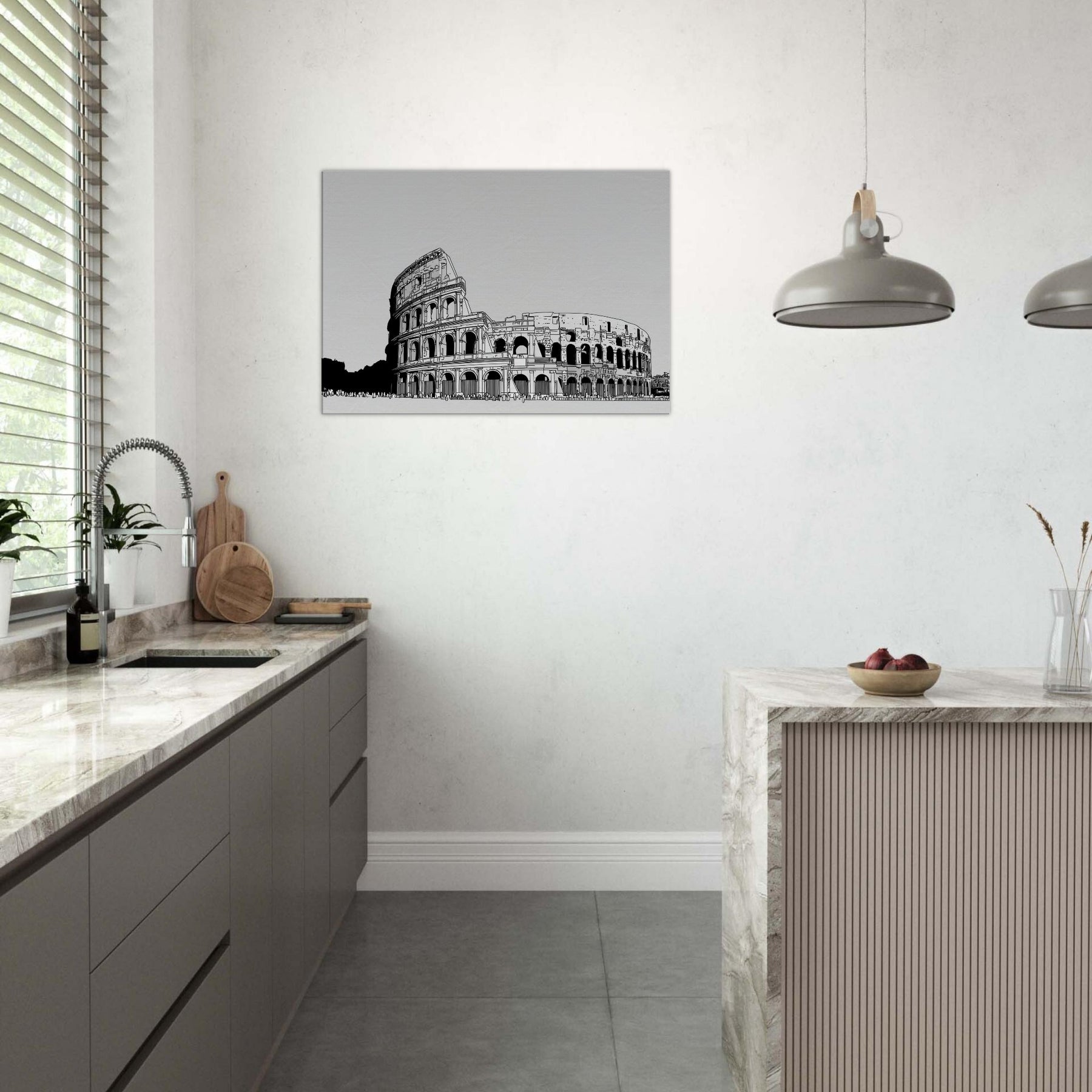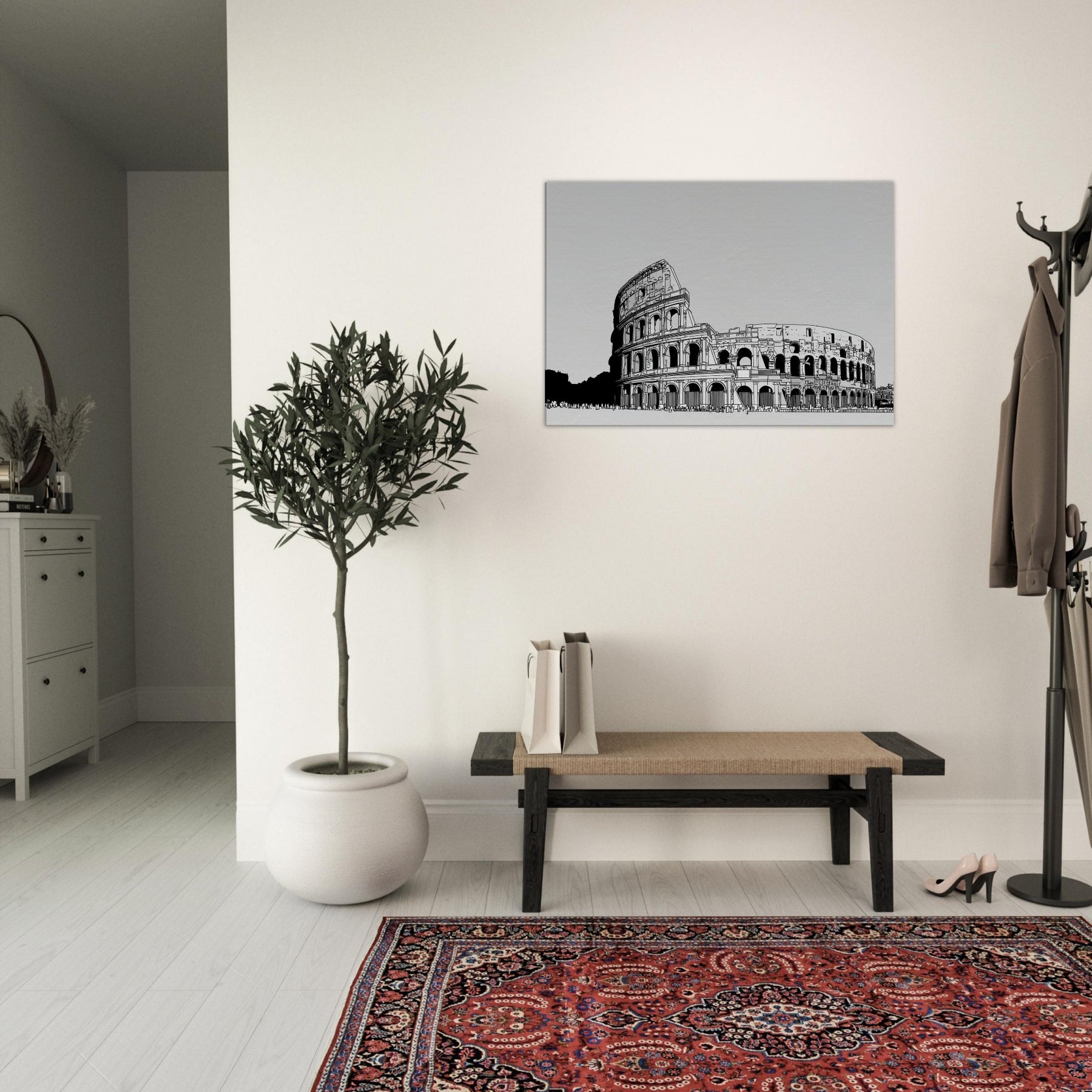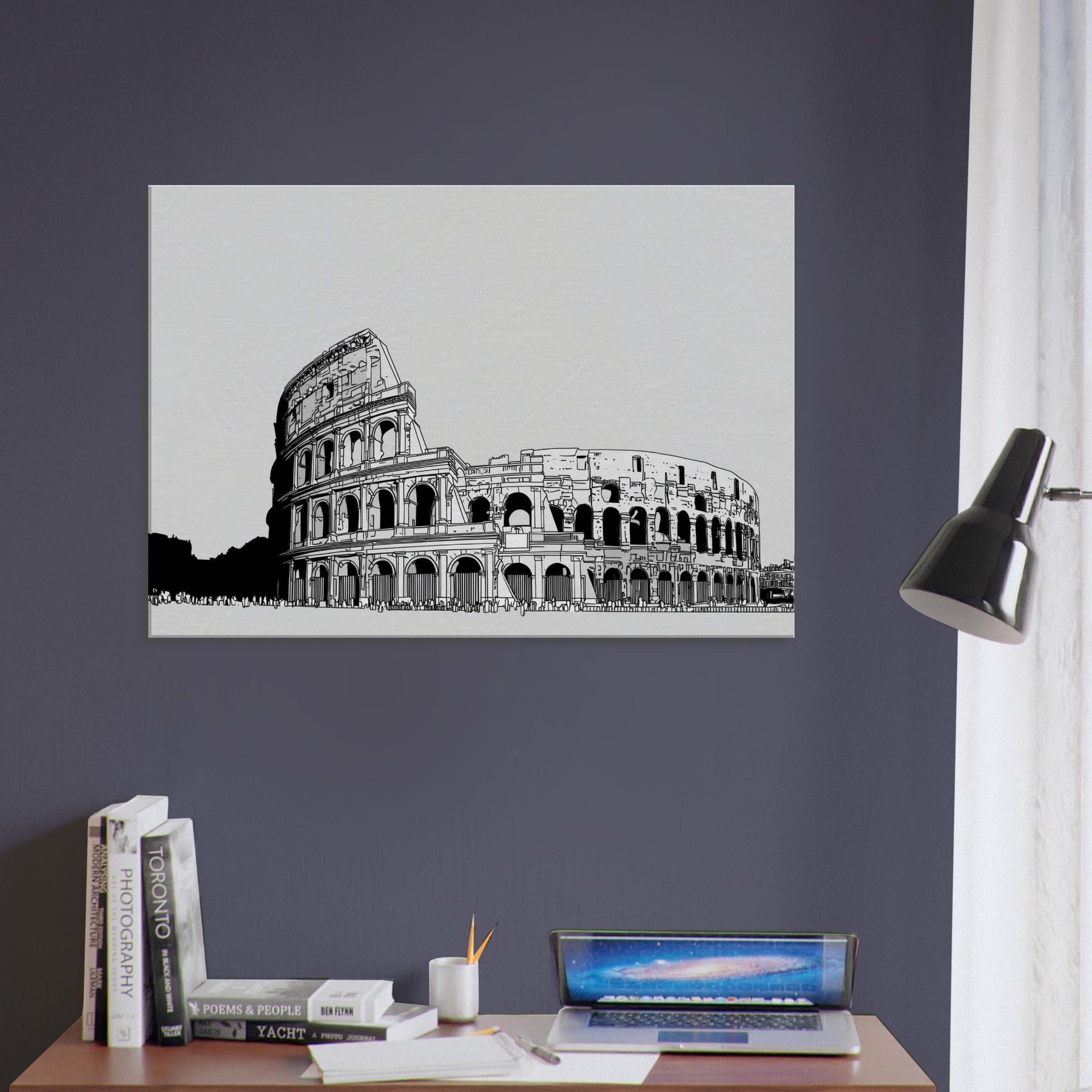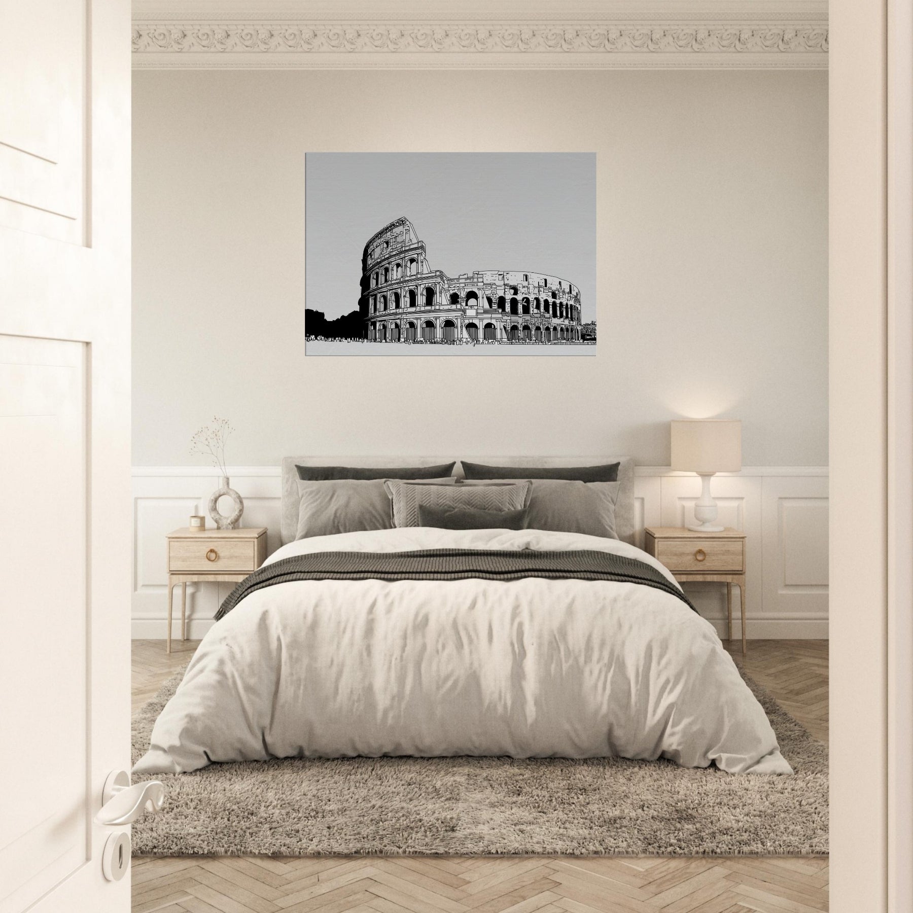 In this elegant line drawing, the Colosseum unfurls in clean, continuous curves and precise arches, inviting calm focus into any room. The monochrome ink fields carve drama from silence, with soft shadows and bold edges that shimmer as lamp light travels across the wall. Its architectural rhythm provides a subtle heartbeat to living spaces, pairing with modern furniture or classical accents. Hang it above a sofa or desk to anchor conversations, inspire travel memories, and evoke ancient Rome's timeless grandeur without overpowering the space.