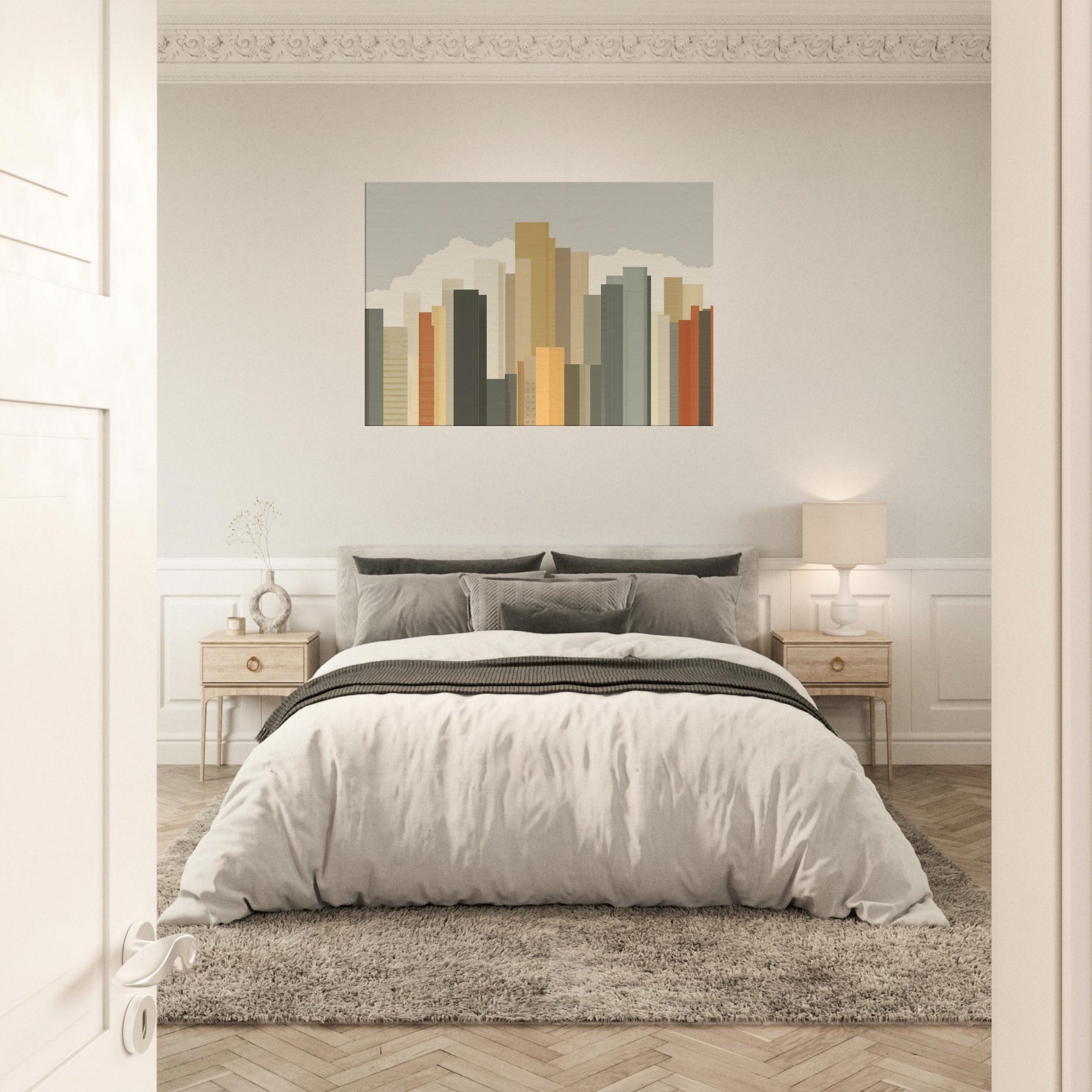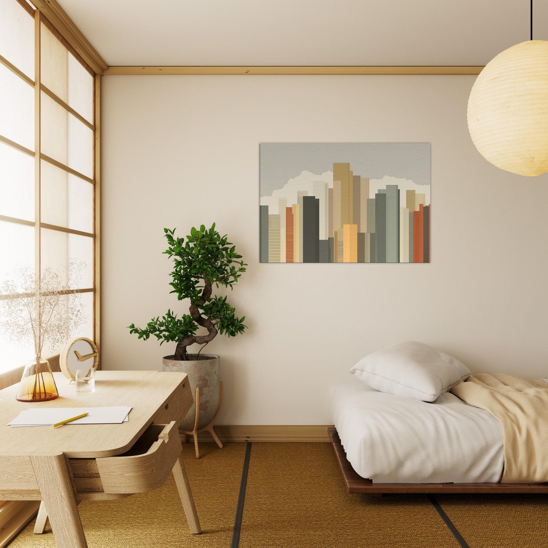 Like a breath on a quiet morning, this minimalist study of Shanghai captures the city’s rhythm in clean lines and warm tones. A row of soft terracotta and alabaster towers rises against a pale, clouded sky, inviting calm and focus into your living space. The restrained color story and precise geometry create a serene skyline you can live with, day after day. Hang it in a lounge or office to anchor conversations with quiet sophistication, reminding you that urban energy can feel effortless.