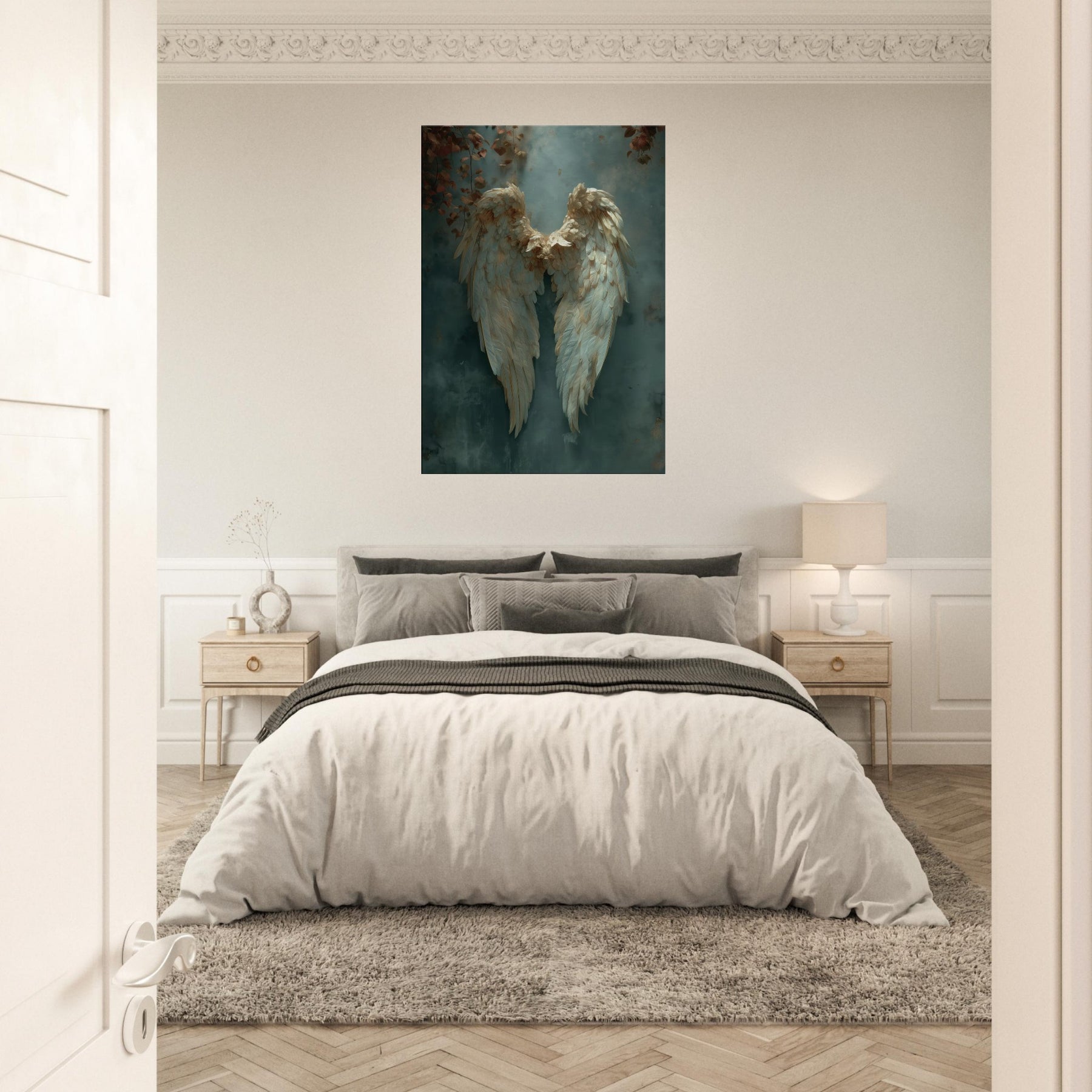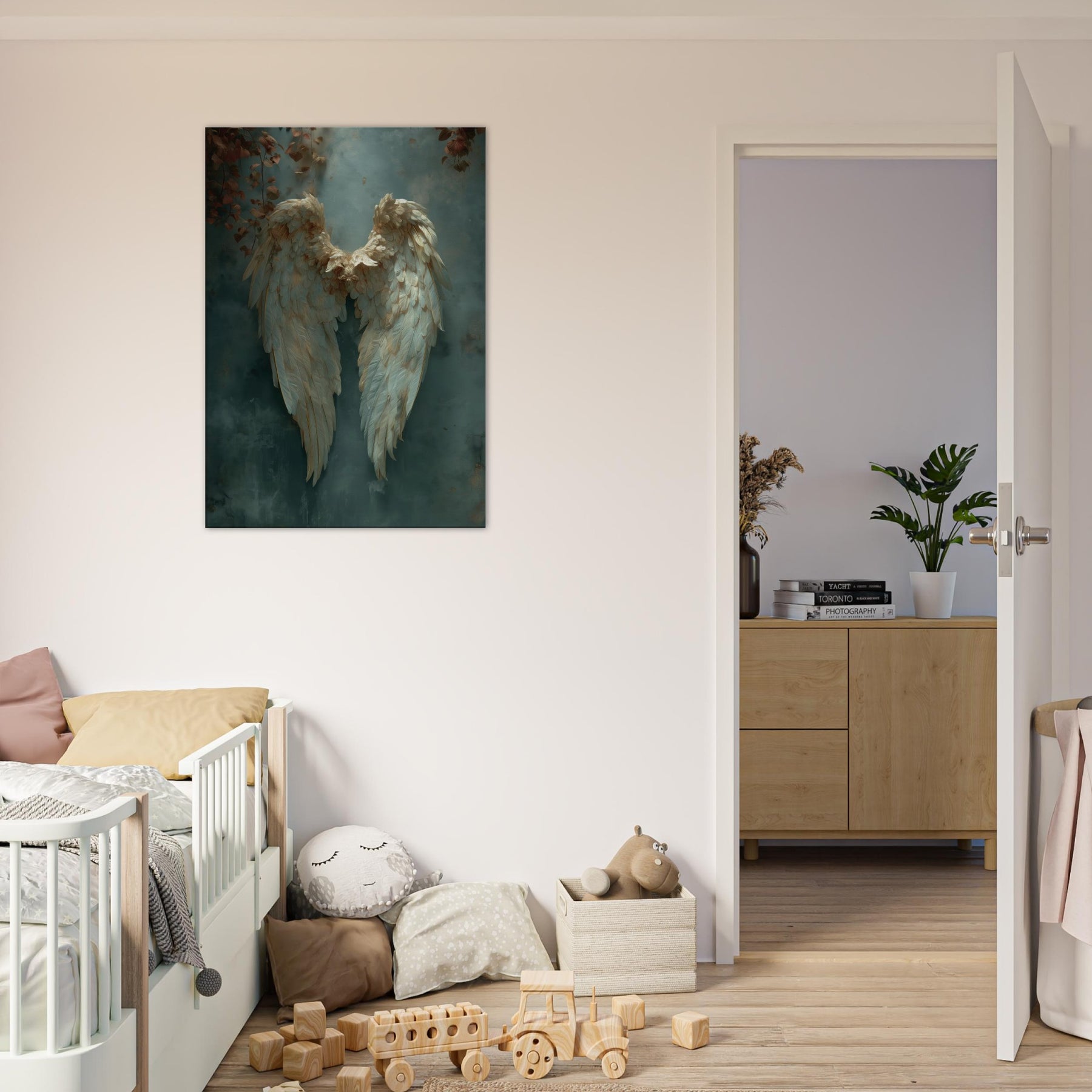 Let the room drift into a dream where light and silence conspire. This piece centers the Cherub (Wings Only) in a suspended hush, its layered plumage unfolding like a cloud made of dawn. Surreal, misted air cradles the wings, inviting reflection and calm. Perfect above a mantel or in a quiet corner, it softens textures with creamy tones and a touch of chiaroscuro, turning everyday space into a sanctuary of wonder where memory and mystery mingle with every gaze.
