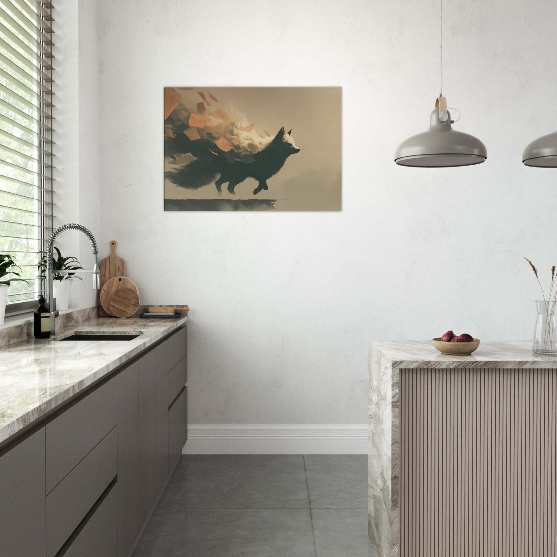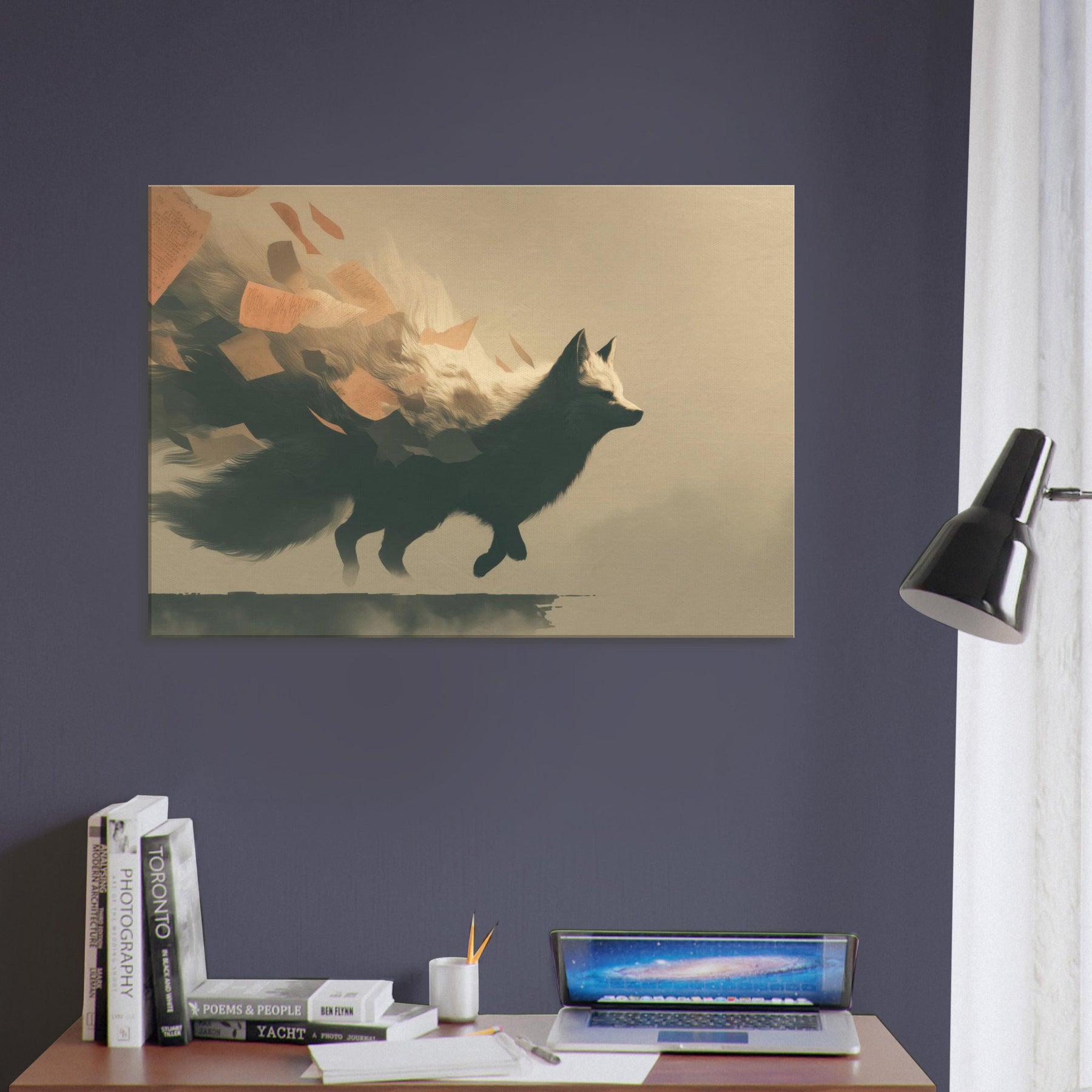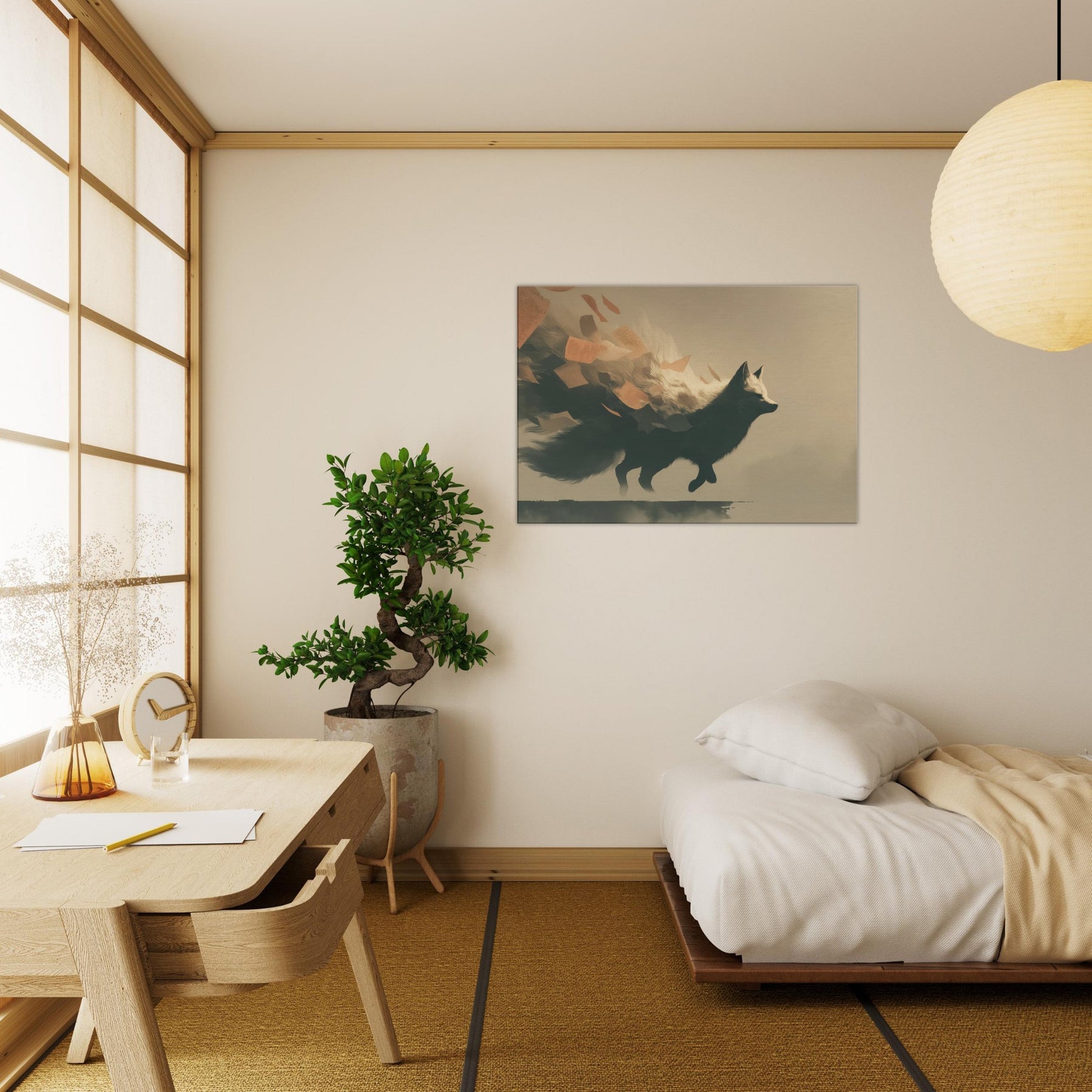 Let the Kitsune's shadow glide through your room as if a dream had ancestors. This surreal composition channels moonlit forests and wind swept cliffs, where the Japanese Fox Spirit with Multiple Tails unfurls luminous fur and limbs with quiet grace. The scene breathes a whispering air of mystery, inviting slow evenings and thoughtful conversation. Hang it where light softens, and watch the tails trail like memory across walls an elegant reminder that myth can feel both intimate and empowering in daily life.
