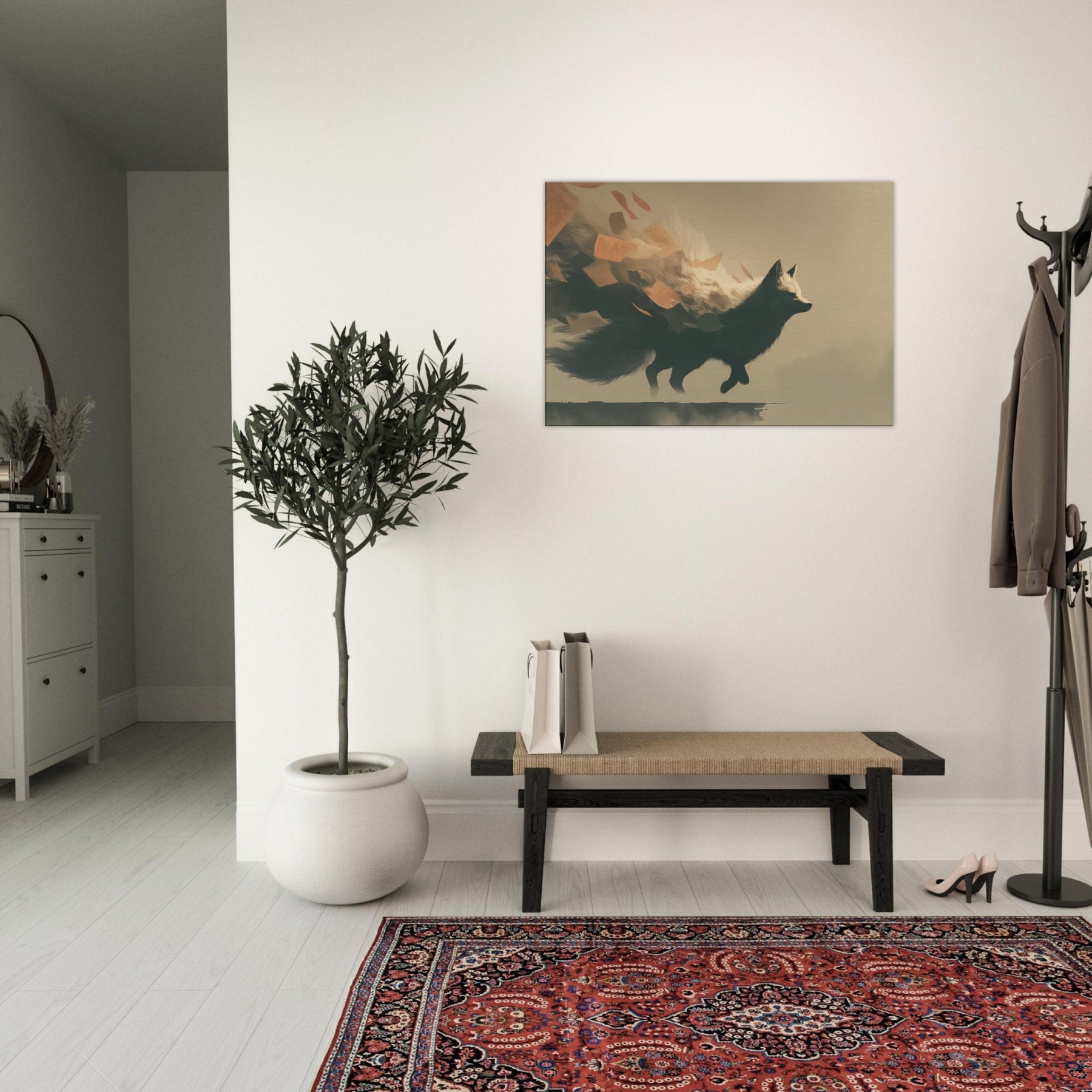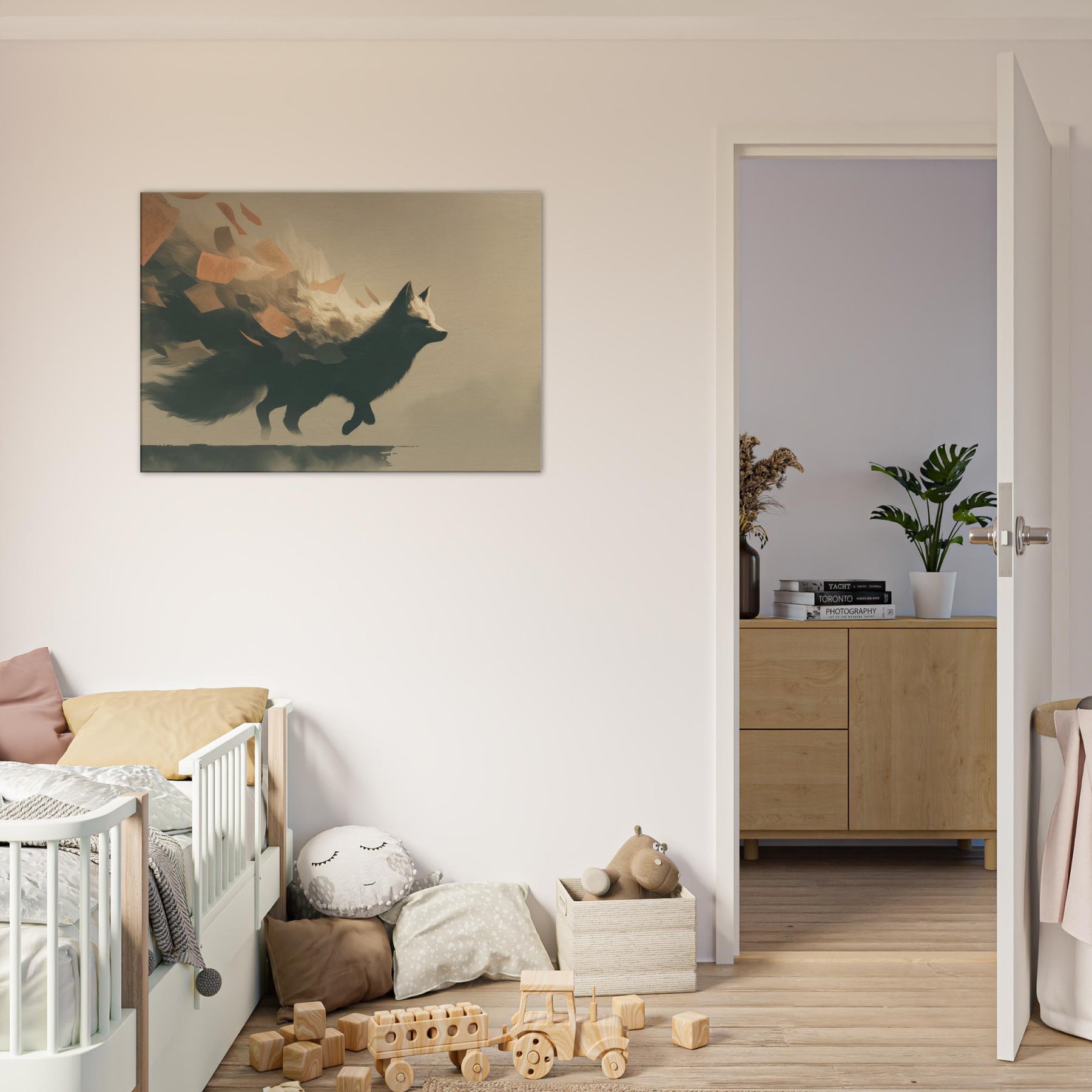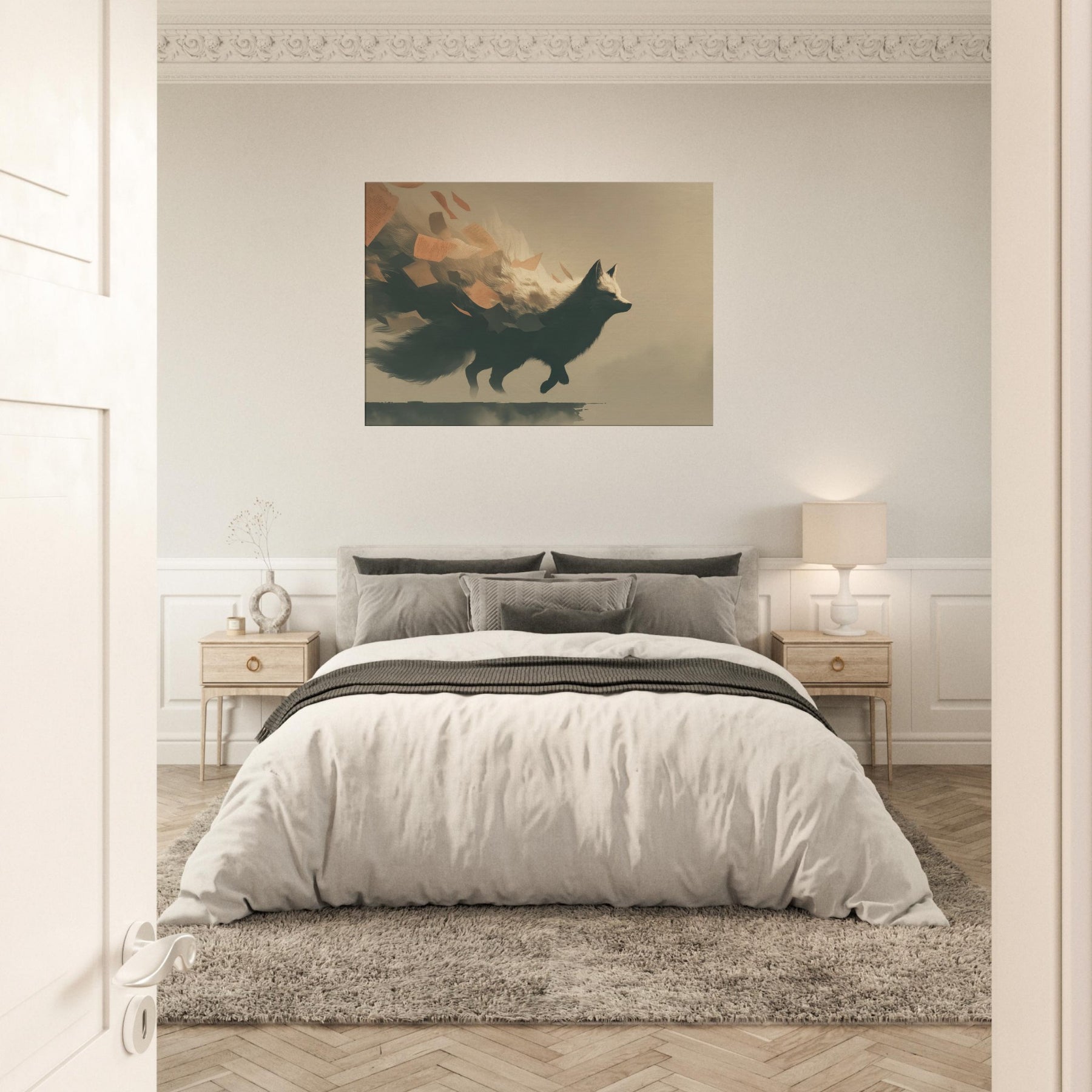 Let the Kitsune's shadow glide through your room as if a dream had ancestors. This surreal composition channels moonlit forests and wind swept cliffs, where the Japanese Fox Spirit with Multiple Tails unfurls luminous fur and limbs with quiet grace. The scene breathes a whispering air of mystery, inviting slow evenings and thoughtful conversation. Hang it where light softens, and watch the tails trail like memory across walls an elegant reminder that myth can feel both intimate and empowering in daily life.