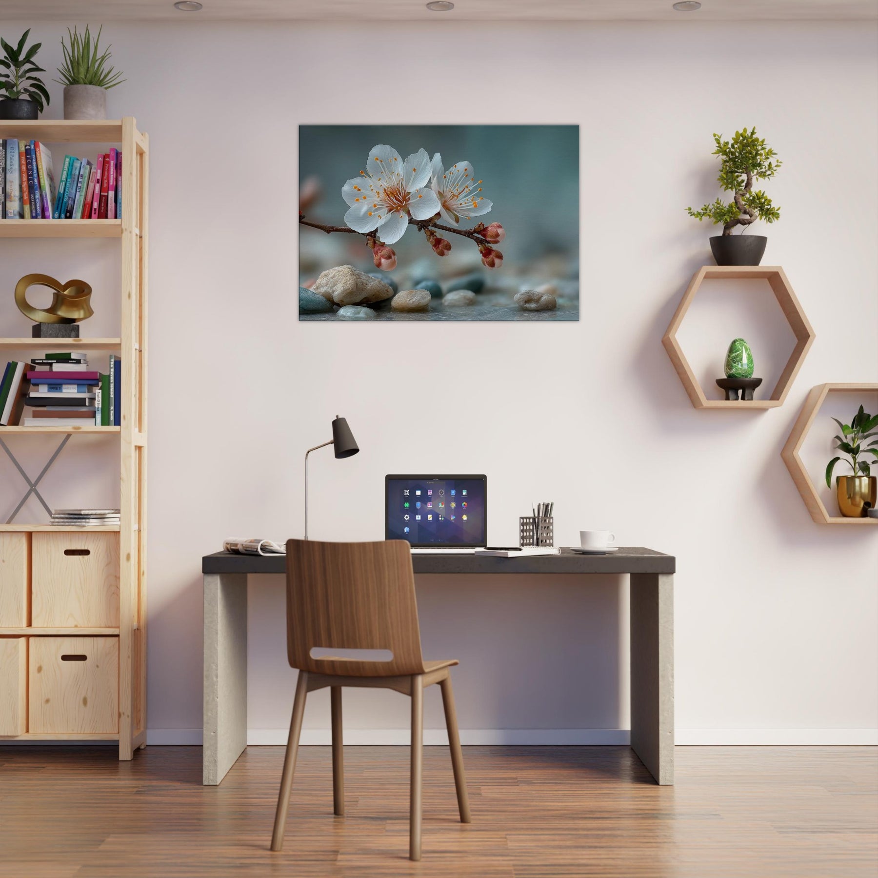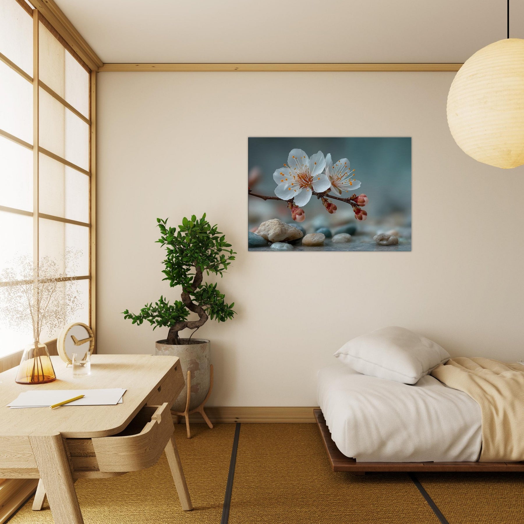 Plum Blossom drifts into a dreamscape, where pale petals catch the light and the branch seems to suspend time. This image invites quiet contemplation as if a morning breeze braided memory with color. The Plum Blossom glows against a misty backdrop, turning a simple branch into a doorway to serenity. Hang it in a living room or study to soften blue gray walls, awaken tactile calm, and invite nature’s poetry to settle into everyday life with every glance.