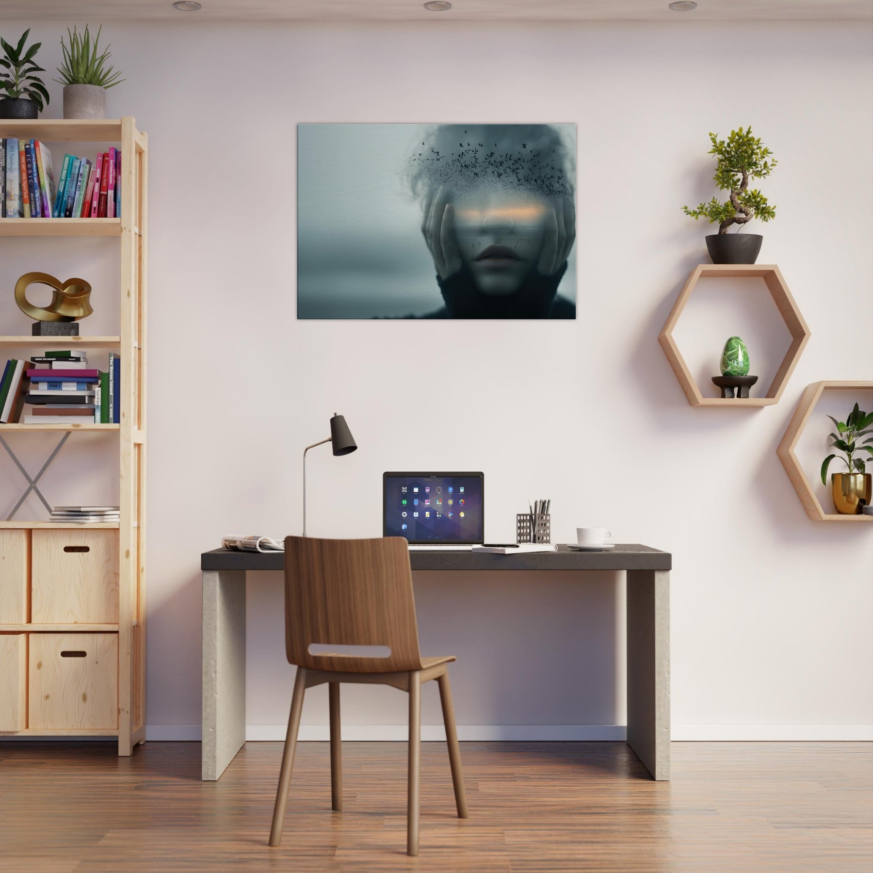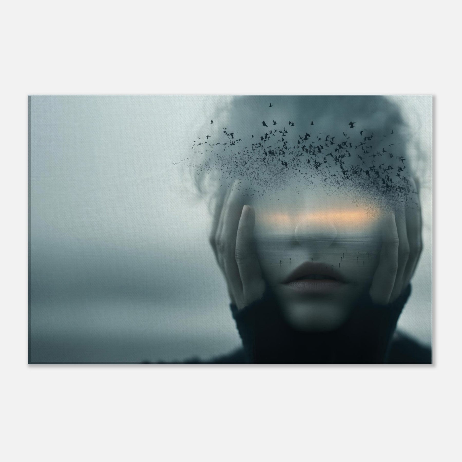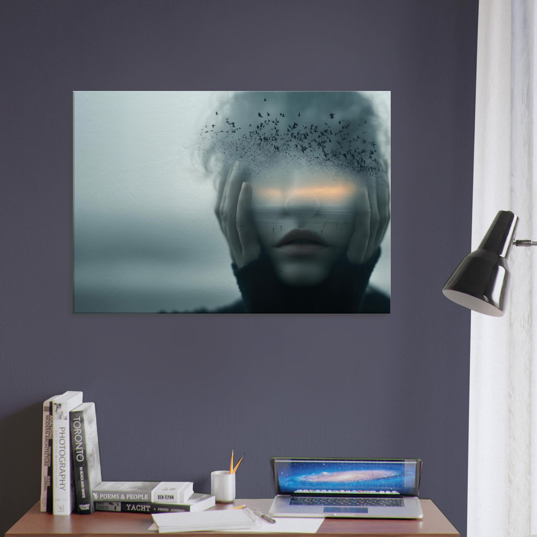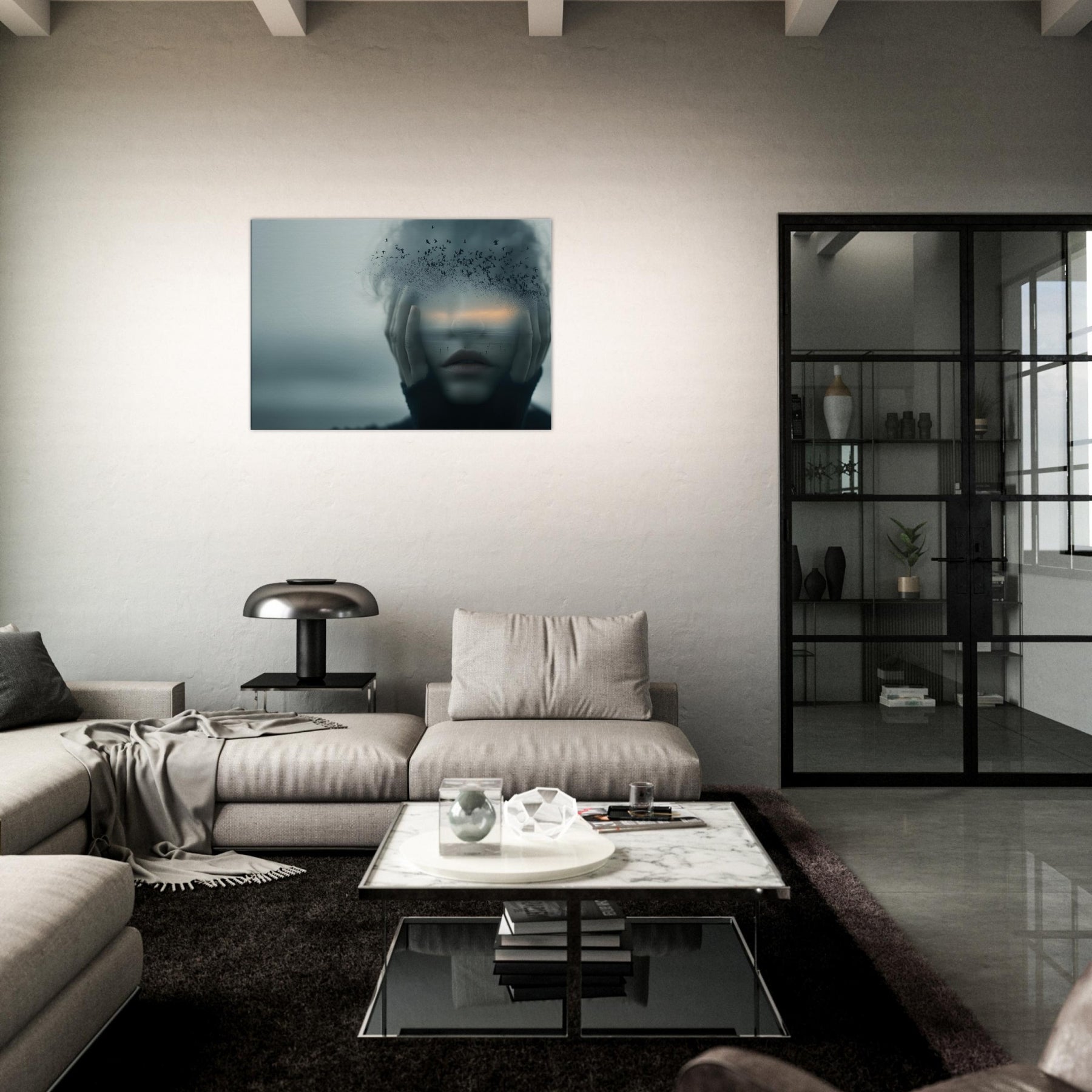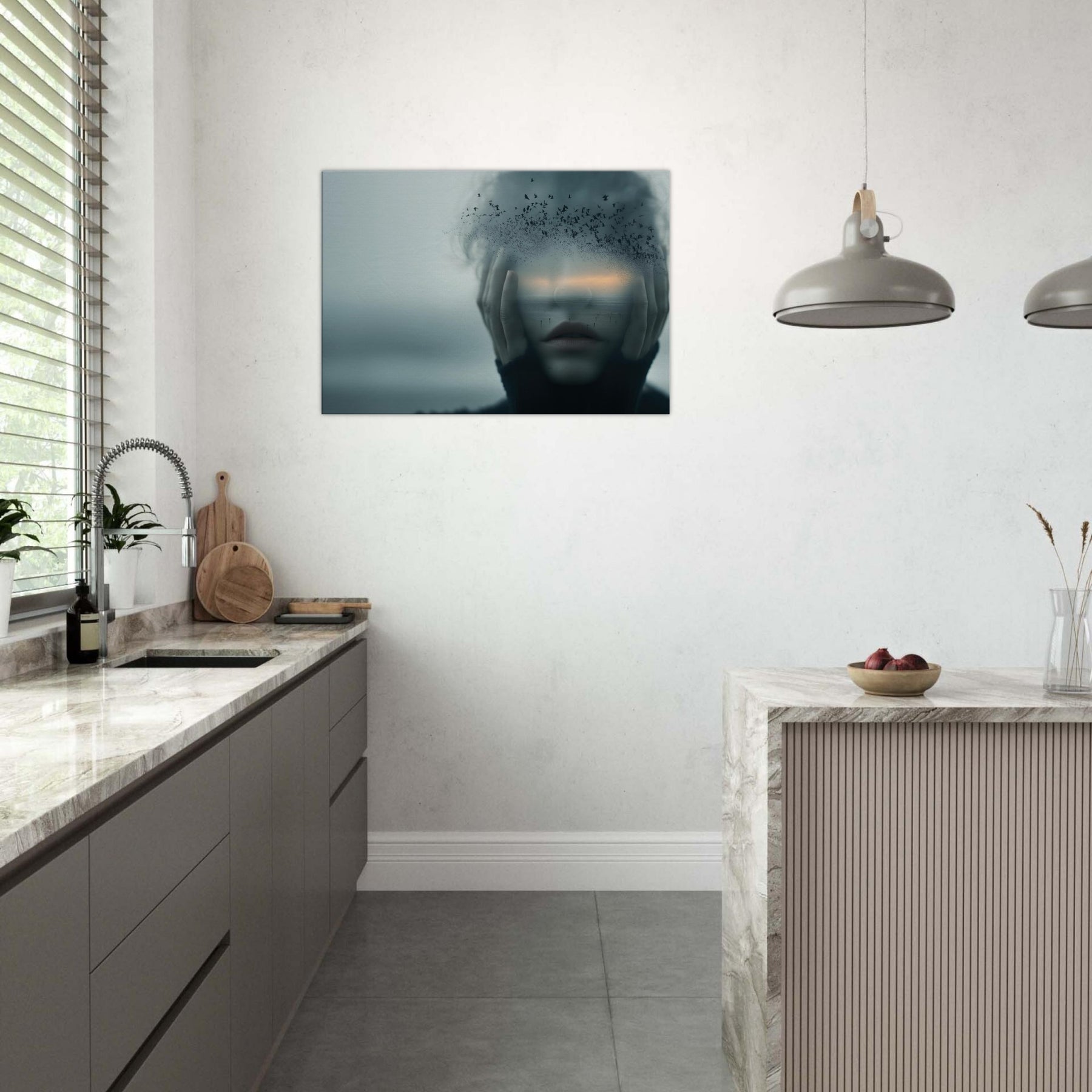 This piece anchors in Hands Line Art, where the human form dissolves into delicate contours and a flock of birds cascades across the mind's horizon. Surreal tones of sea and vaporize the boundary between body and dream, inviting a quiet, intimate contemplation. The soft gradient blues and a hint of sunset glow create a serene atmosphere that enlarges any living space, turning a wall into a portal for memory, imagination, and subtle conversation.
