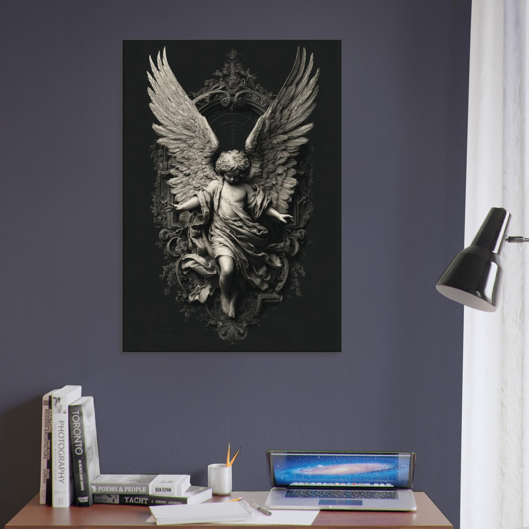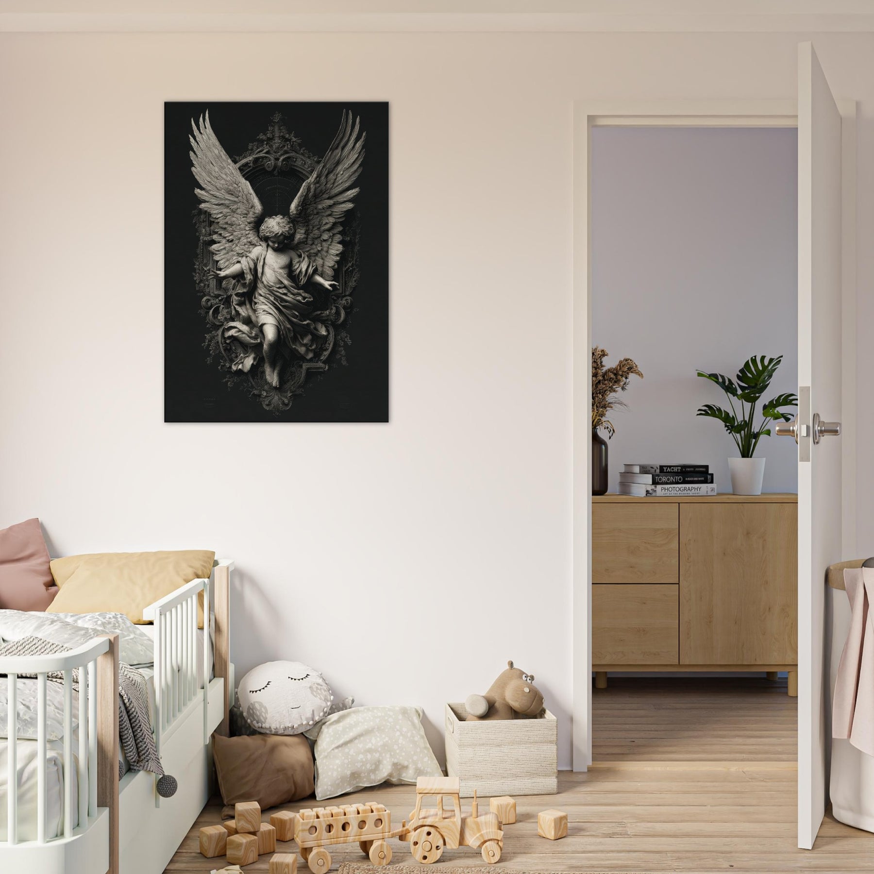Primary Subject: Cherub (Wings Only) unfolds in a hush of chiaroscuro, where subtle halos of light sketch the air around the wings. This black and white study feels timeless, as if carved from memory, inviting the viewer to step closer and breathe with the image. The mood is serene yet charged, a mystical presence that elevates a living space, pairing contemporary furnishings with classical grace. A guardian of quiet moments, suspended between shadow and grace, it rewards a thoughtful, luminous wall.
