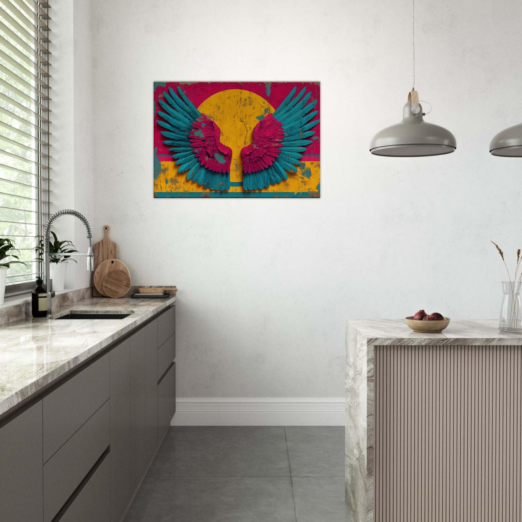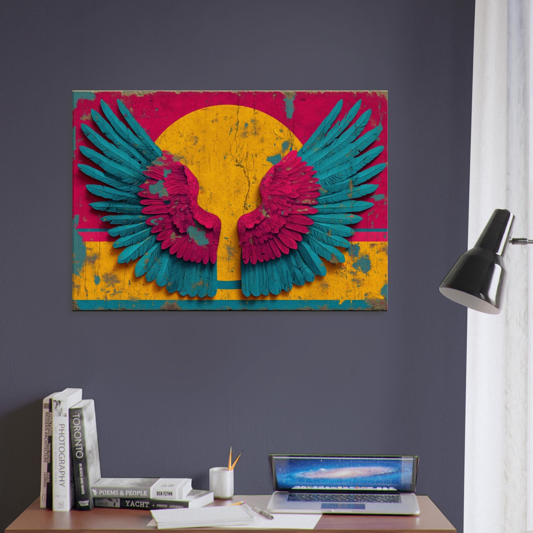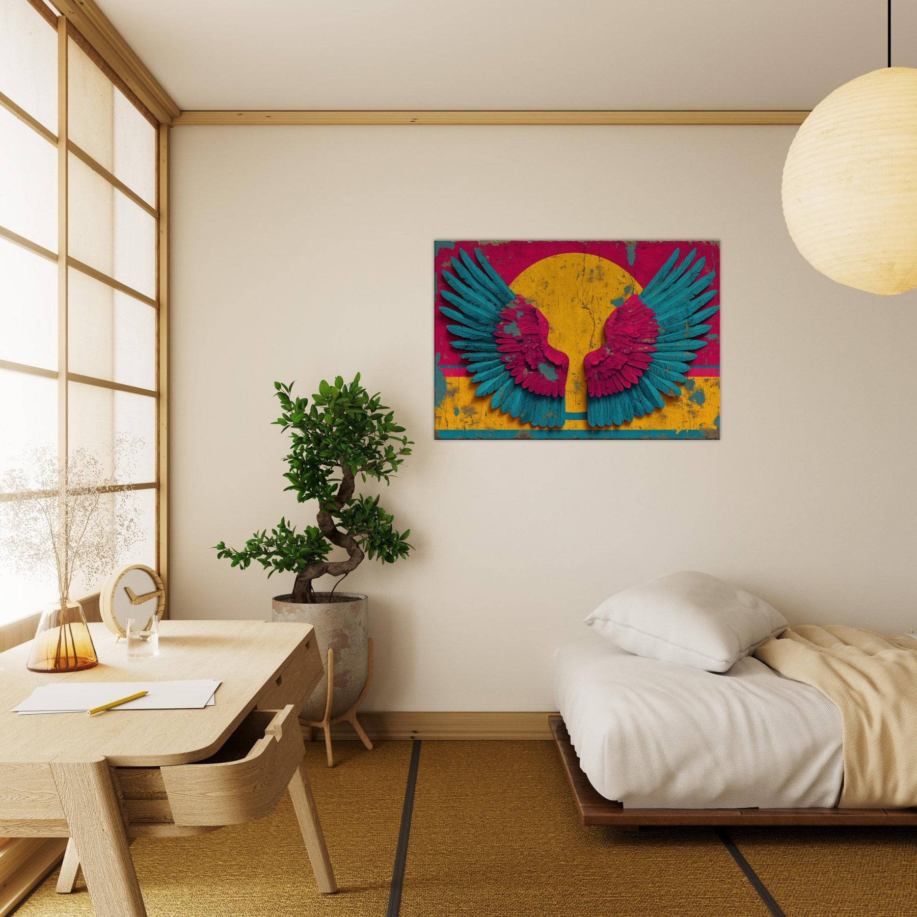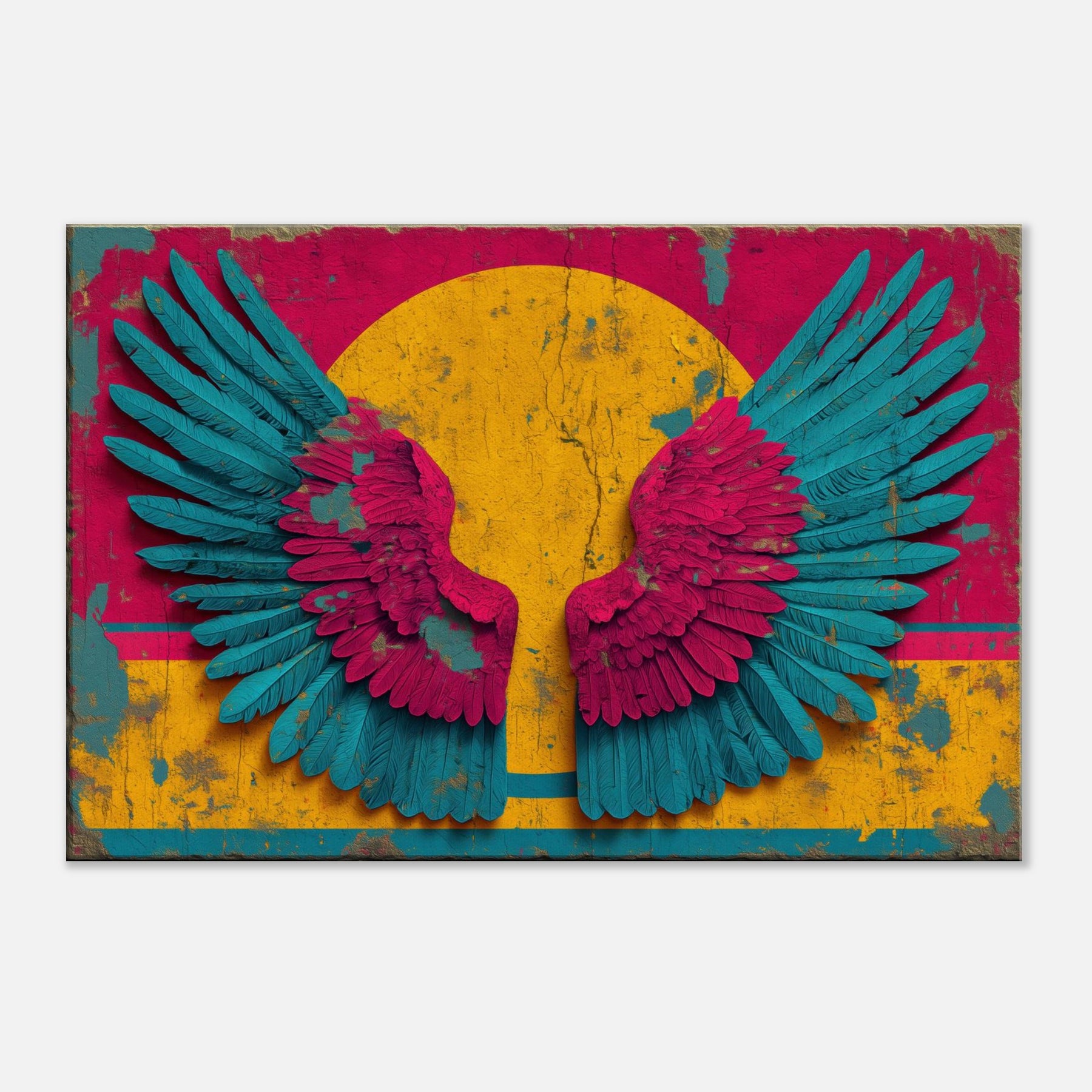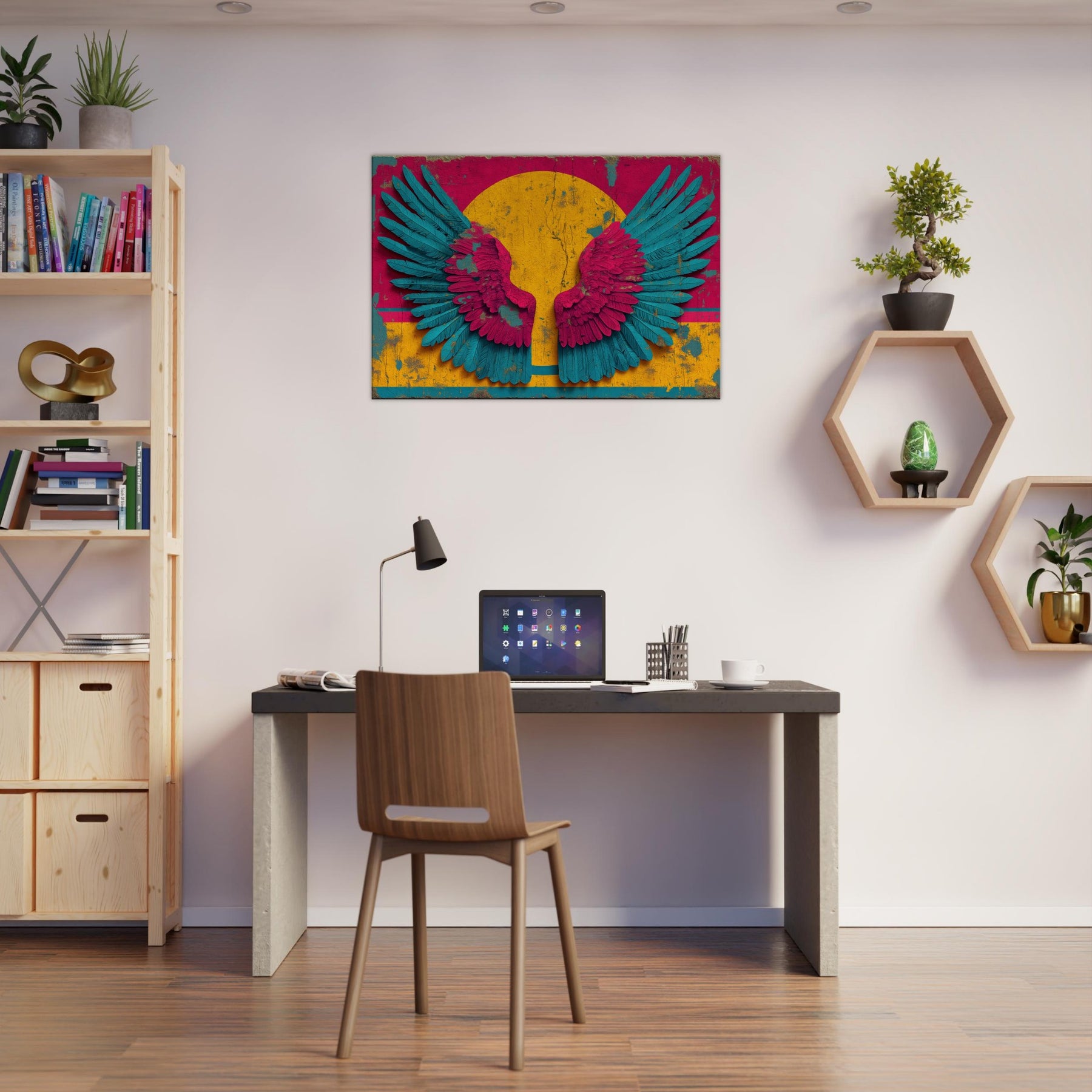 A celestial echo rises from this striking wall sculpture: the Cherub (Wings Only) rendered as a bold, sculptural motif. Vibrant magenta and teal wings unfold across a sun washed, weathered backdrop, inviting light to ripple through a room with mystic energy. The piece breathes a dreamy atmosphere, perfect for a living area or bedroom, creating a sense of airy drama, quiet wonder, and whimsical privacy. Its tactile texture and luminous color pairing keep the space feeling modern, intimate, and infinitely inviteable.