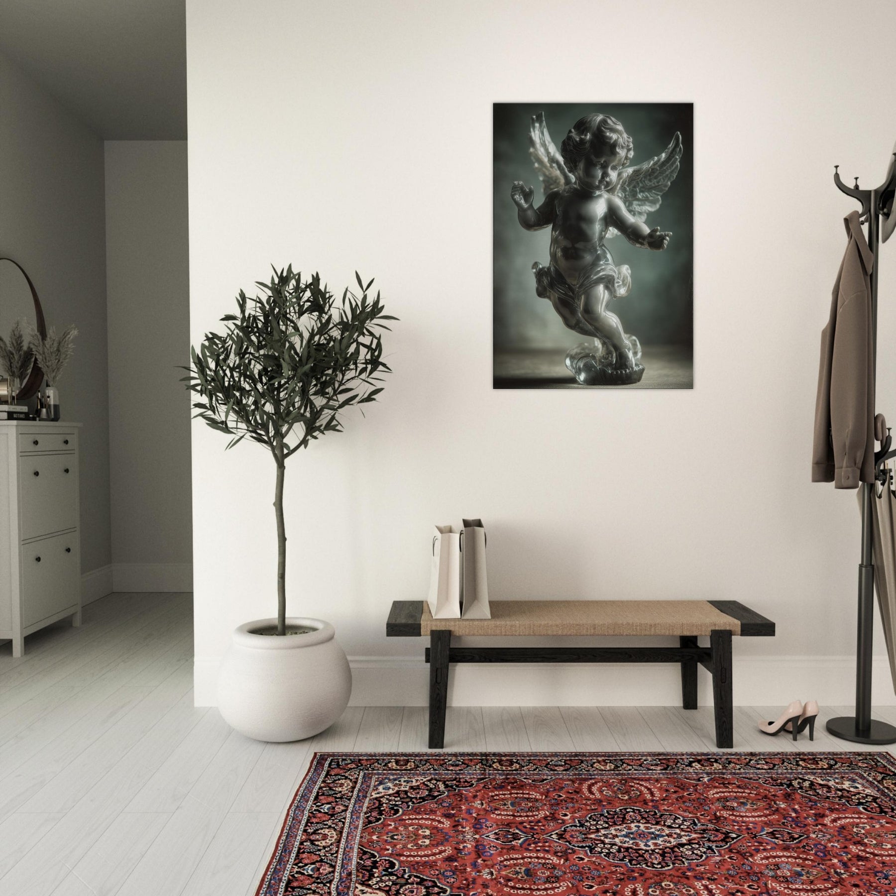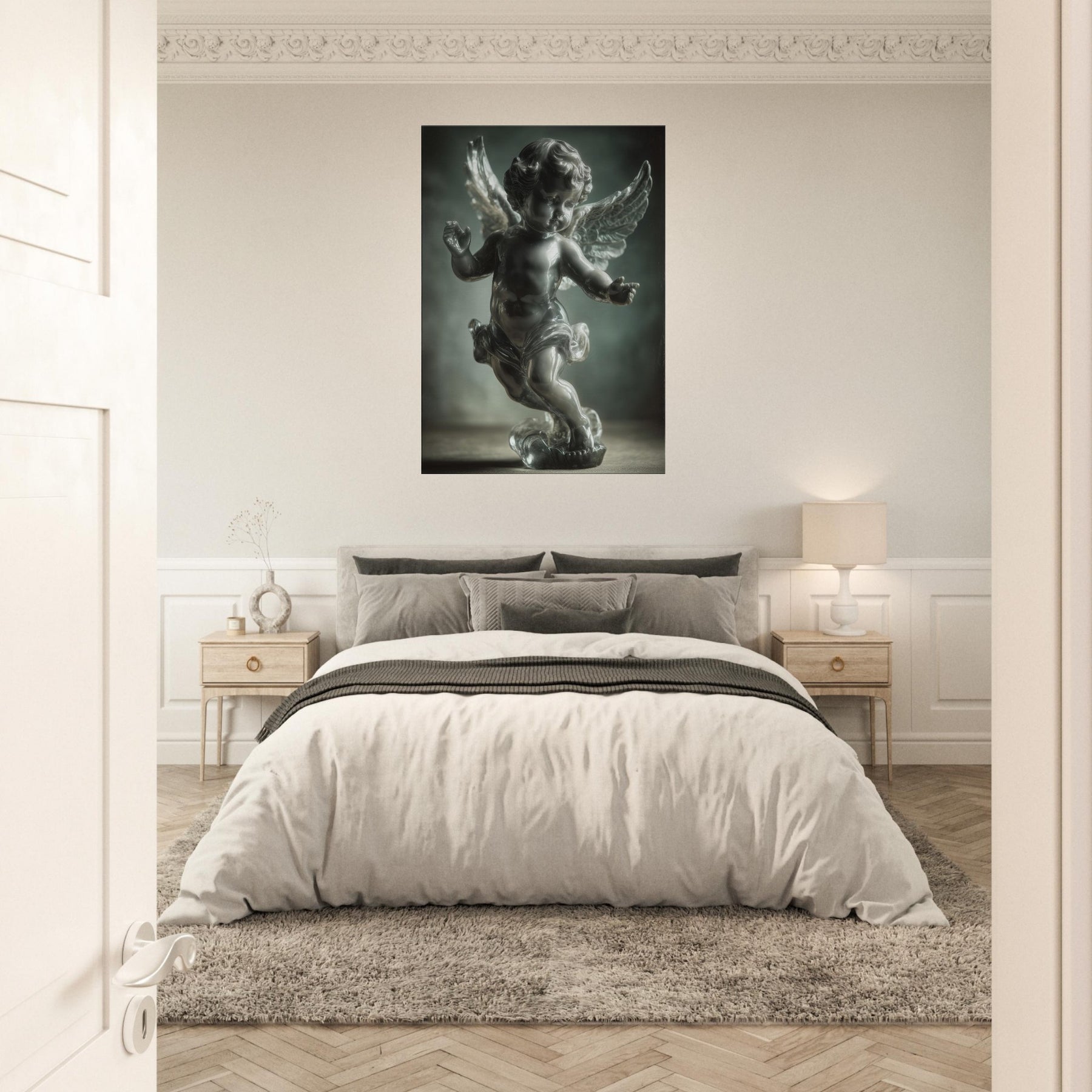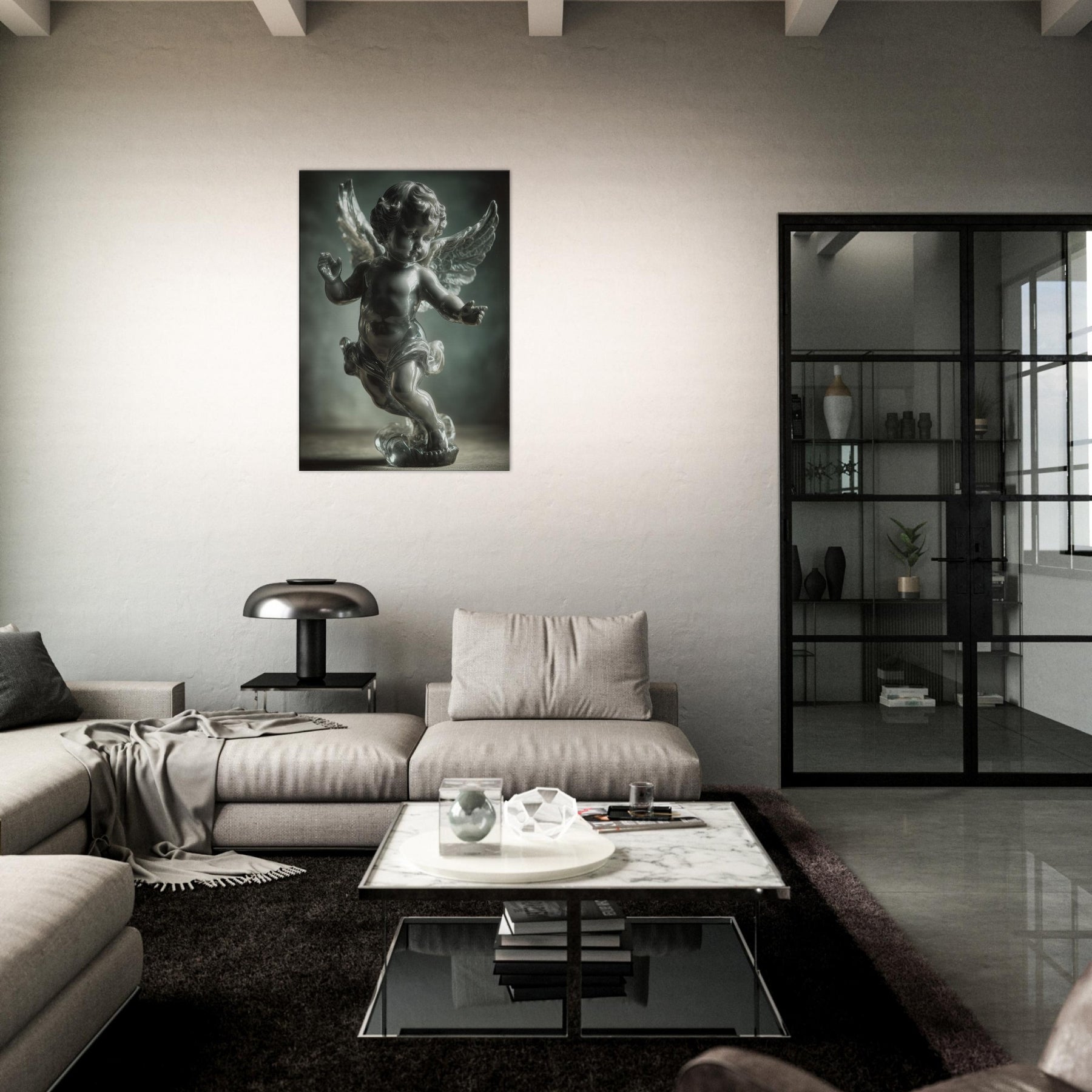 This Cherub is captured mid flight, its wings unfurling like delicate glass. Light threads through the curves, turning the sculpture into a soft, hovering glow that bathes the room in quiet, otherworldly mood. The surreal, mystical presence invites contemplation and calm, transforming walls into a portal of imagination. Hang it where daylight melts into evening and let the ethereal shimmer elevate a living room or bedroom, pairing with neutral textiles and tactile surfaces to heighten atmosphere and grace. The central subject is Cherub (Wings Only).