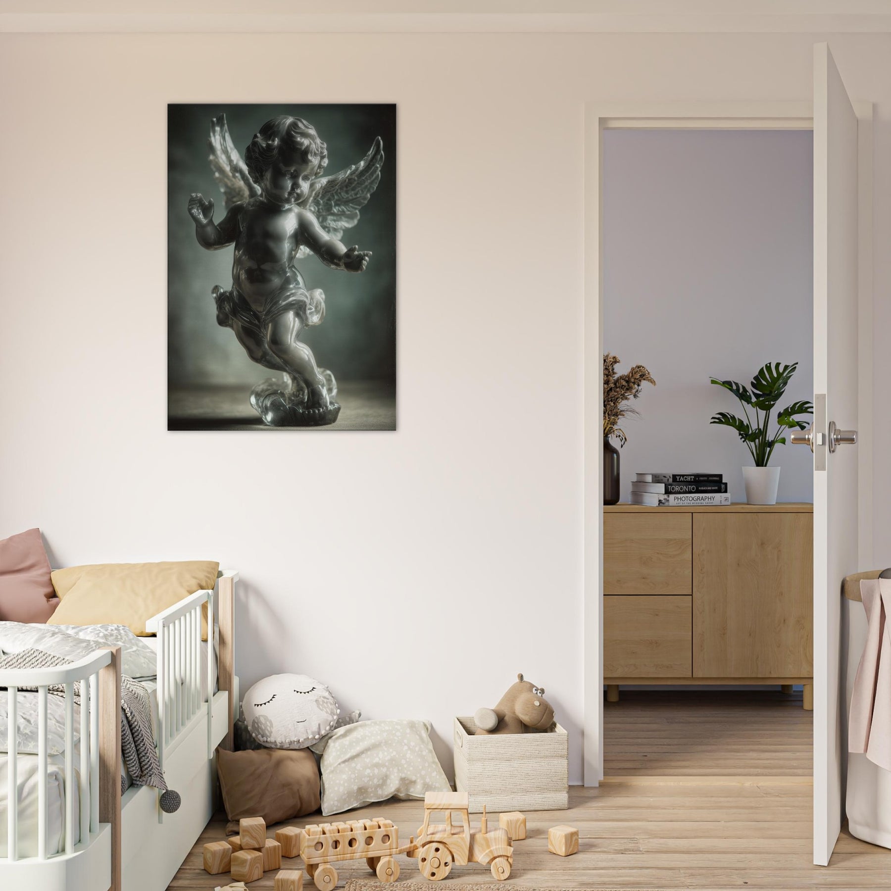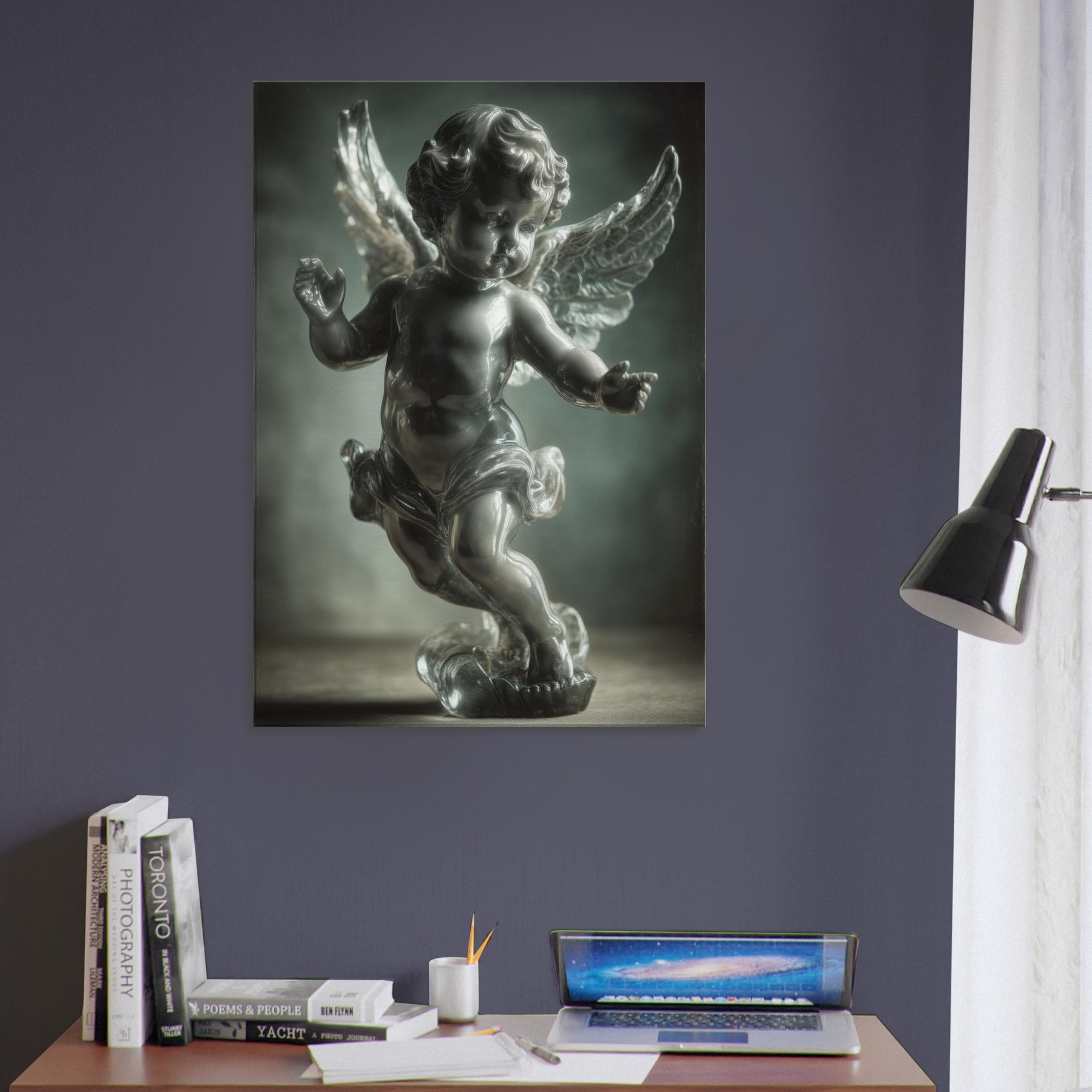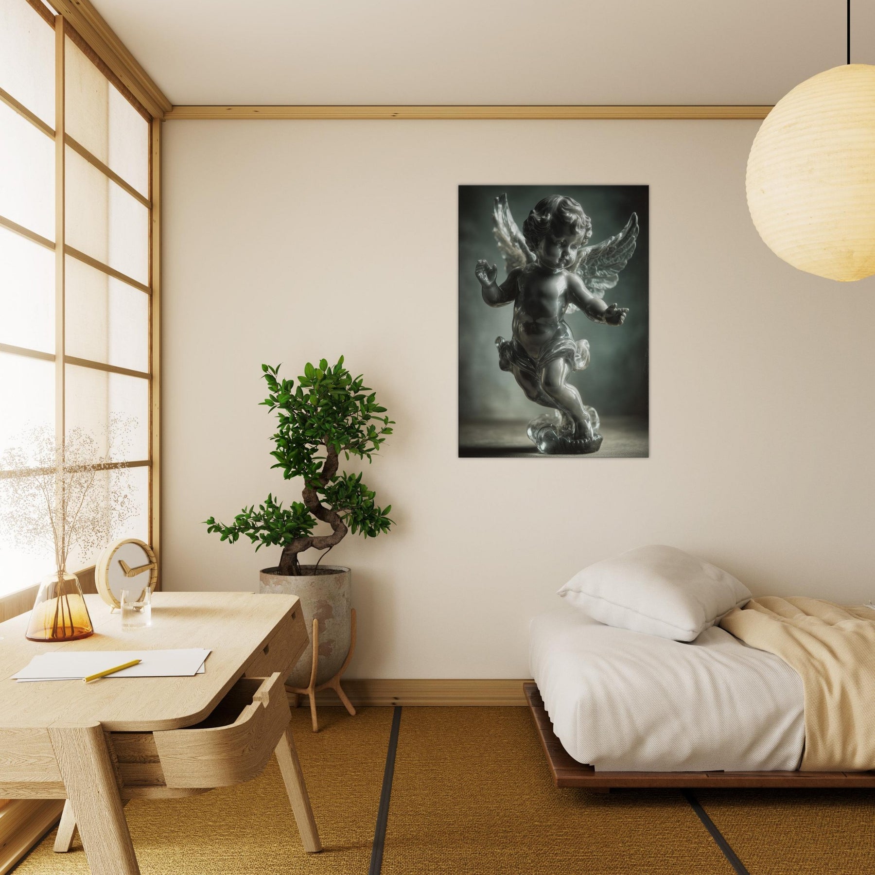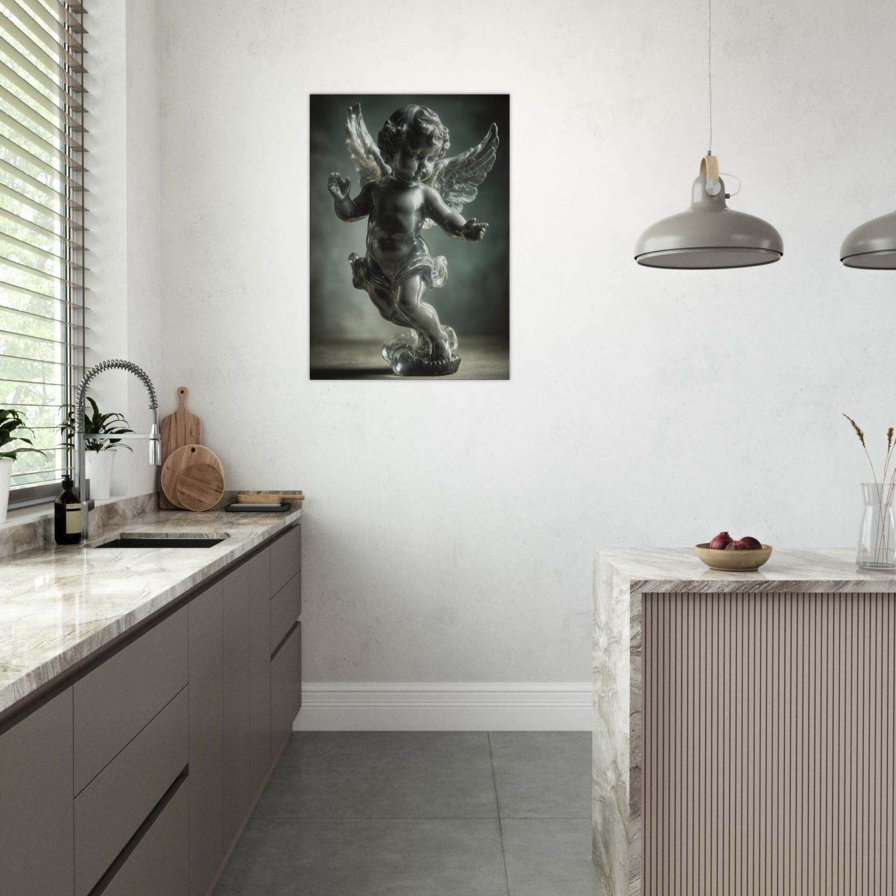 This Cherub is captured mid flight, its wings unfurling like delicate glass. Light threads through the curves, turning the sculpture into a soft, hovering glow that bathes the room in quiet, otherworldly mood. The surreal, mystical presence invites contemplation and calm, transforming walls into a portal of imagination. Hang it where daylight melts into evening and let the ethereal shimmer elevate a living room or bedroom, pairing with neutral textiles and tactile surfaces to heighten atmosphere and grace. The central subject is Cherub (Wings Only).