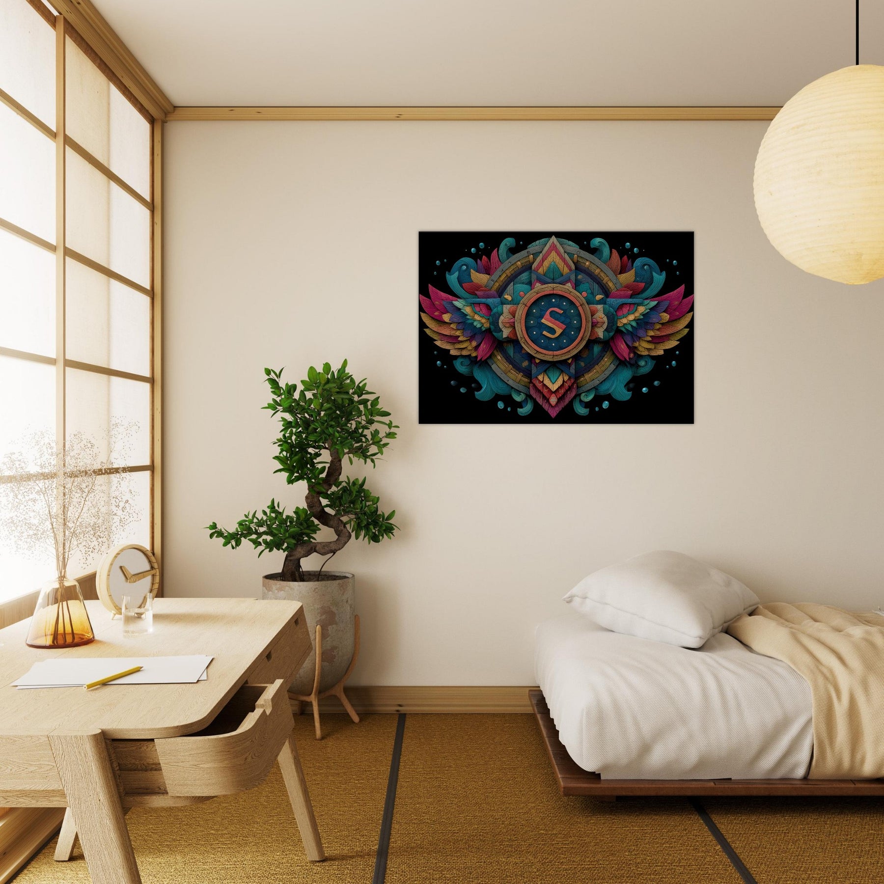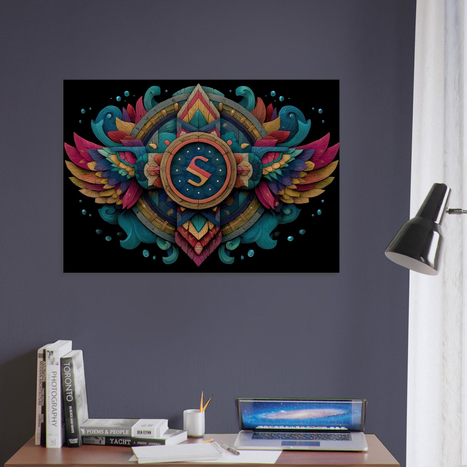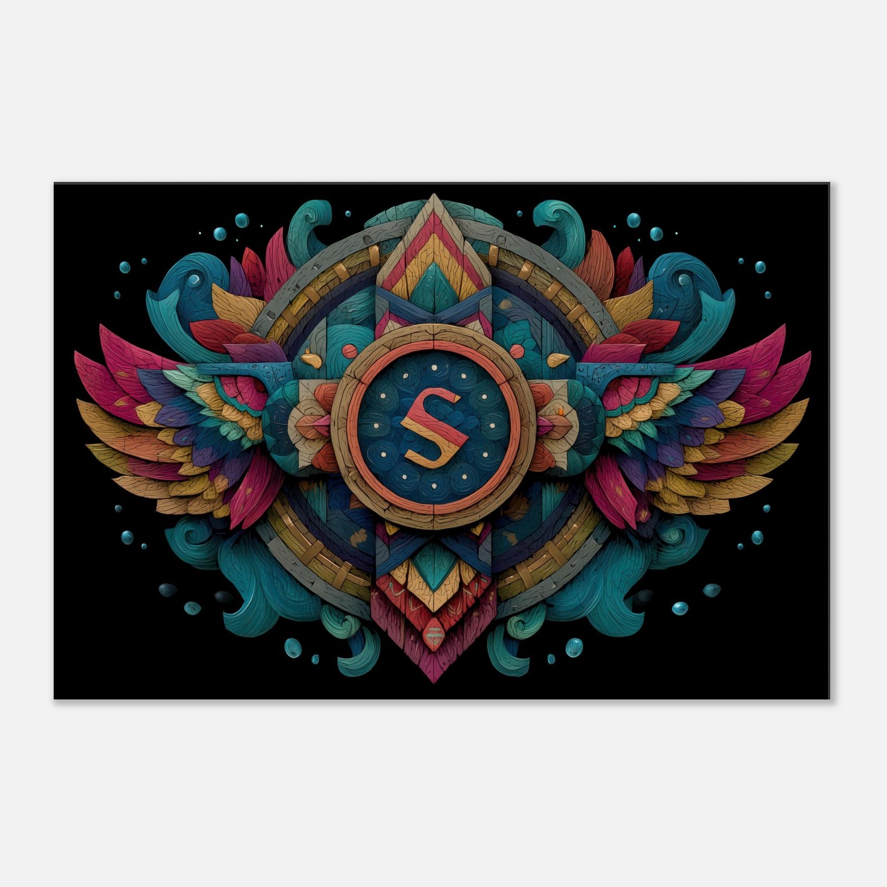 Astrological Signs take flight in a dreamscape of color and carved light. This abstract composition folds the cosmos into a radiant compass, where layered glyphs and winged arcs pulse with energy and calm. The deep teals, coral pinks, and ember gold invite the eye to wander, while the tactile texture of the piece adds warmth to a wall like a quiet midnight breeze behind a favourite sofa. Hang it in a living room or bedroom to conjure mystery, intention, and a generous sense of wonder.