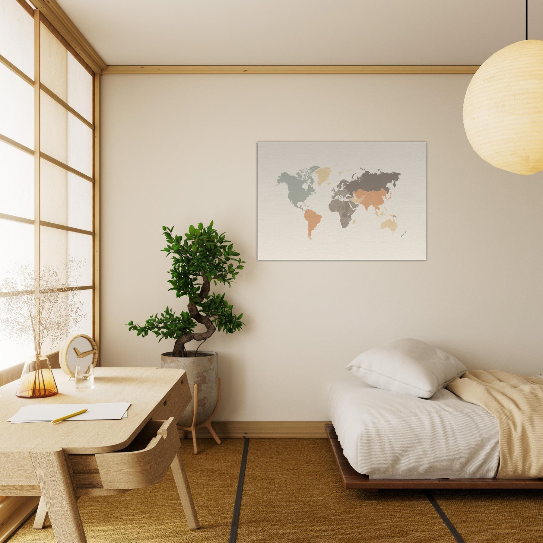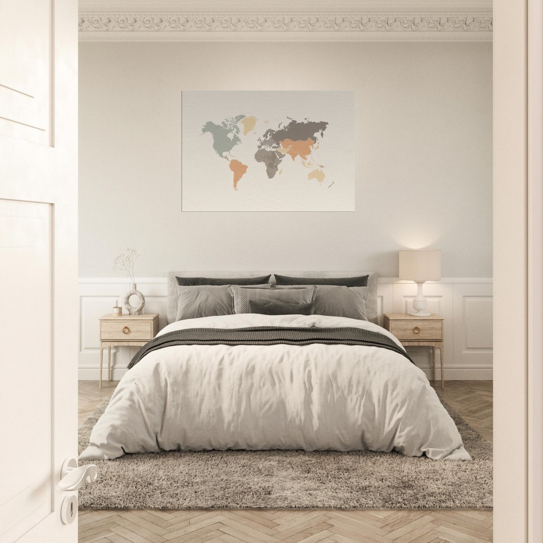 Let the World Map Outline breathe softly on your wall, a quiet invitation to wandering without leaving your seat. The composition favors negative space and gentle, earthy tones, creating a calm horizon that hovers between a map and a memory. In a living room or study, this piece hums with sophistication, catching the light as dusk settles and the room exhales. It elevates dialogue, anchors a gallery wall, and reminds us that every journey begins at home.