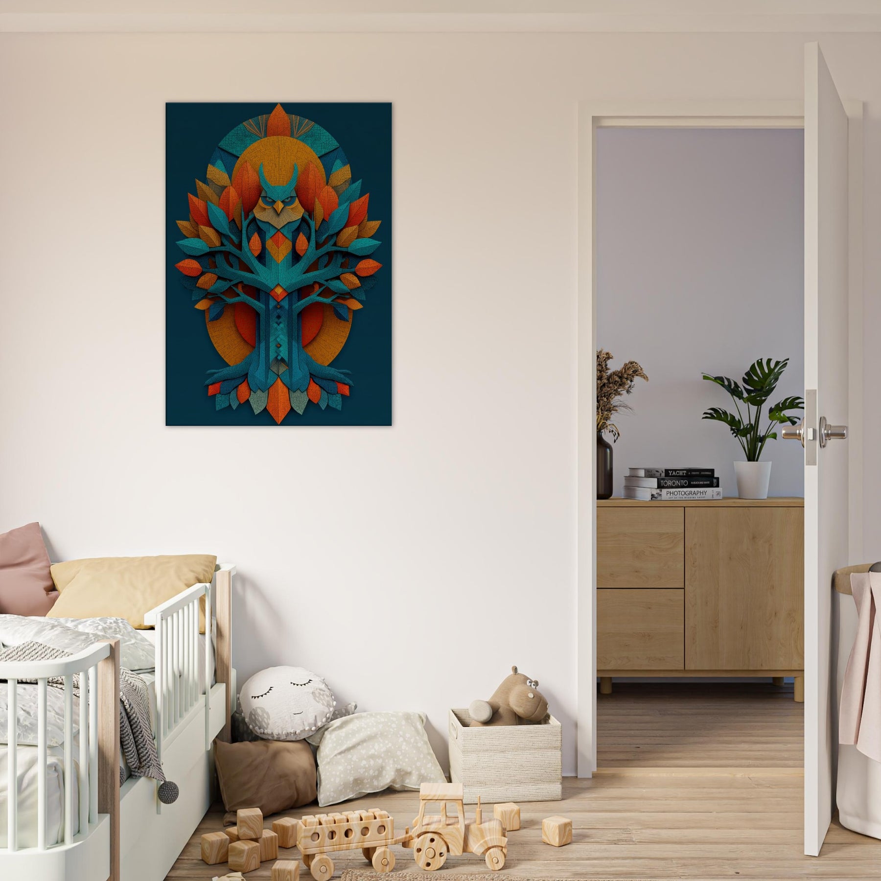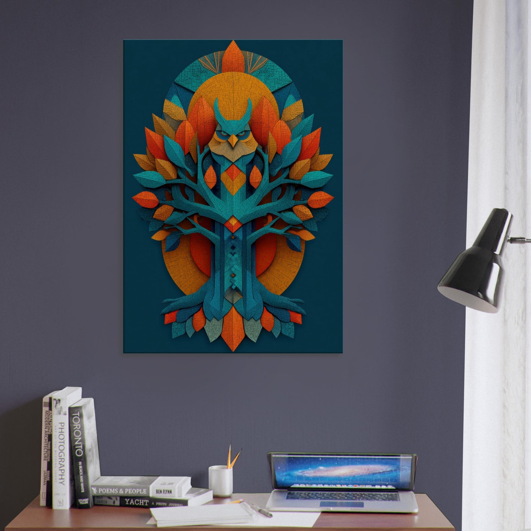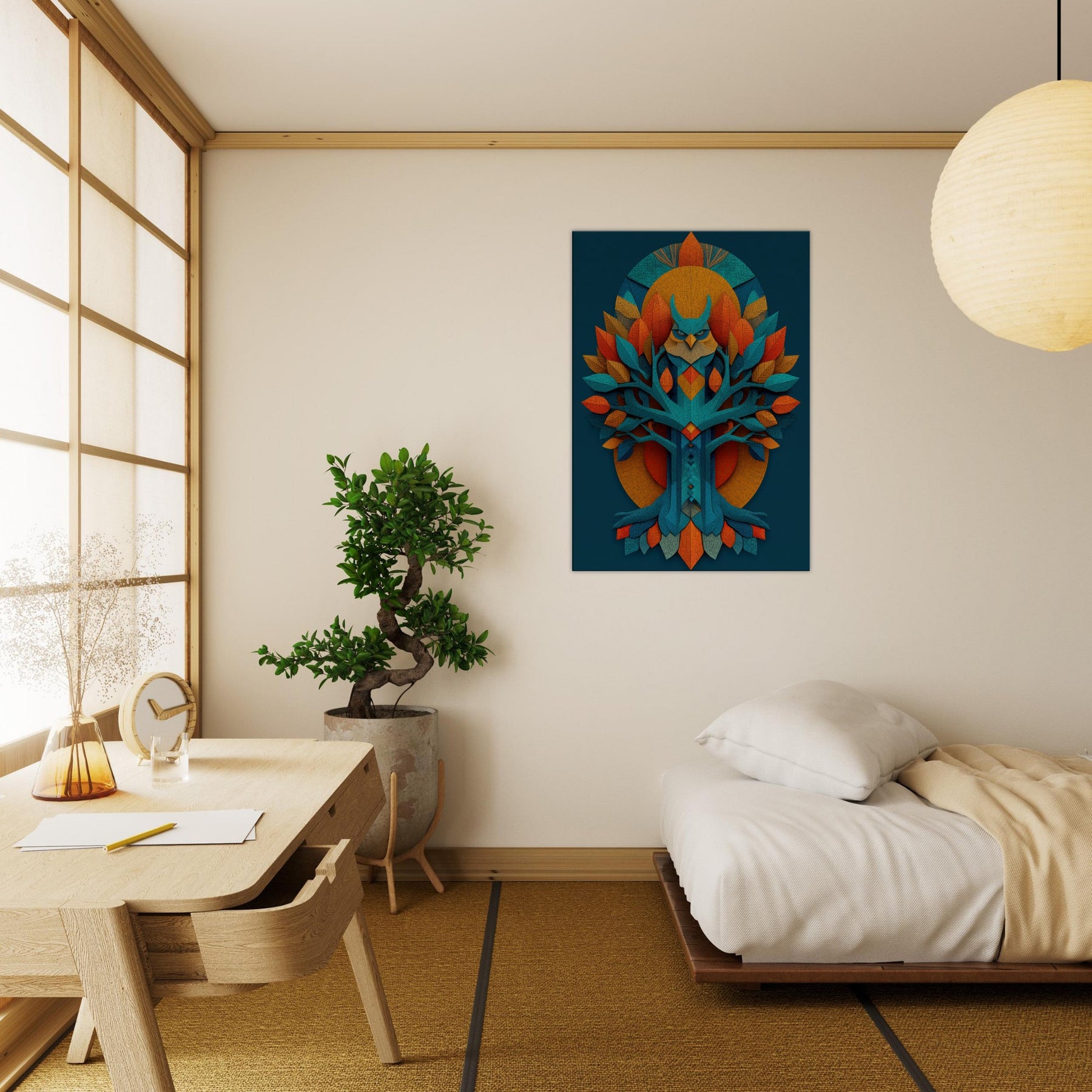 Yggdrasil unfurls as an abstract miracle of color and light, where teal branches coil like wind swept rivers and orange leaves glow with inner fire. The piece breathes quiet energy into a room, a sanctuary of stillness and wonder. In your living space it becomes a gentle focal whisper a reminder of connection, growth, and ancient mystery. Its textured surfaces and layered tones shimmer with lamp glow, adding depth, warmth, and a sense of movement. Let Yggdrasil the World Tree weave mysticism into everyday life and elevate your space. The central subject is Yggdrasil (World Tree).