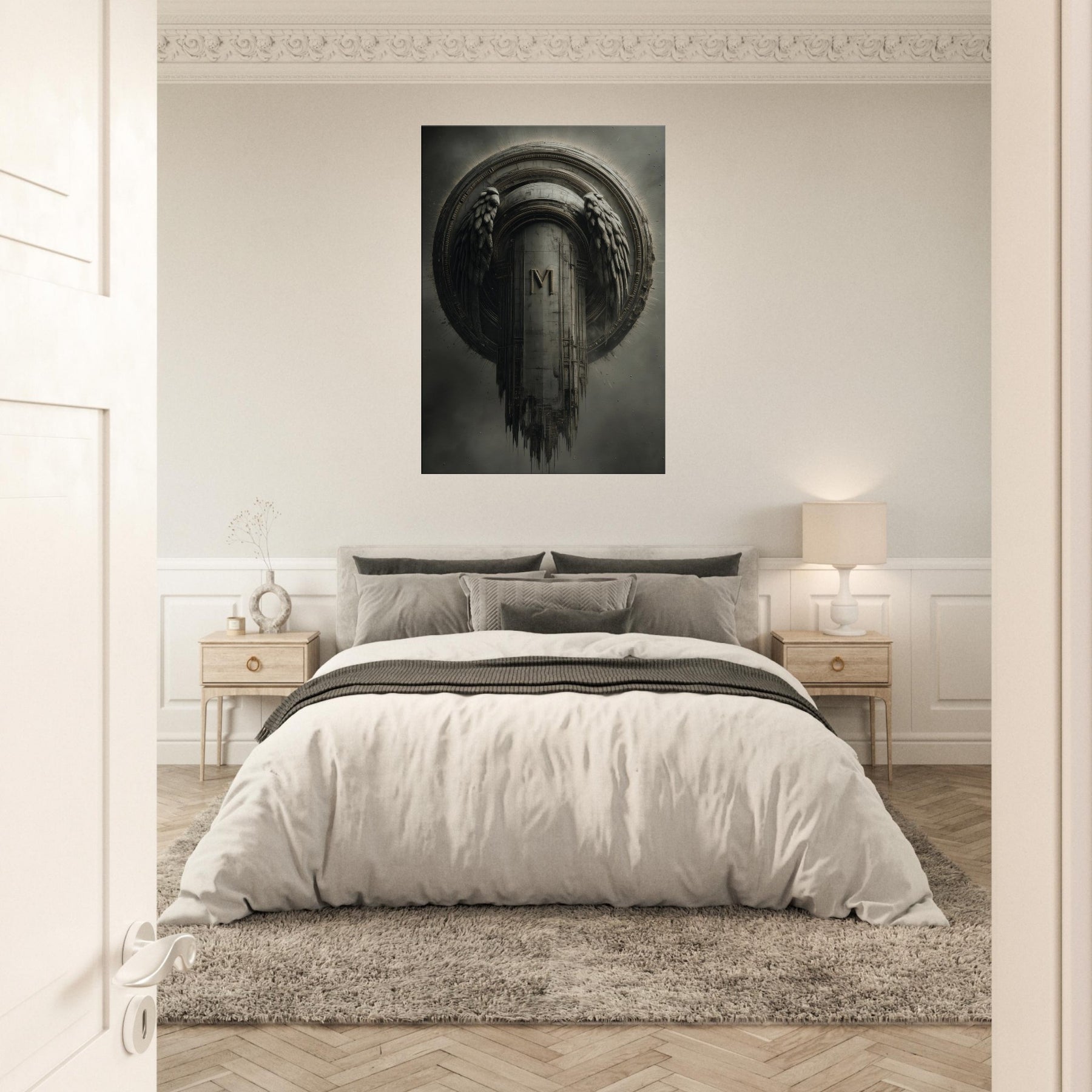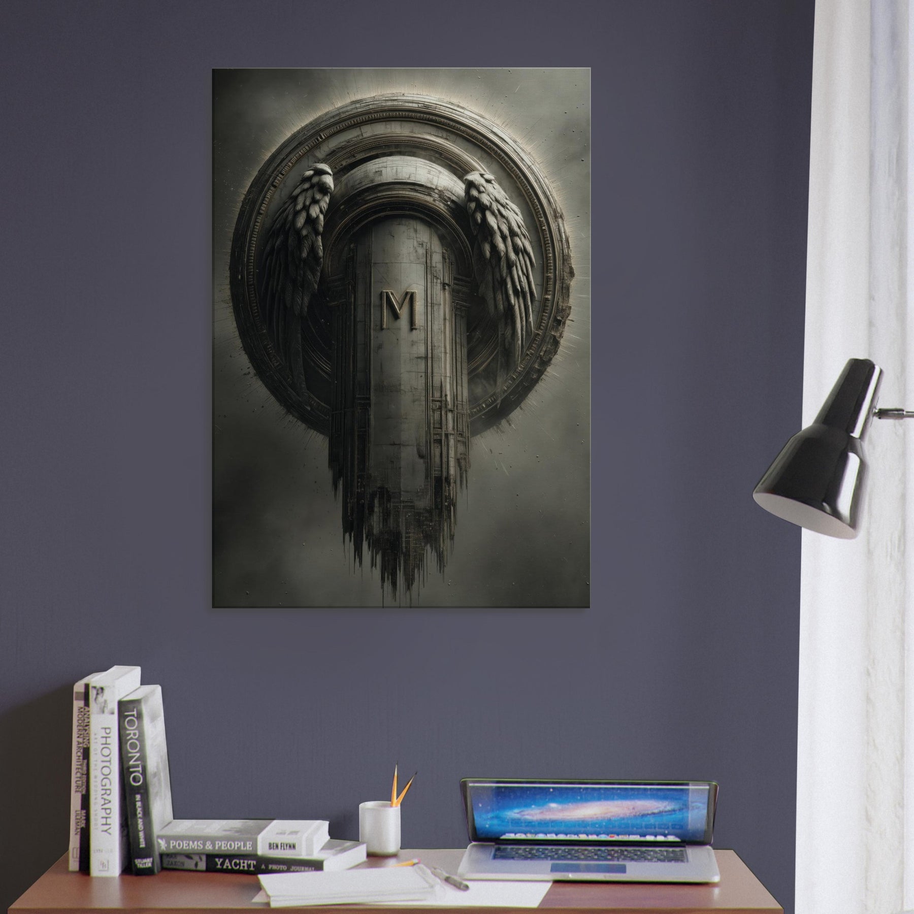This piece is a meditation on the celestial clockwork that governs our days. Wrought in moody grayscale, a monumental column folds into a velvet circle of rings, with winged silhouettes cradling the center like guardians of fate. The mood conjures dusk, ink, and whispered constellations, inviting reflection in a living room or study. Crafted to resonate with the idea of Astrological Signs, it hums with mystery and movement, turning any wall into a portal for dreamlike evenings.
